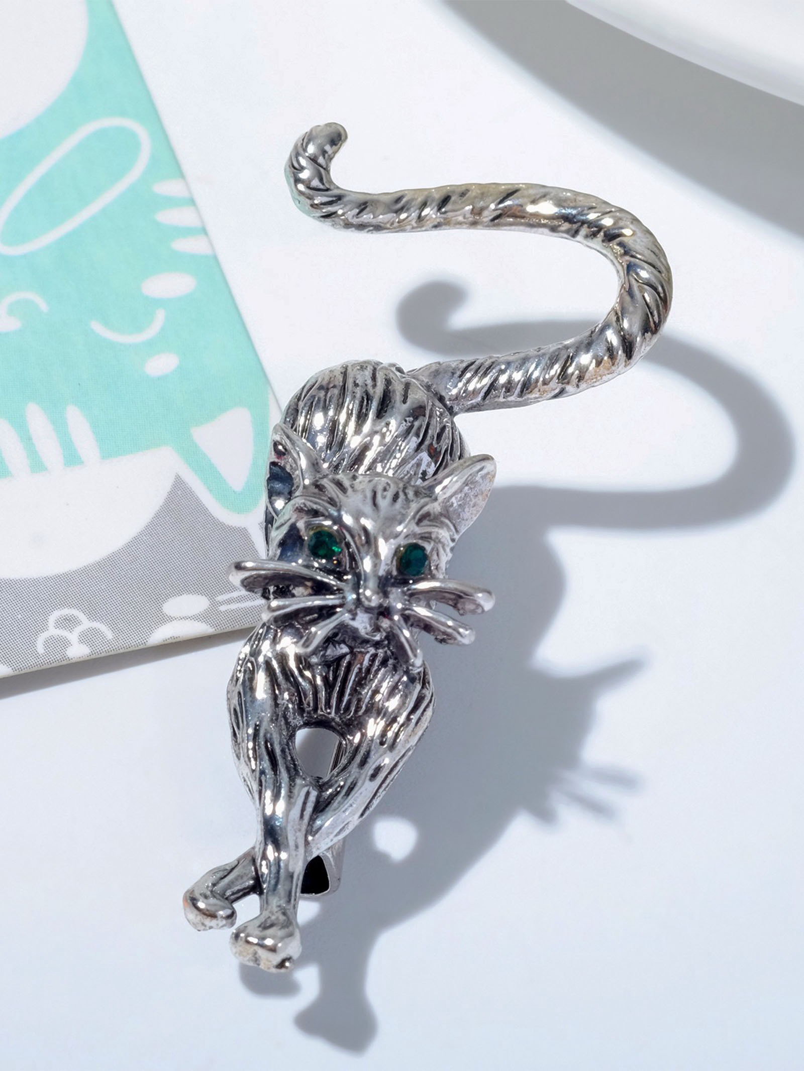 Брошь "Кошка грациозная", цвет зелёный в чернёном серебре, 2x5x1.5 см., QF, Китай