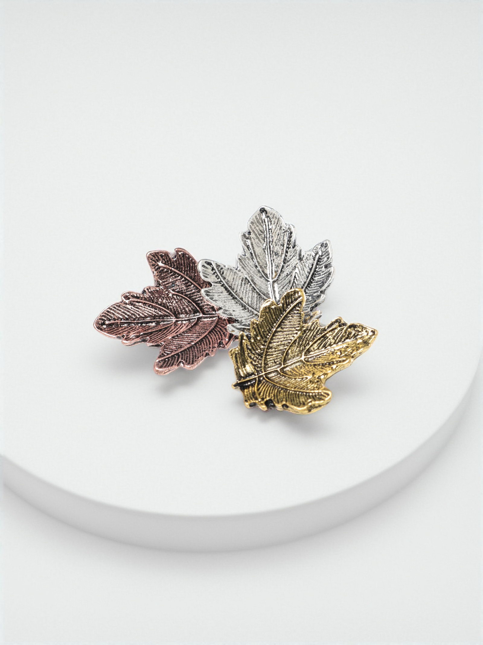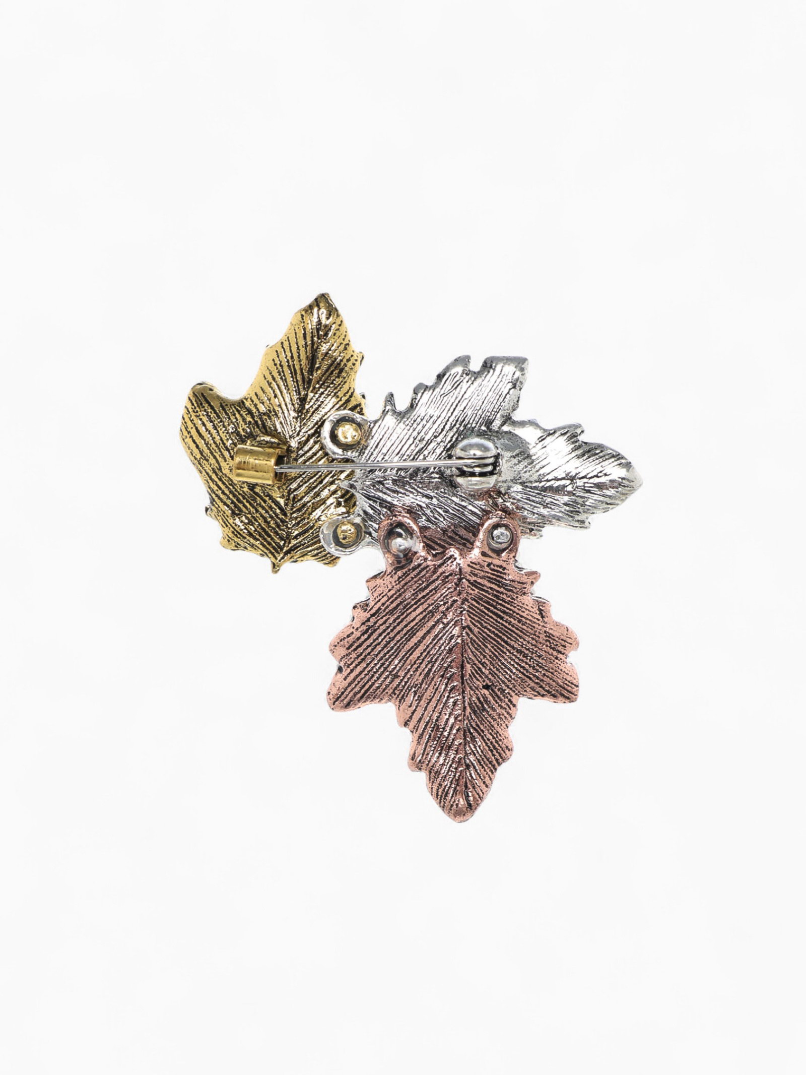 Брошь "Листья" три дубовых, цветная, 3.5x5x1.5 см., QF, Китай