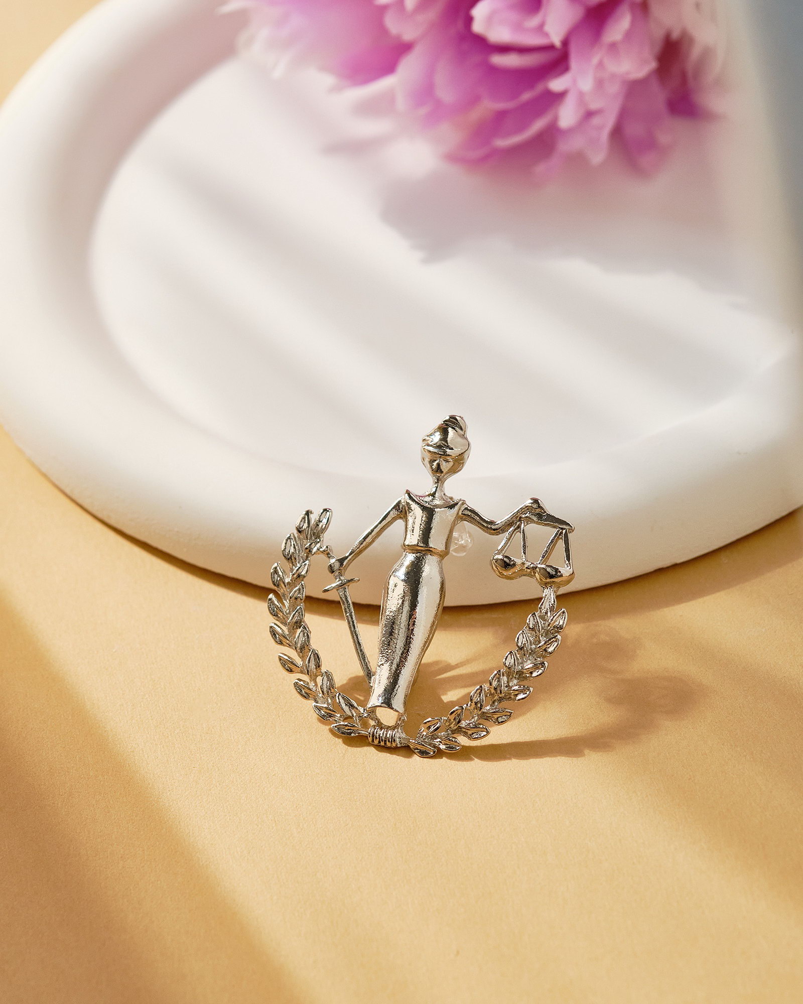 Брошь "Фемида" богиня правосудия, цвет серебро, 4.6x4.5x1 см., QF, Китай