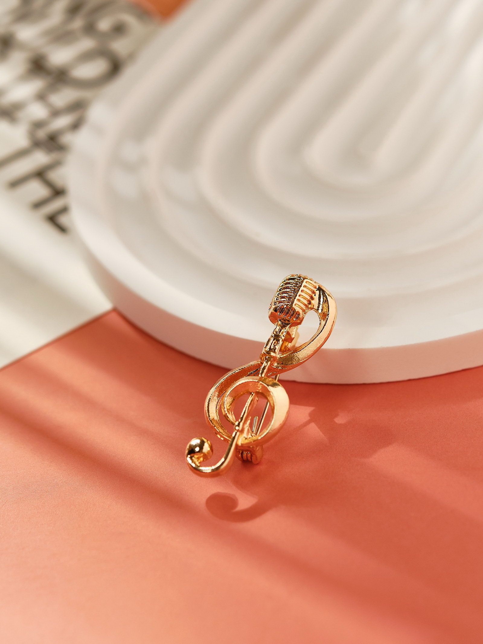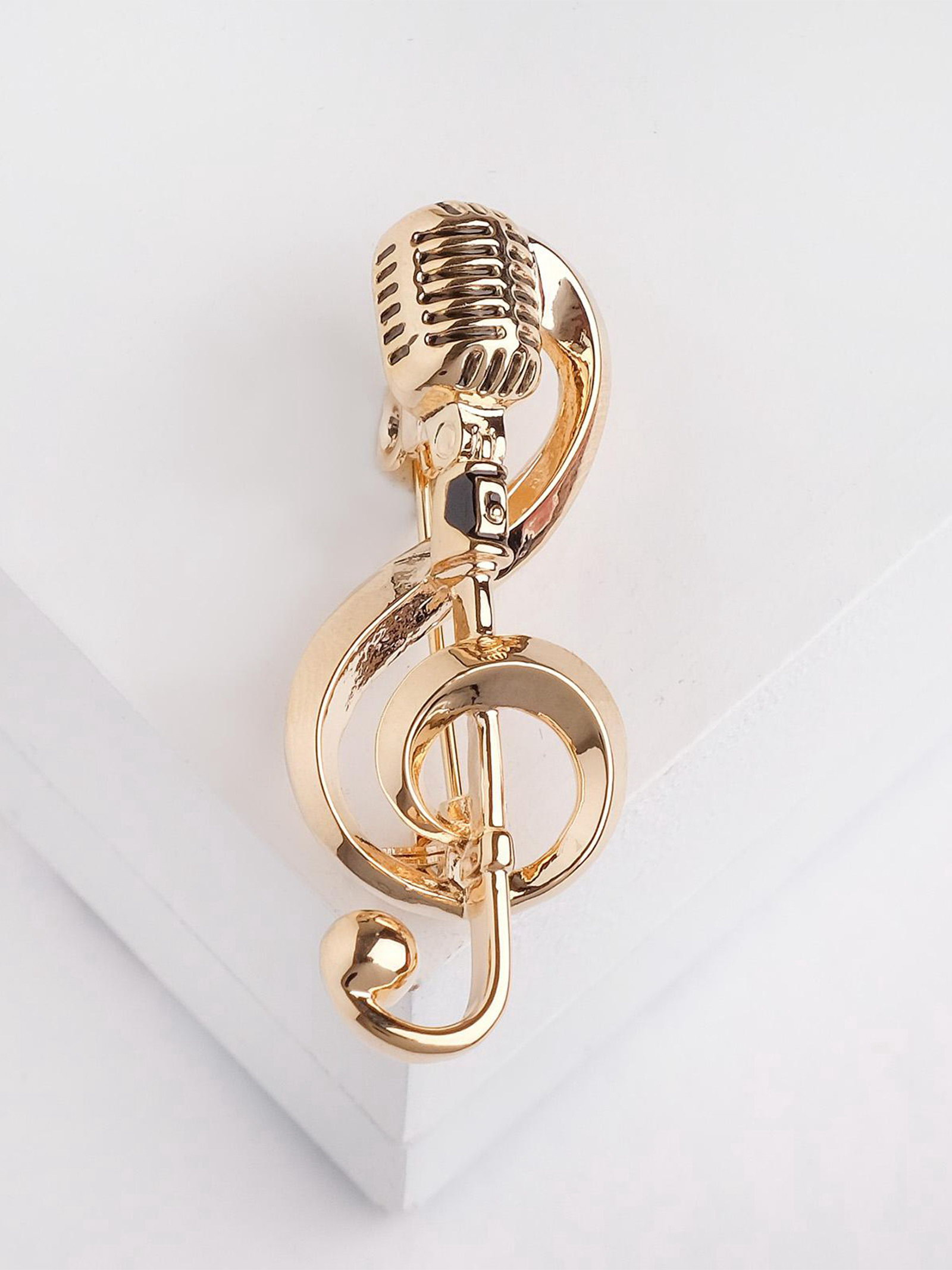 Брошь "Ретро микрофон" с нотой, цвет золото, 1.6x4.1x1 см., QF, Китай