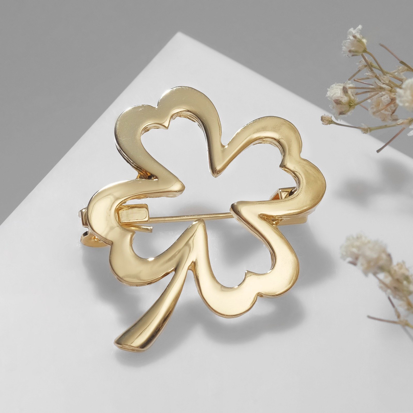 Брошь "Клевер" контур, цвет золото, 2.5x3x0.8 см., QF, Китай