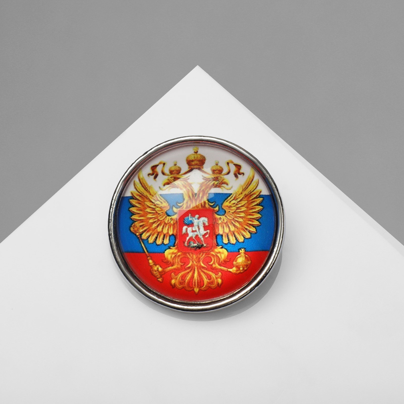 Брошь "Российская Федерация", цветная в серебре, 3x3x1 см., Queen fair, Китай