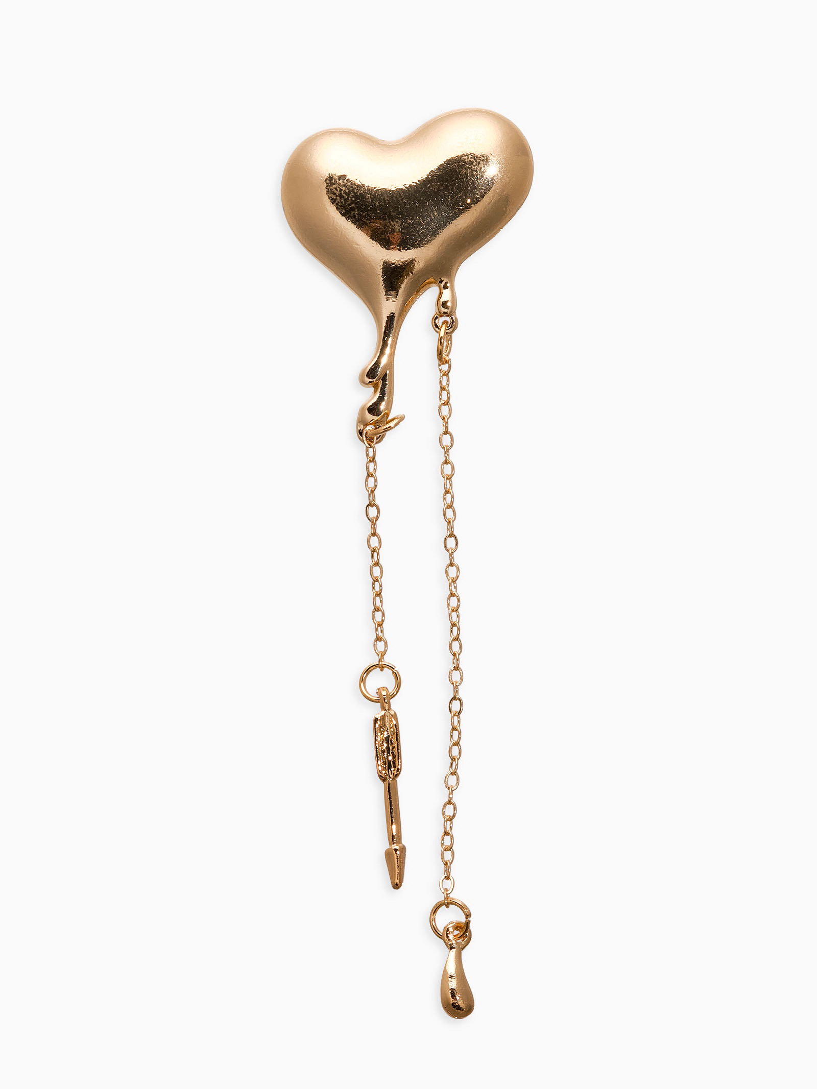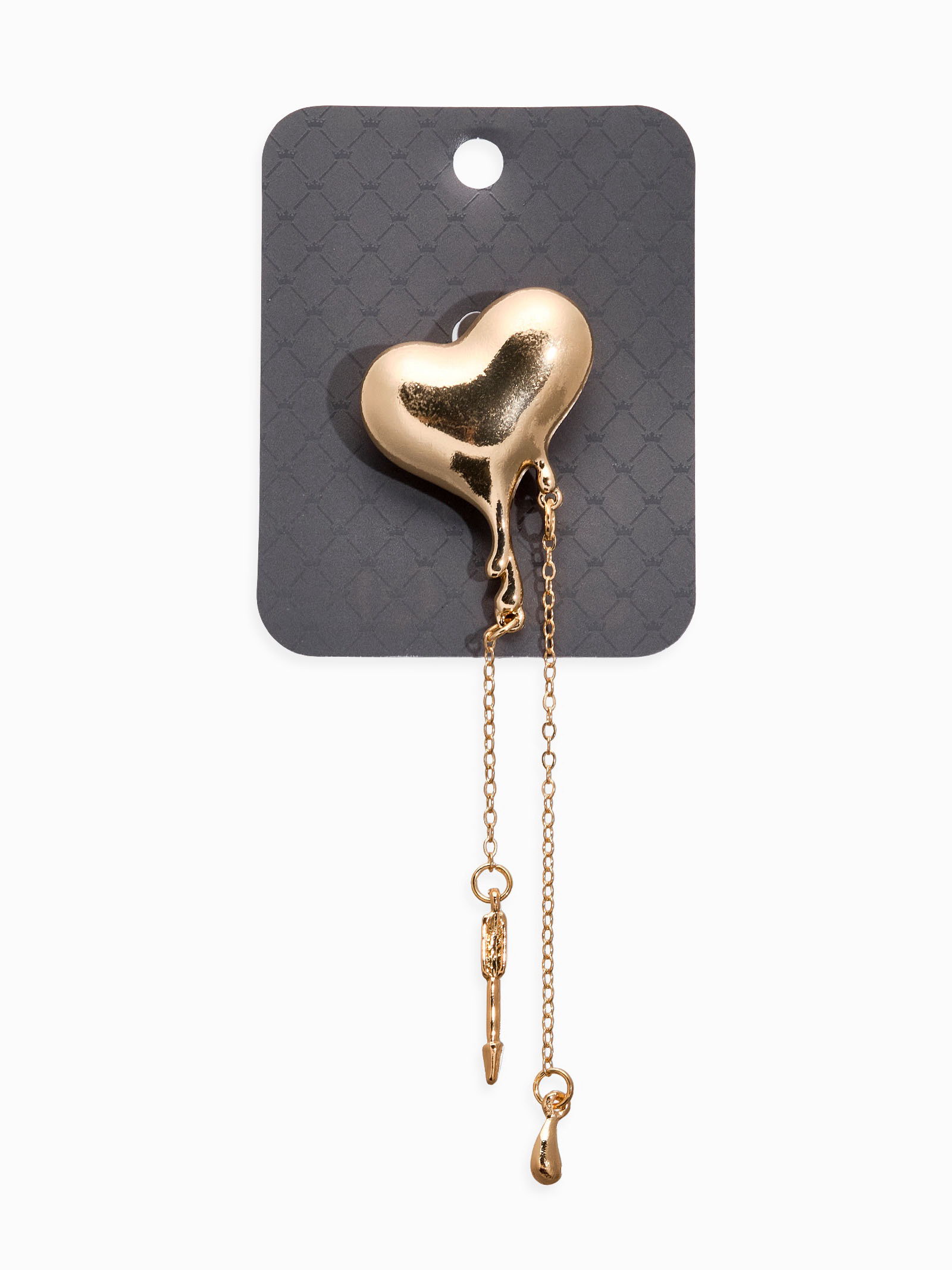 Брошь корейский стиль "Сердце" цвет золото, 3.5x11.5x2 см., QF, Китай