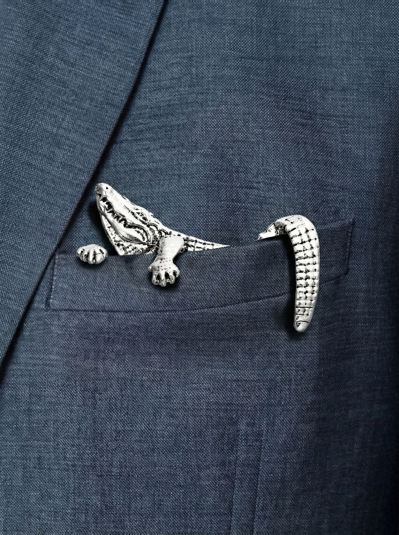 Брошь для кармана "Крокодил", цвет чернёное серебро, 2.5x5.3x0.5 см., QF, Китай