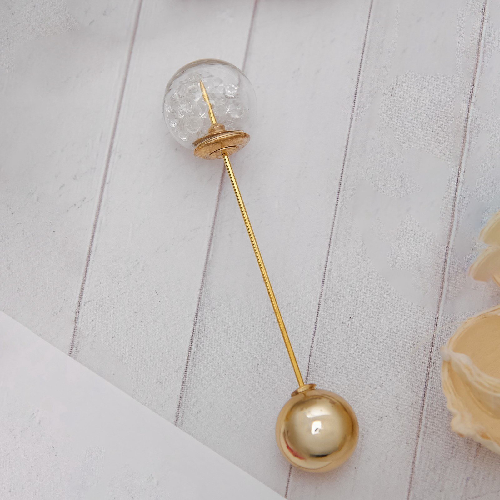 Булавка "Волшебный шар", 7.7 см, белая в золоте, 1.5x7.7x1.5 см., QF, Китай