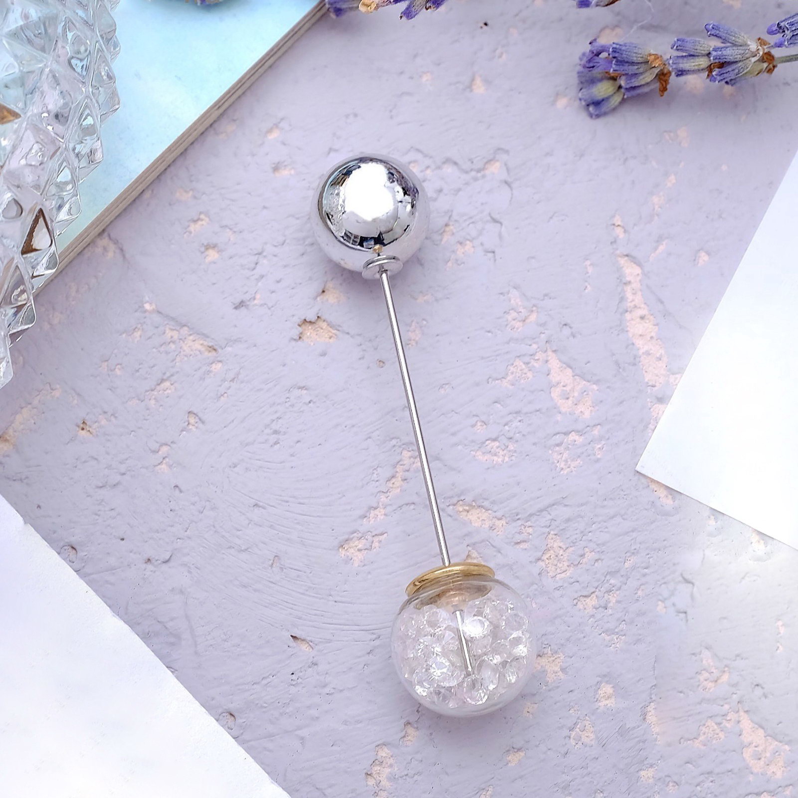 Булавка "Волшебный шар", 7.7 см, белая в серебре, 1.5x7.7x1.5 см., QF, Китай