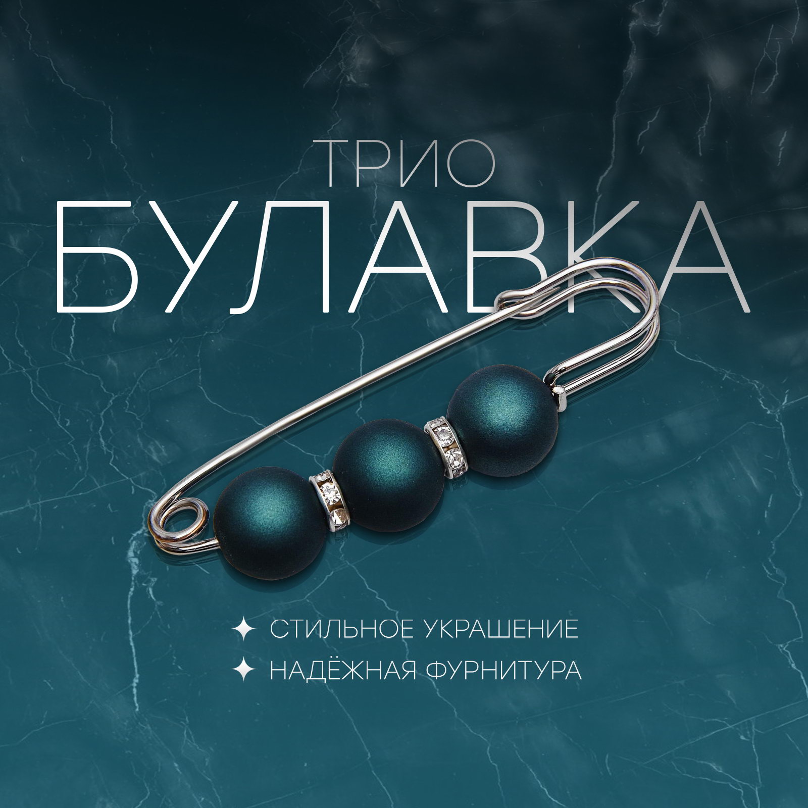 Булавка "Трио" 7 см, шар №14, матовый тёмно-зелёная в серебре, 1.4x7x1.4 см., QF, Китай