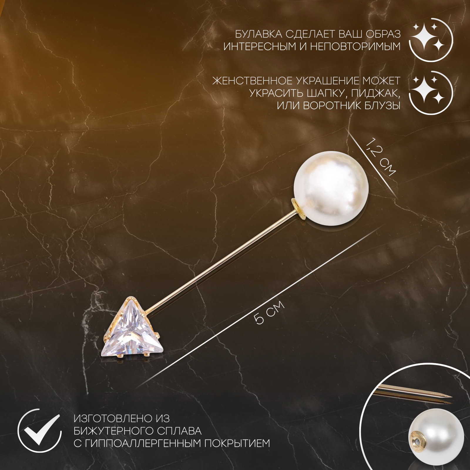 Булавка "Стрела" 5см, цвет белый в золоте, 1.2x5x1.2 см., QF, Китай