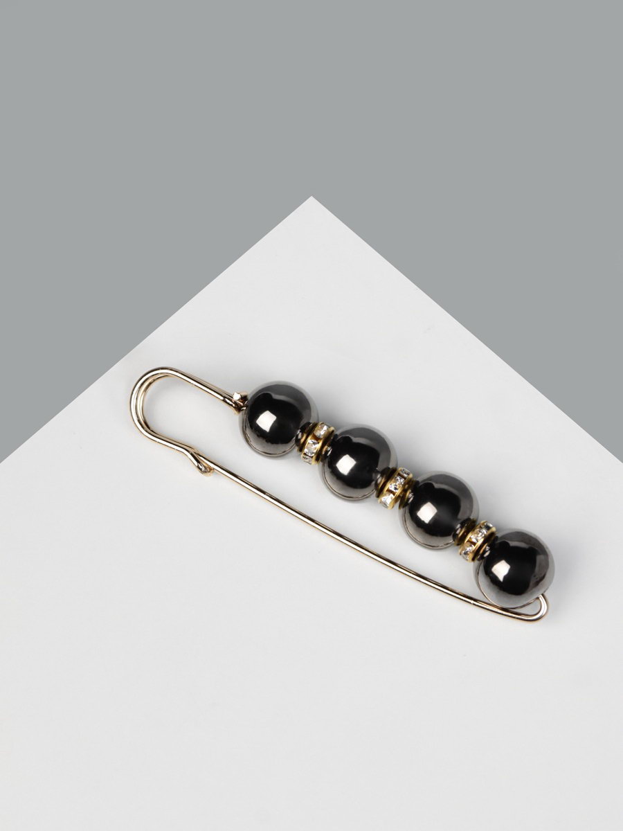 Булавка "Квартет" шар №14, 8 см, цвет глянцевый серый в золоте, 2x8.5x1.5 см., QF, Китай