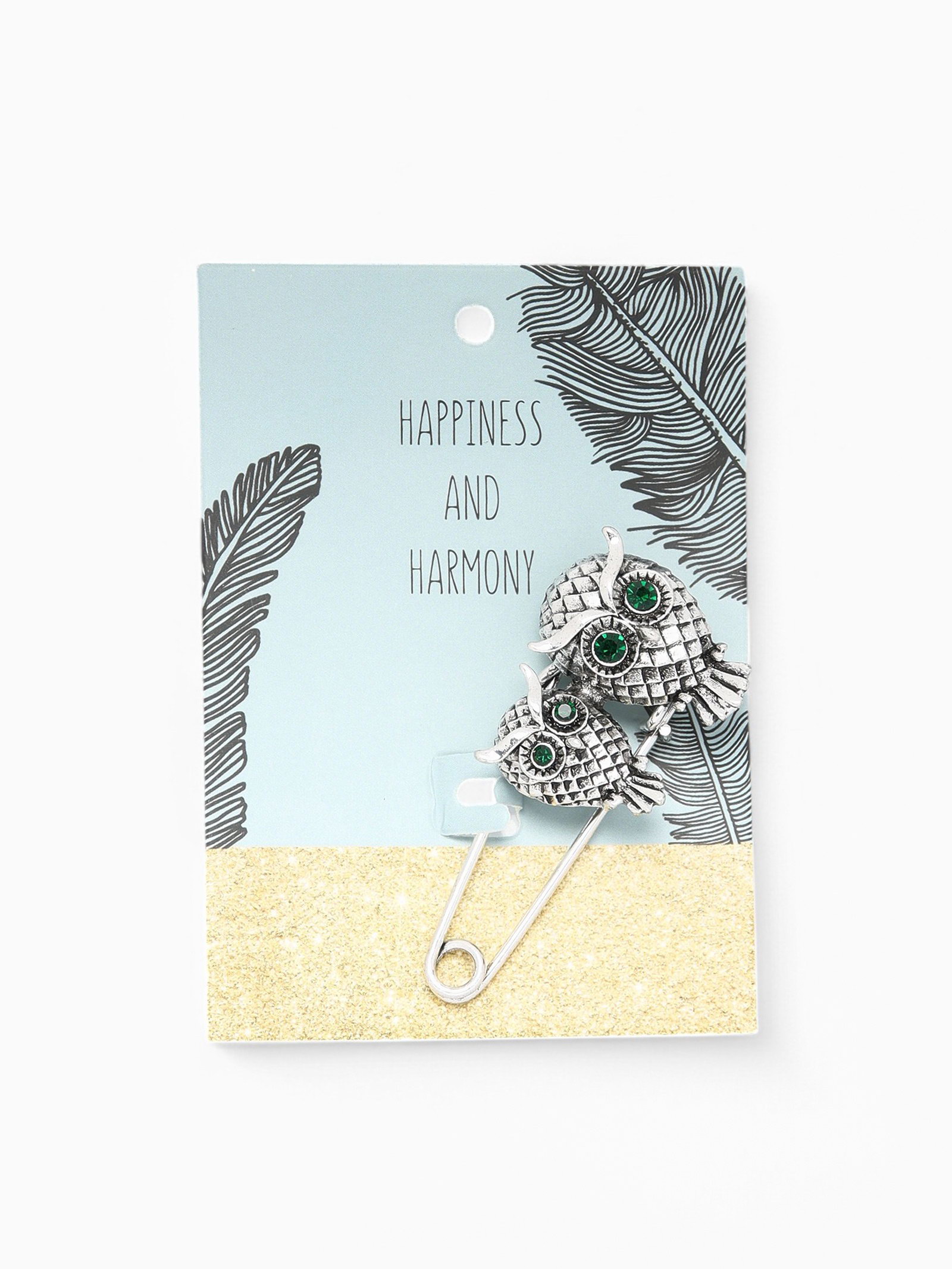 Булавка "Совы" пара, 6 см, зелёная в чернёном серебре, 3x6x1 см., QF, Китай