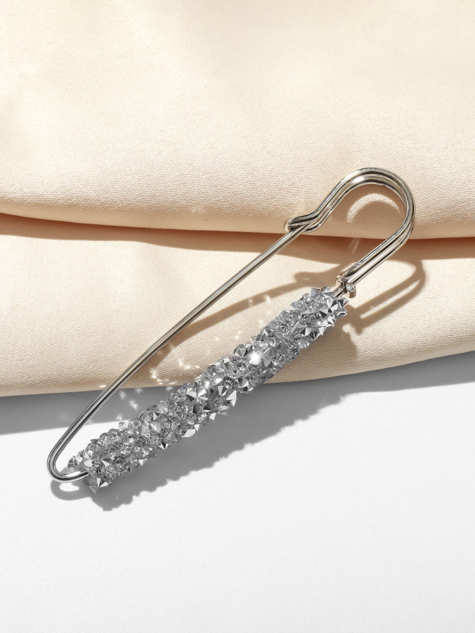 Булавка "Вечеринка" стразы, 7 см, цвет серебро, 1.5x7x1.5 см., QF, Китай