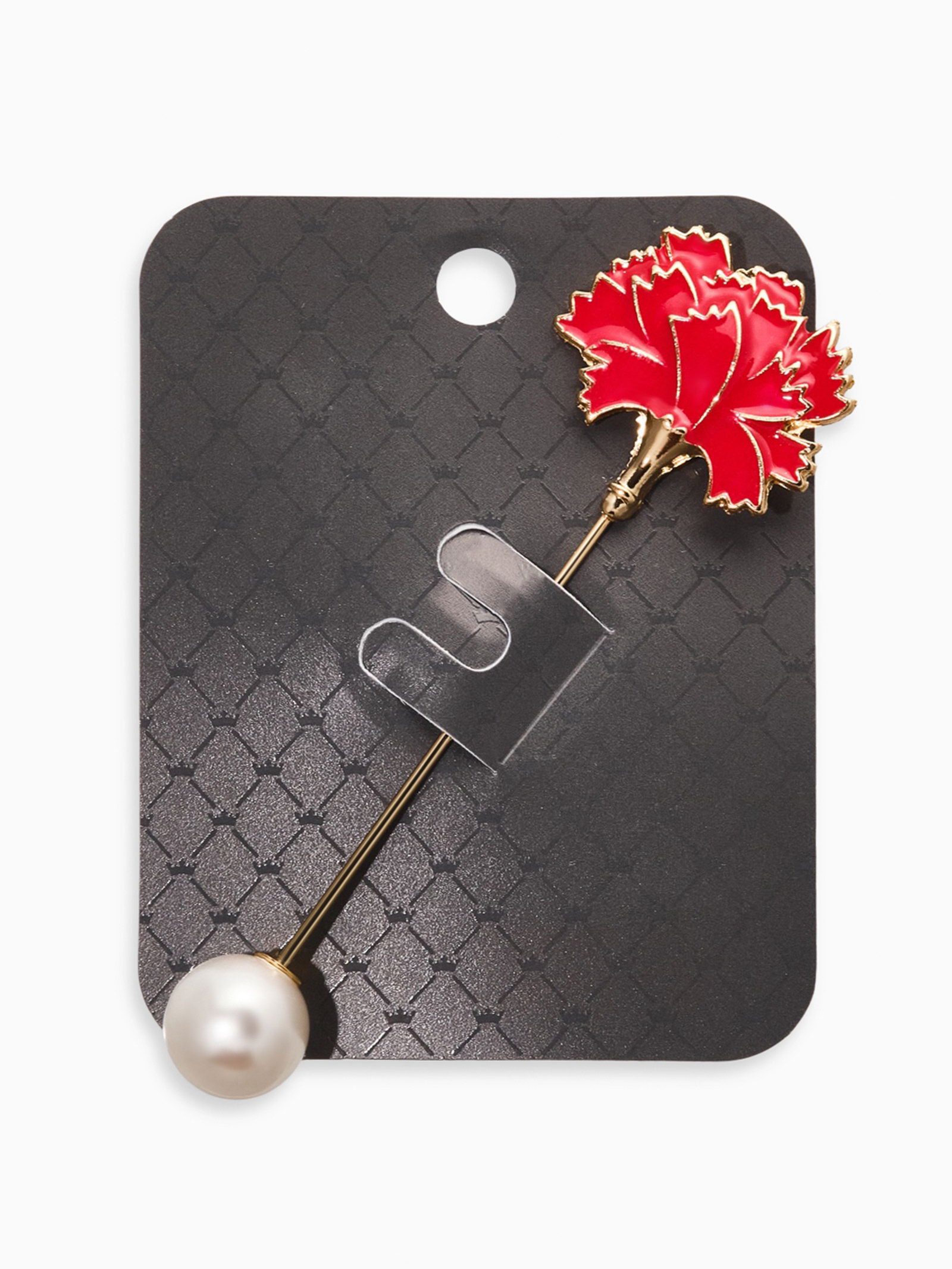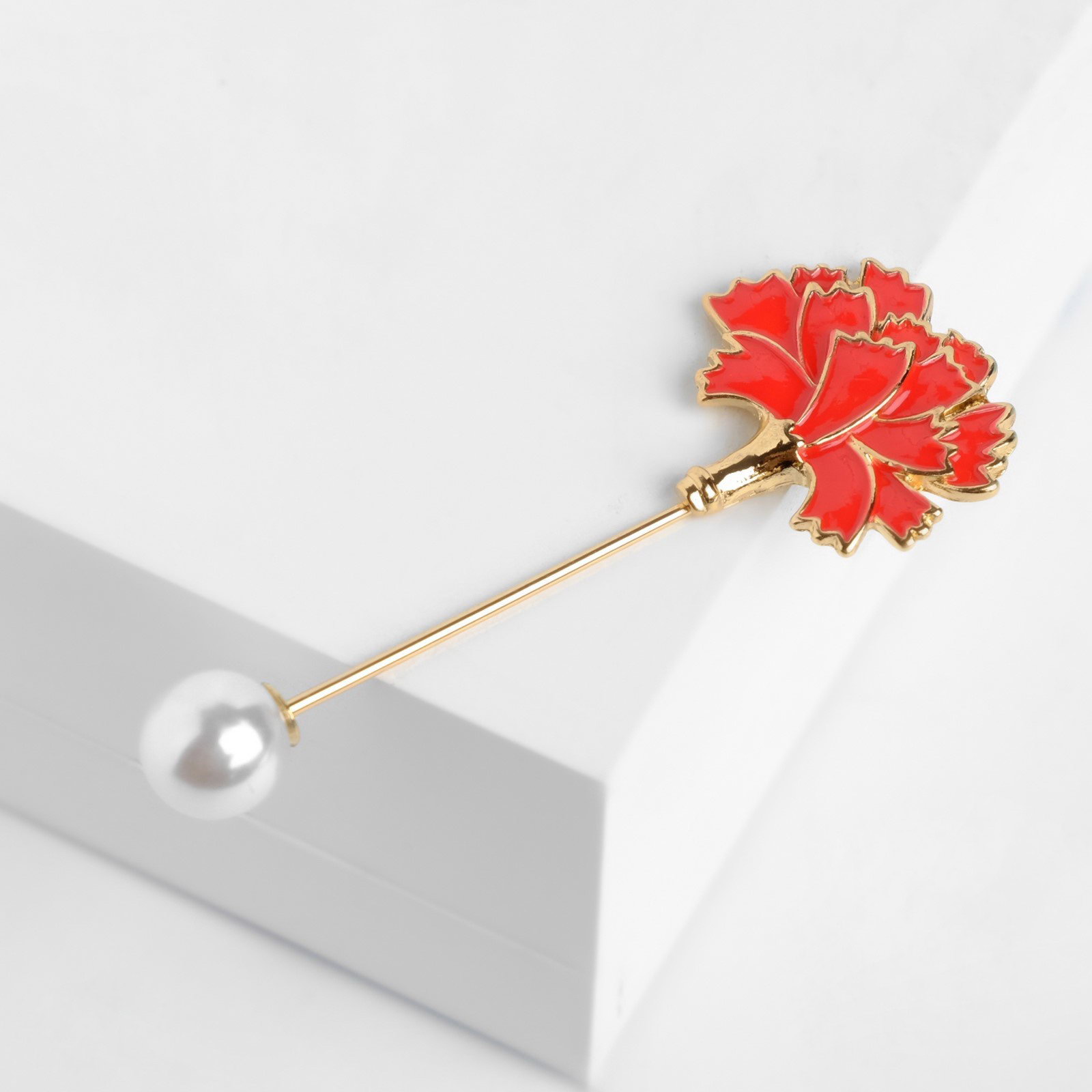 Булавка "Цветок" гвоздика, 7 см, красно-белая в золоте, 2x7x1 см., QF, Китай