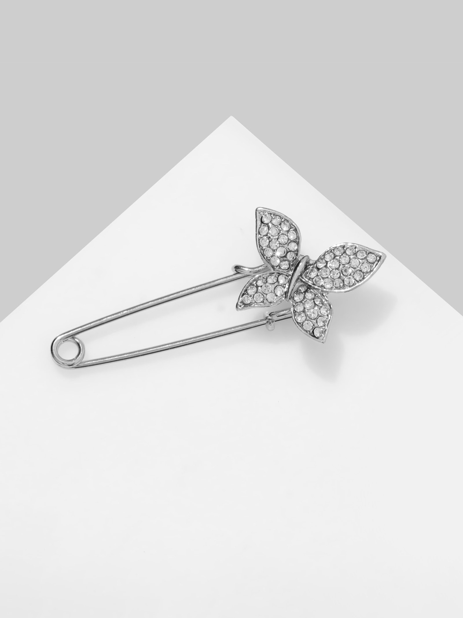 Булавка "Бабочка", 5 см, цвет белый в серебре, 2.5x5x1.5 см., QF, Китай