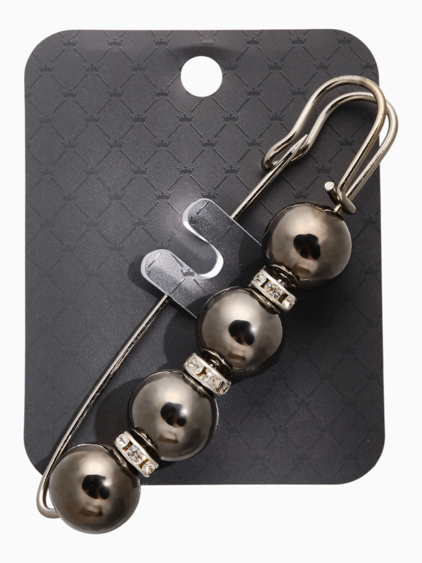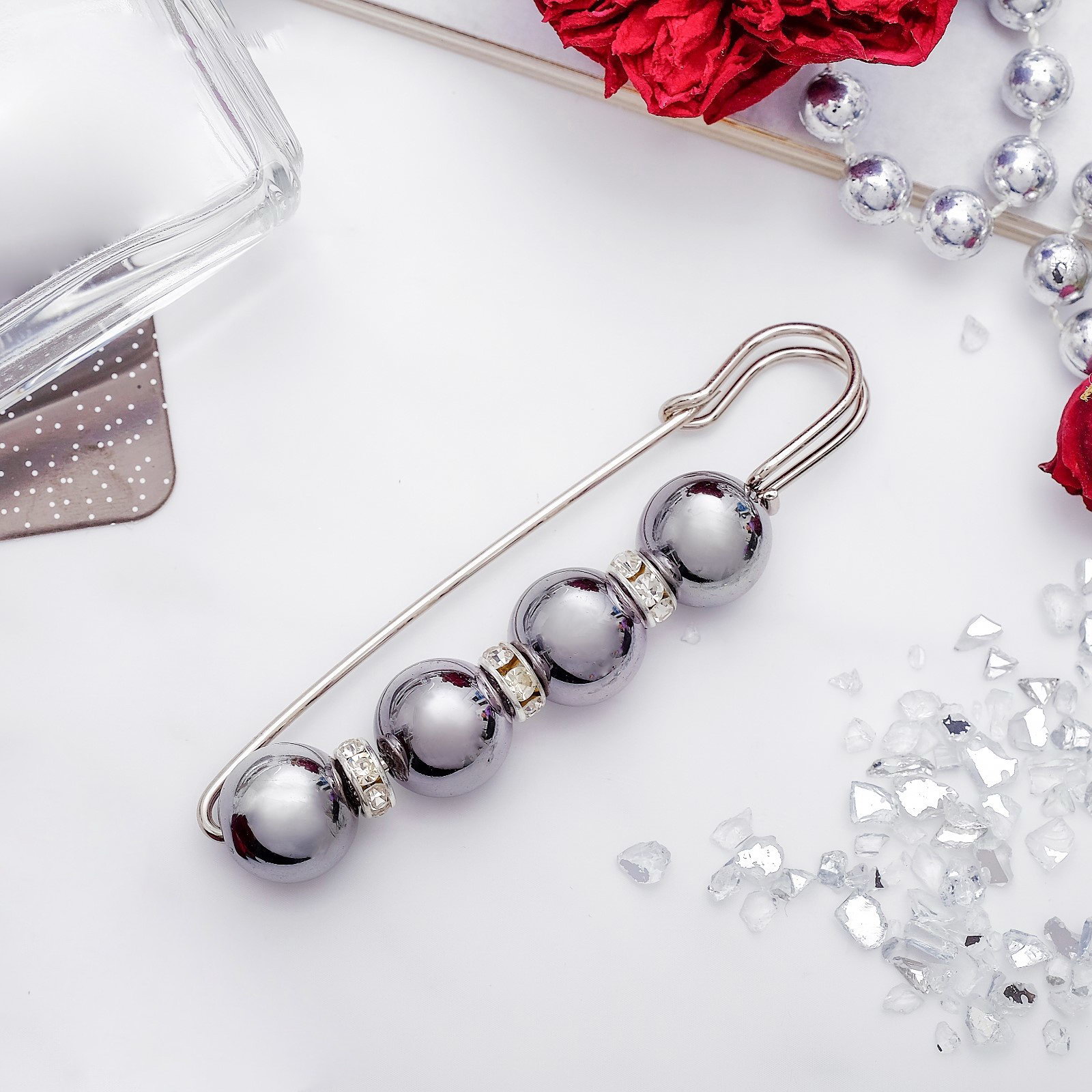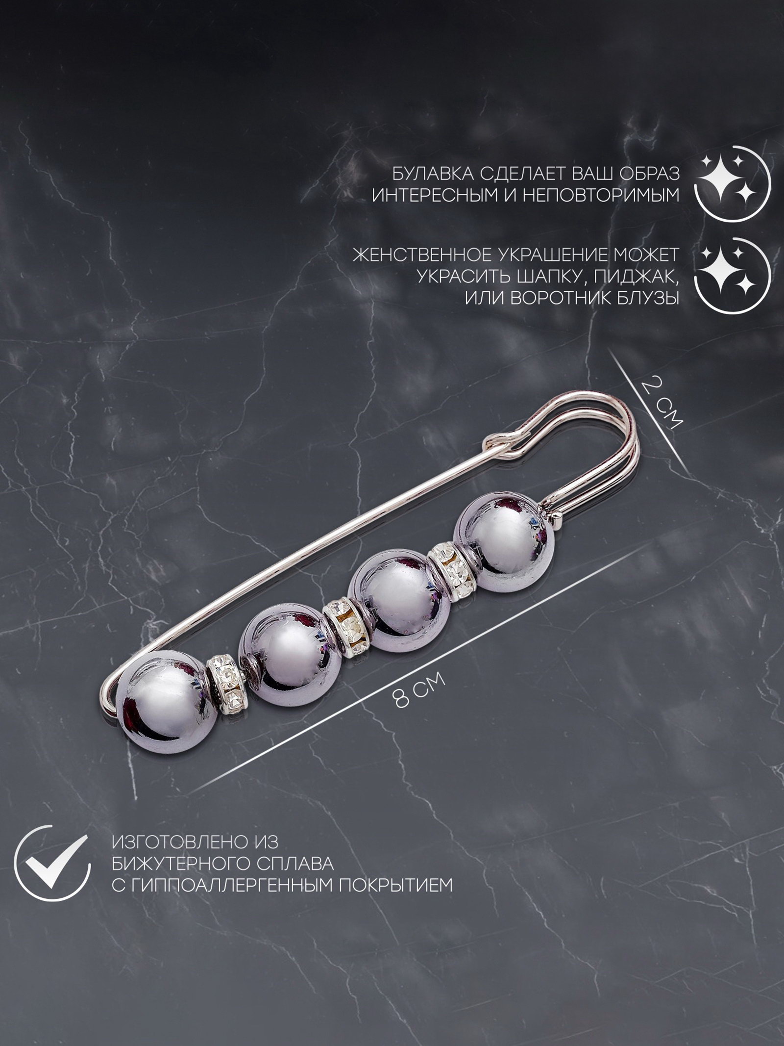 Булавка "Квартет" шар №12, 8 см, глянцевая, серая в серебре, 2x8x1.5 см., QF, Китай
