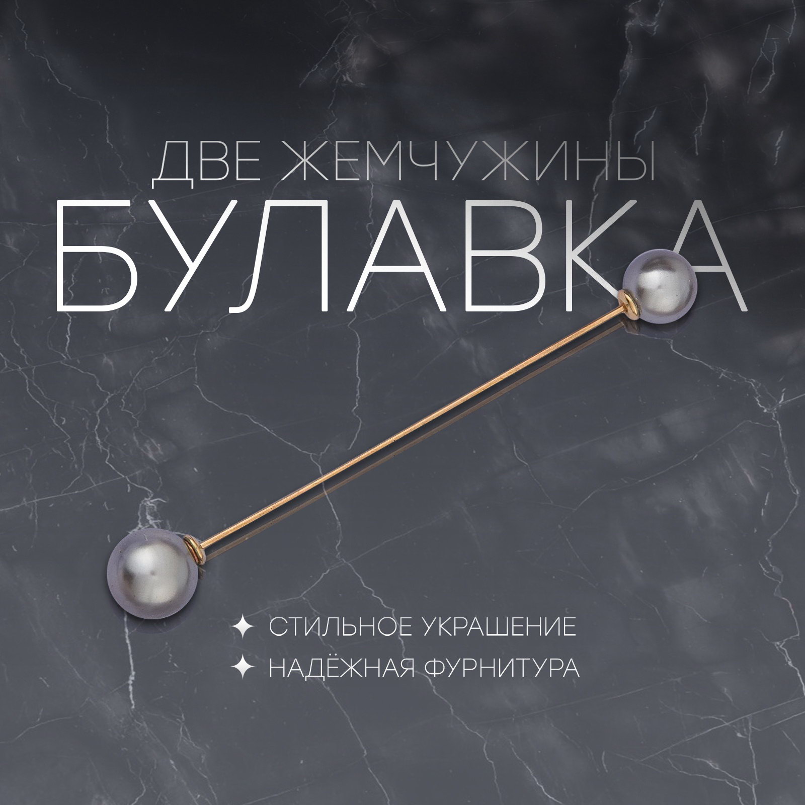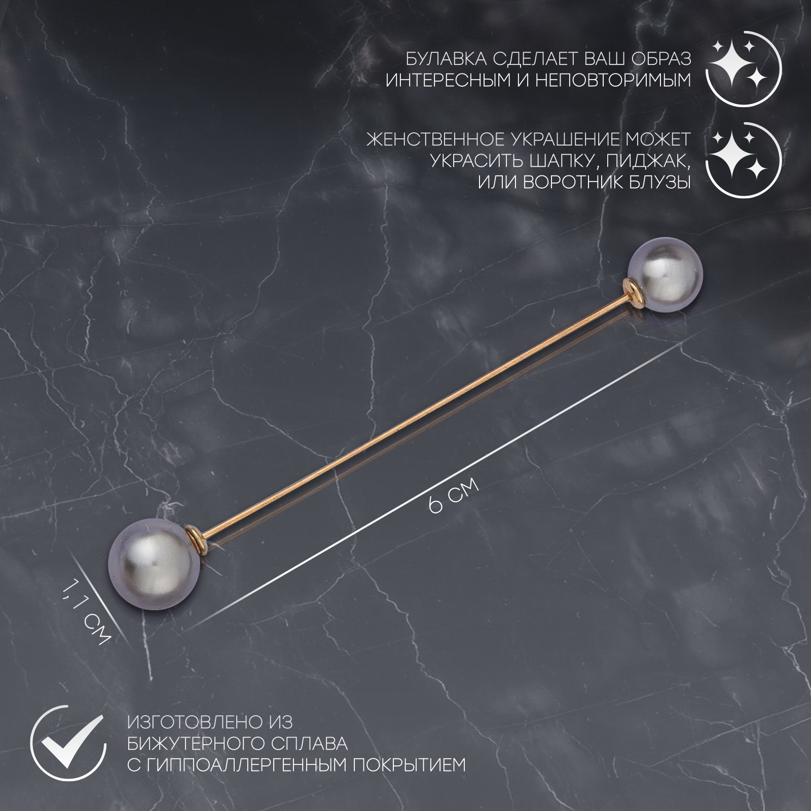 Булавка "Две жемчужины", 6 см, серая в золоте, 1.1x6x1.1 см., QF, Китай