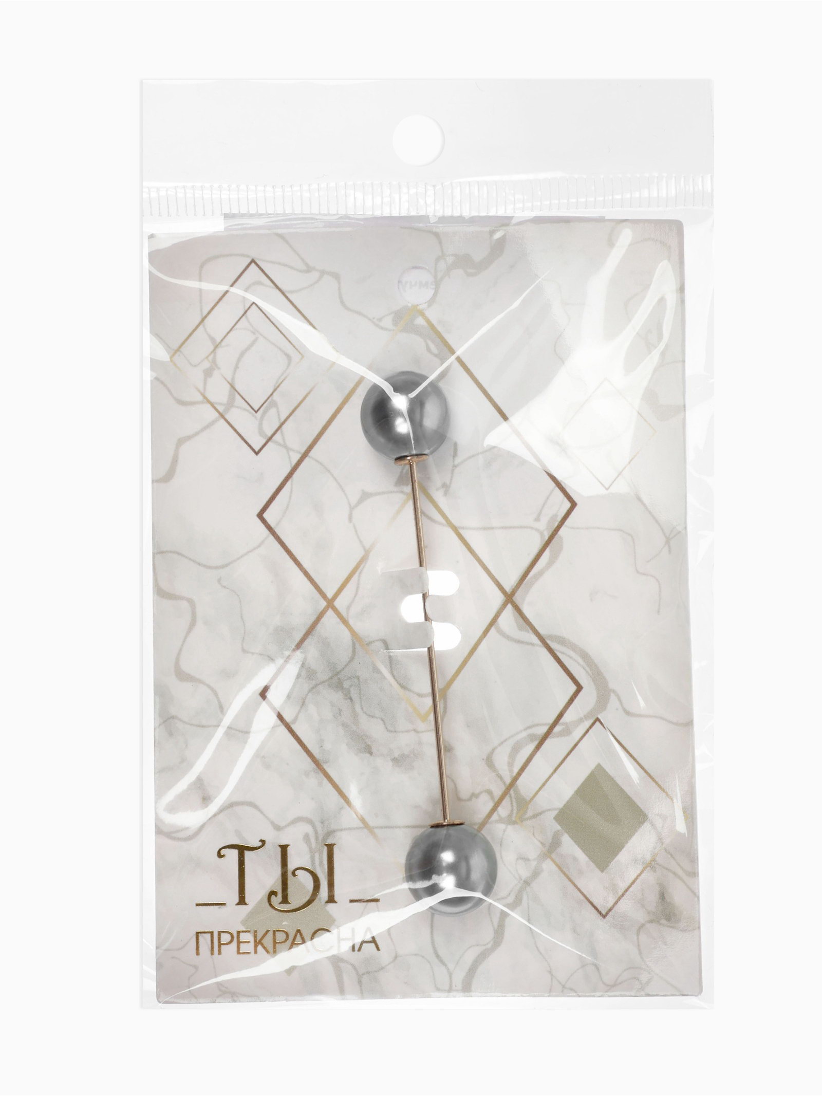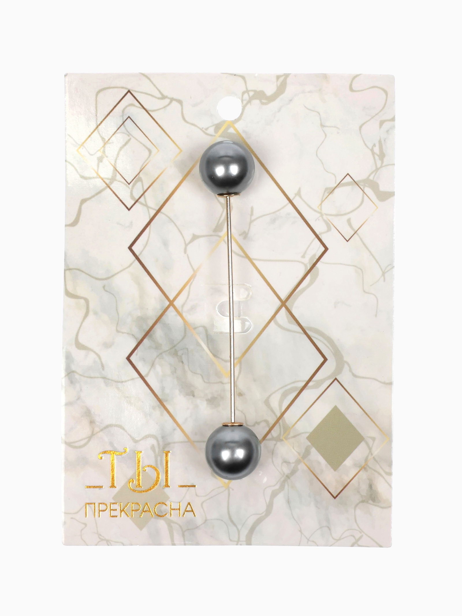 Булавка "Две жемчужины", 7 см, серая в золоте, 0.1x7x0.1 см., QF, Китай