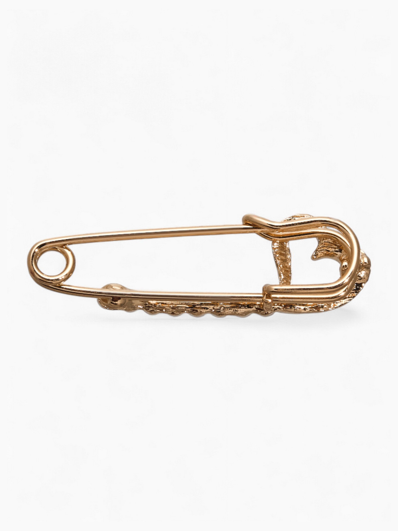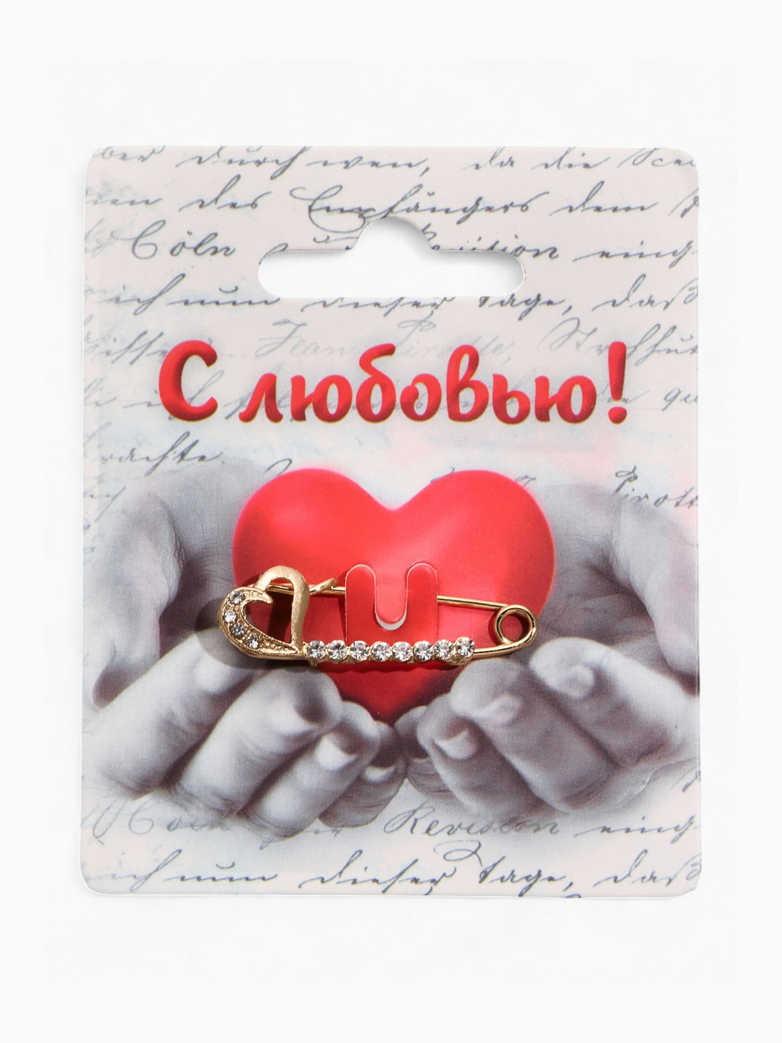 Булавка "Сердце", 3.5 см, белая в золоте, 1x3.5x0.7 см., QF, Китай
