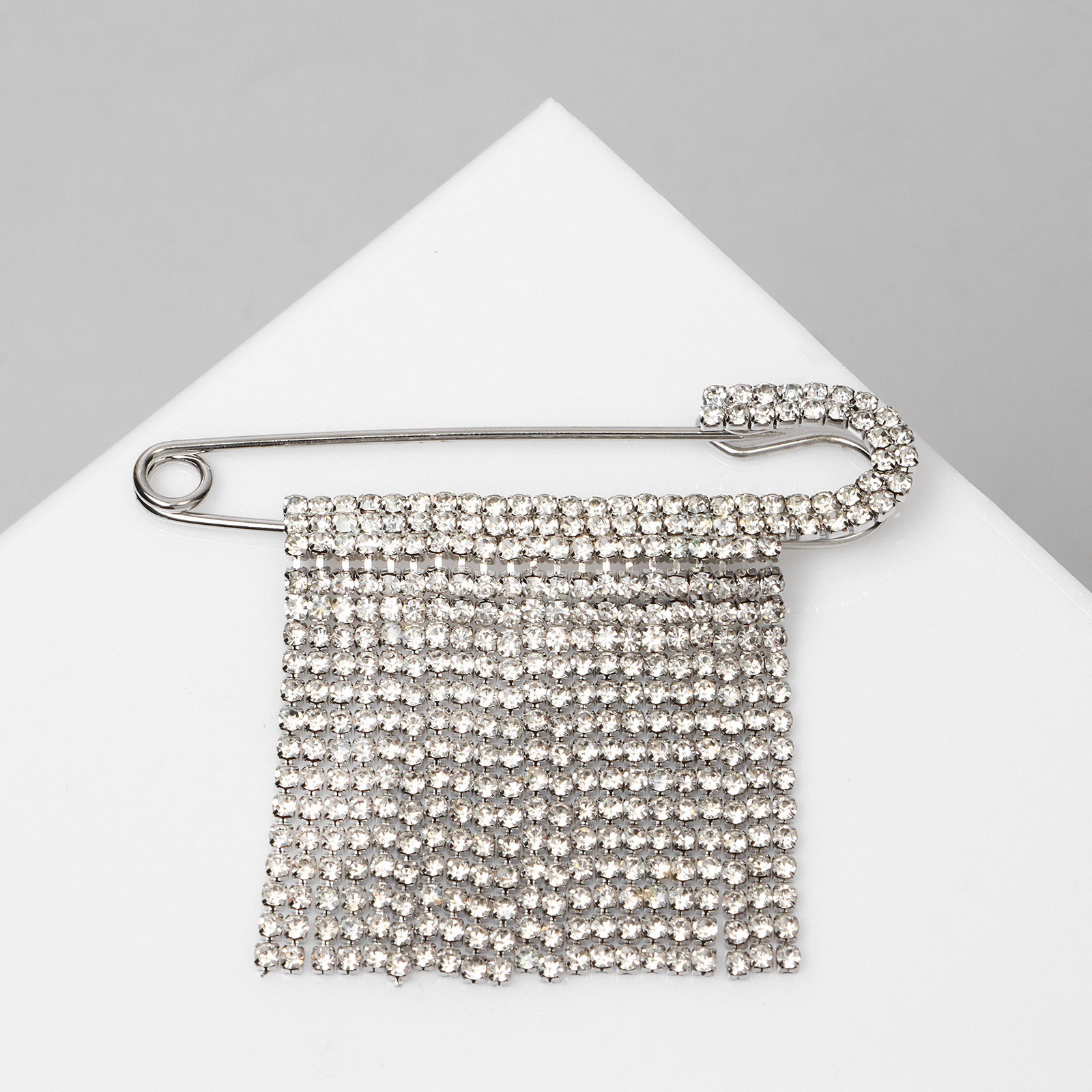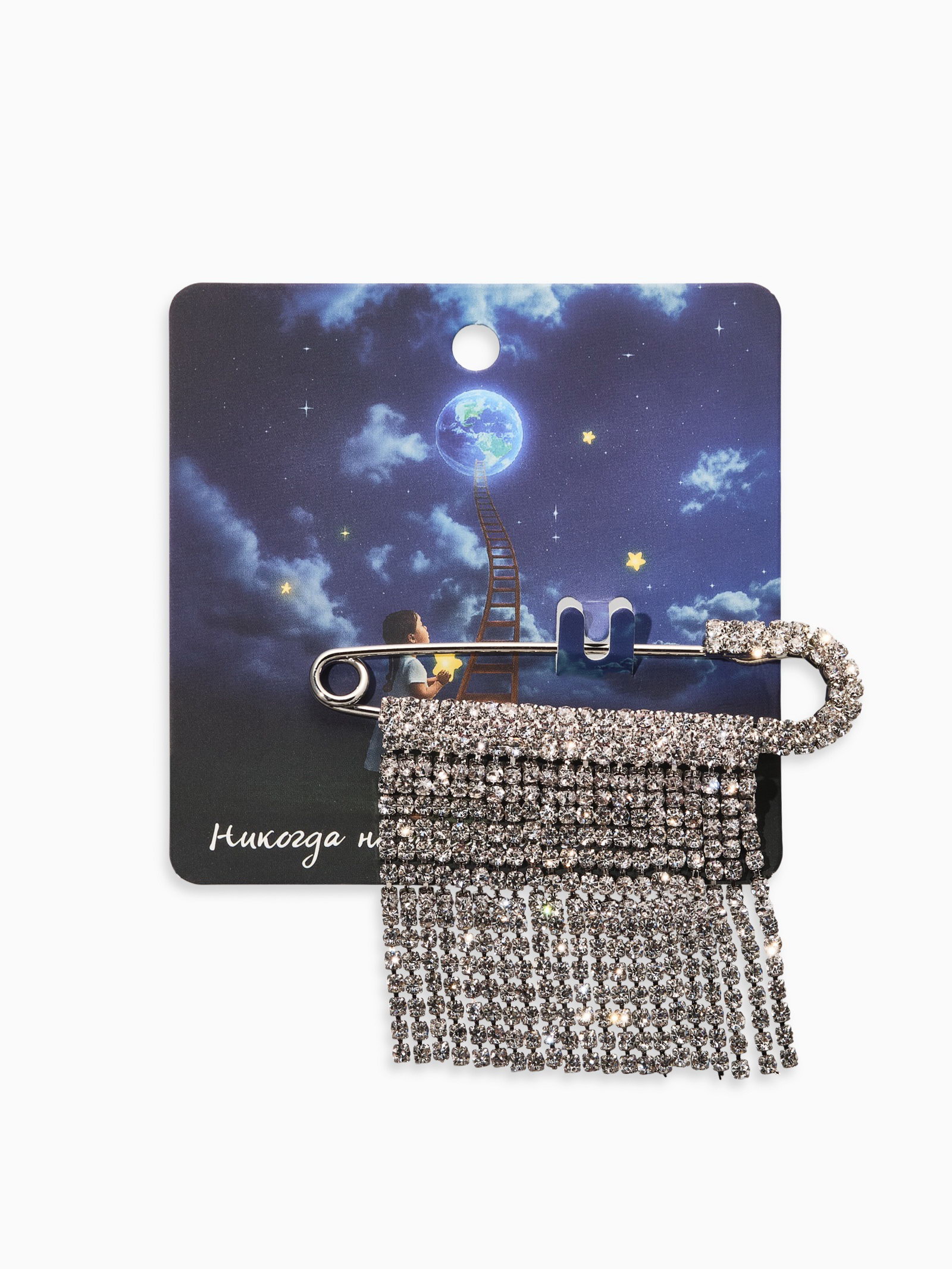Булавка "Торжество" дождик, 7см, цвет белый в серебре, 2.5x7x1.5 см., QF, Китай
