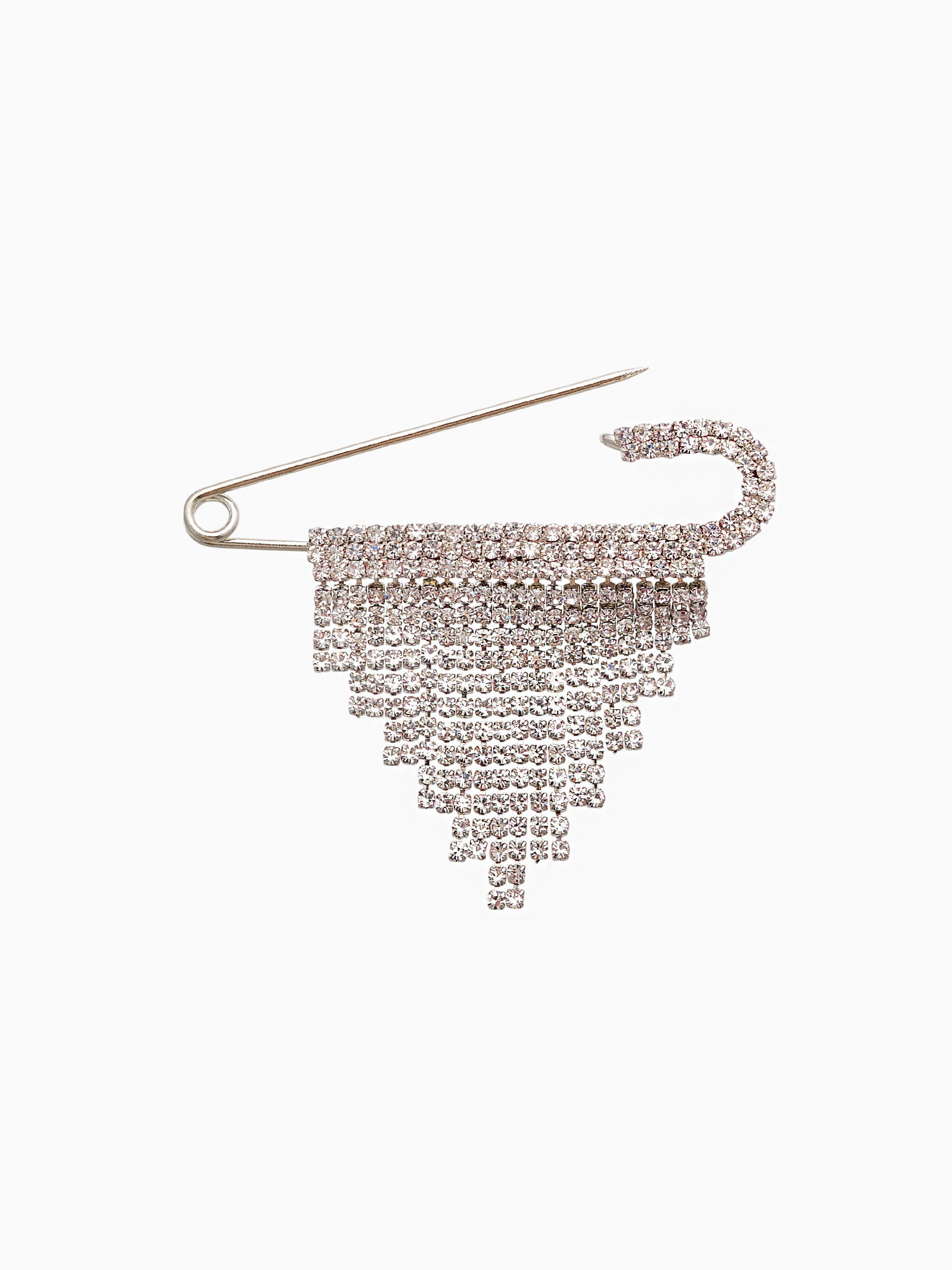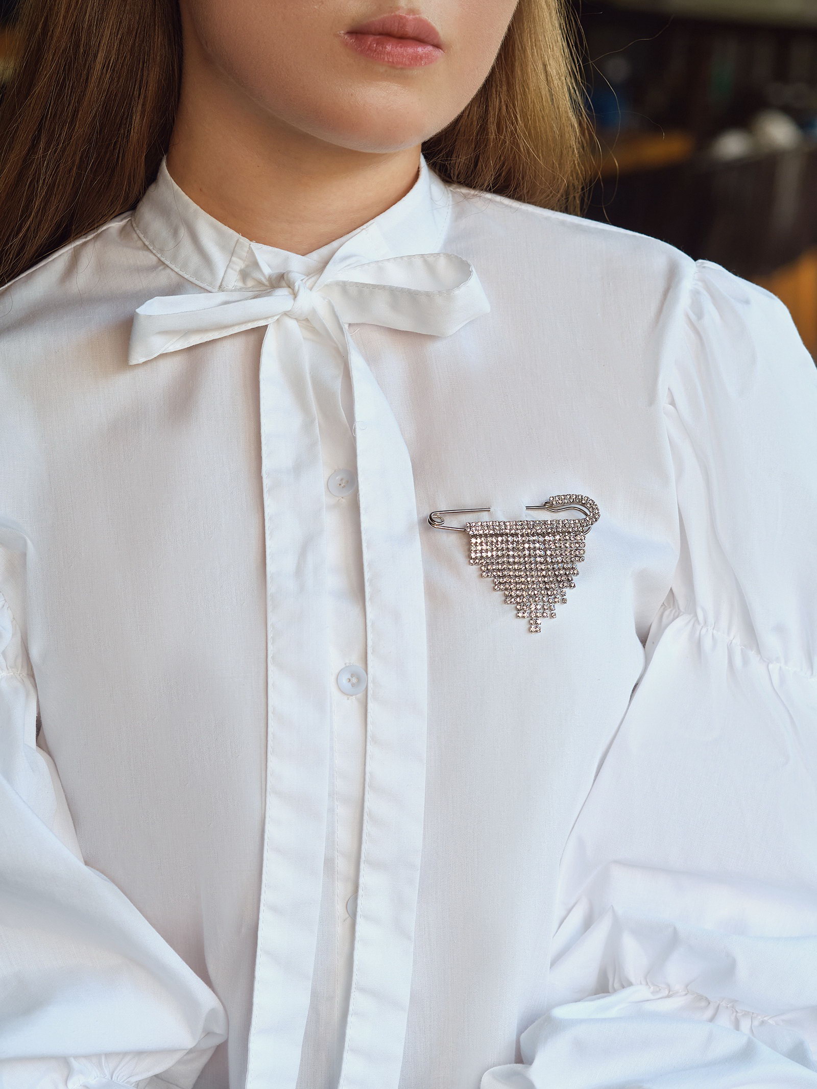 Булавка "Торжество" каскад, 7см, цвет белый в серебре, 2.5x7x1.5 см., QF, Китай