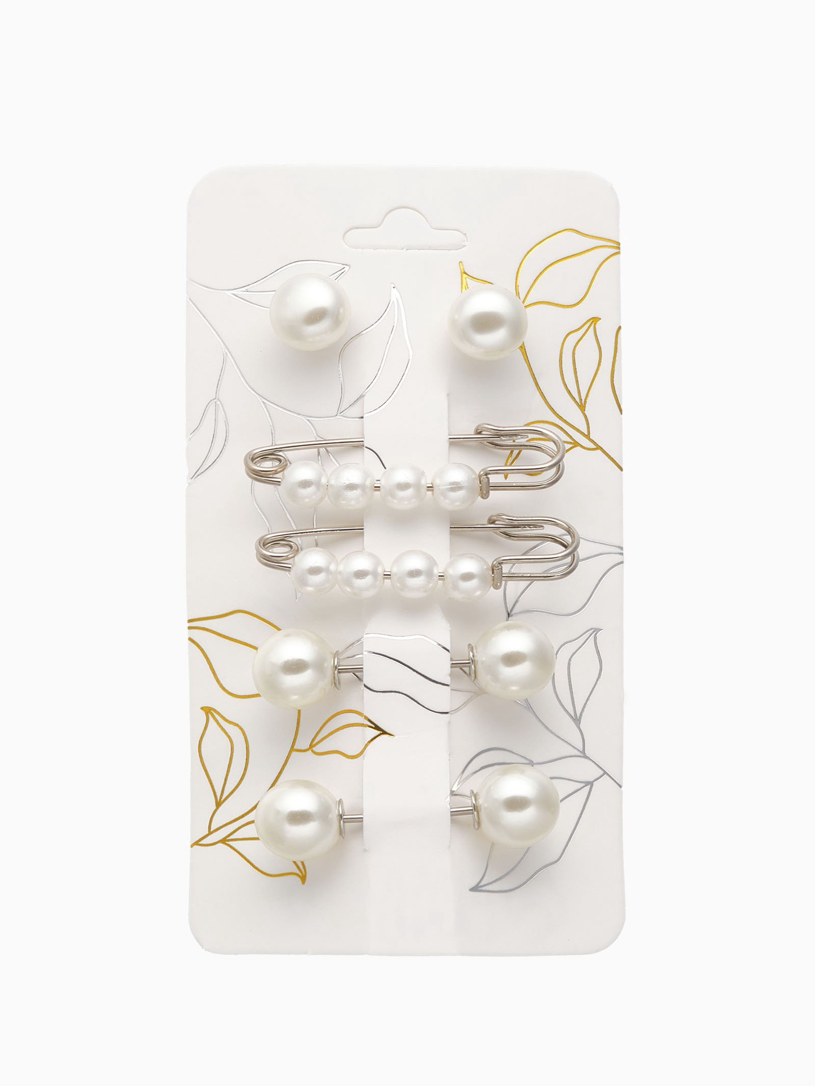 Набор булавок "Жемчужная нежность", 6 шт. 3.5 см, белый в серебре, 1x3.5x1 см., QF, Китай