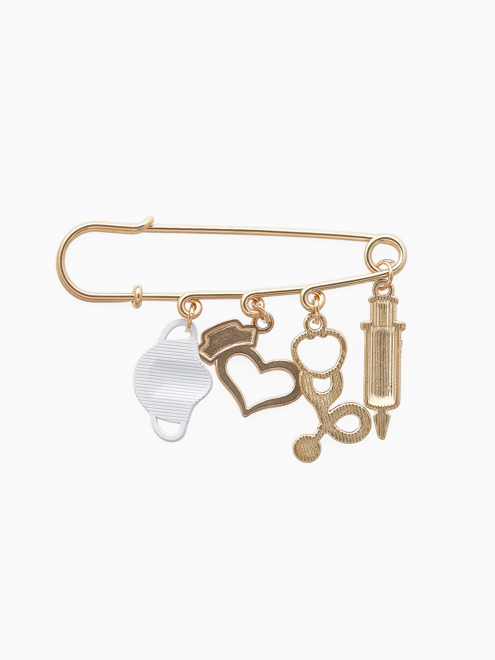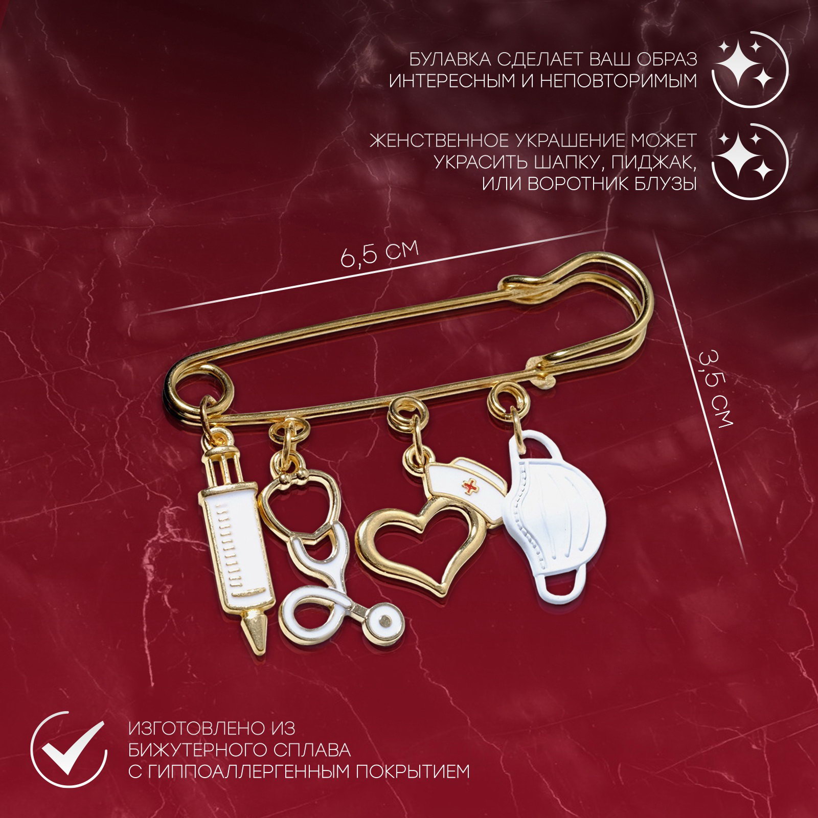 Булавка "Медицина" 4 подвески, 6.5 см, цвет белый в золоте, 3.5x6.5x1.5 см., QF, Китай