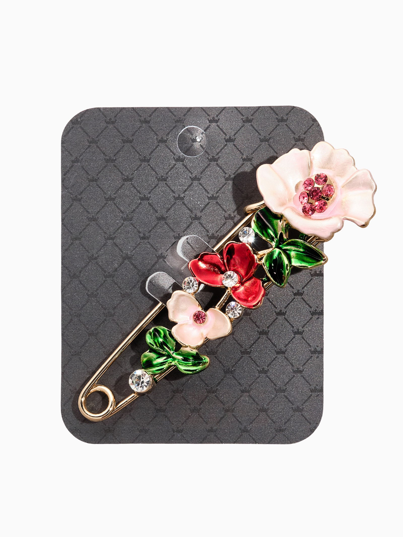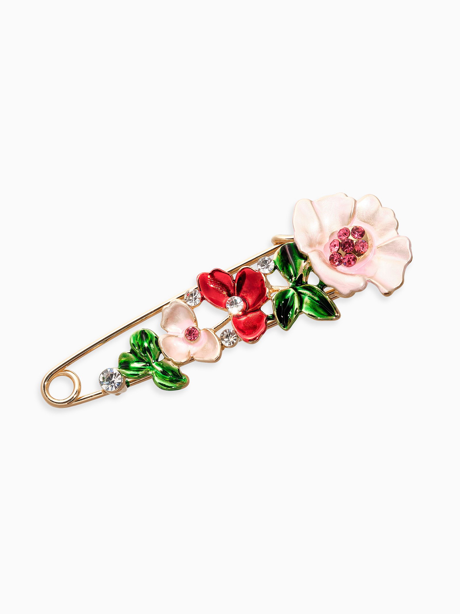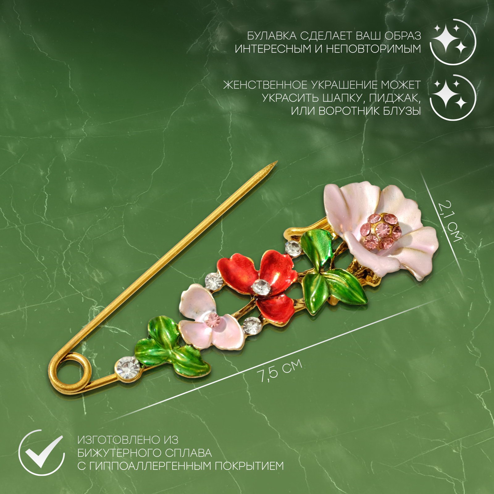 Булавка "Цветочная" дорожка, 7.5 см, цветная в чернёном золоте, 2.1x7.5x0.5 см., Queen fair, Китай
