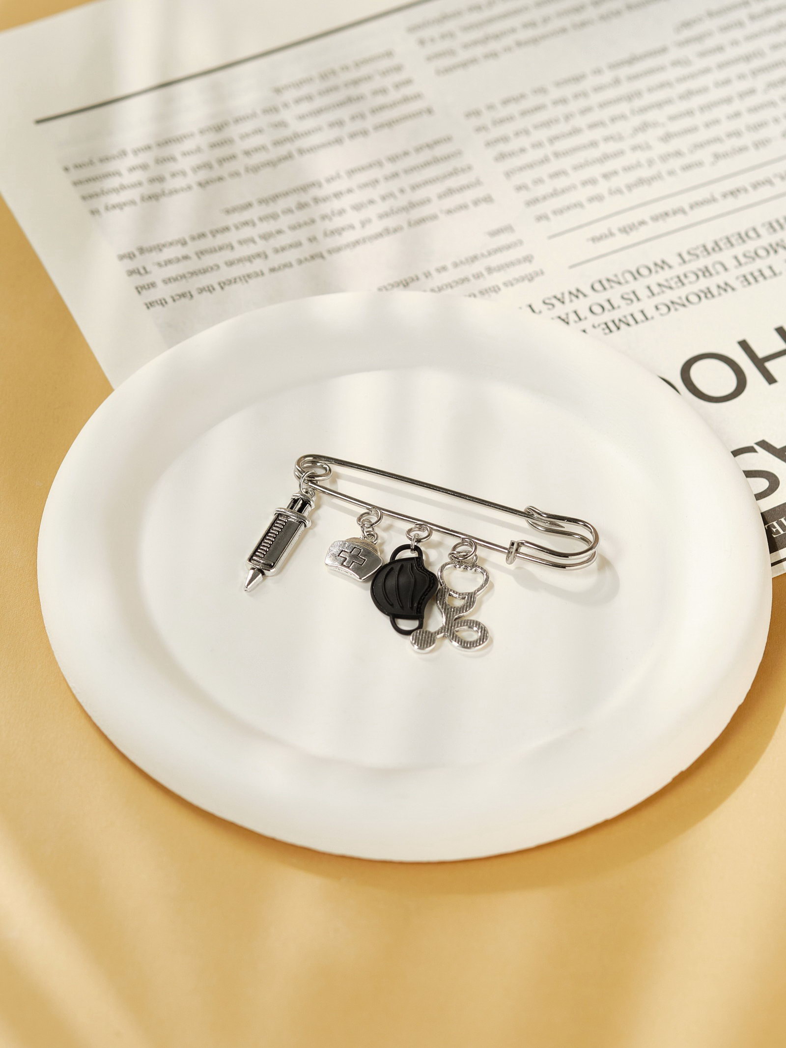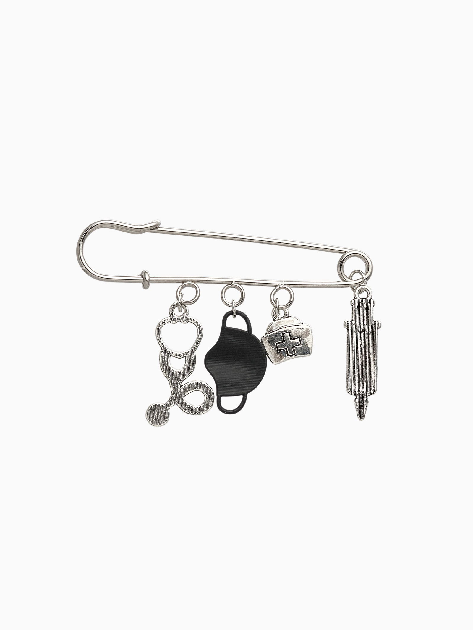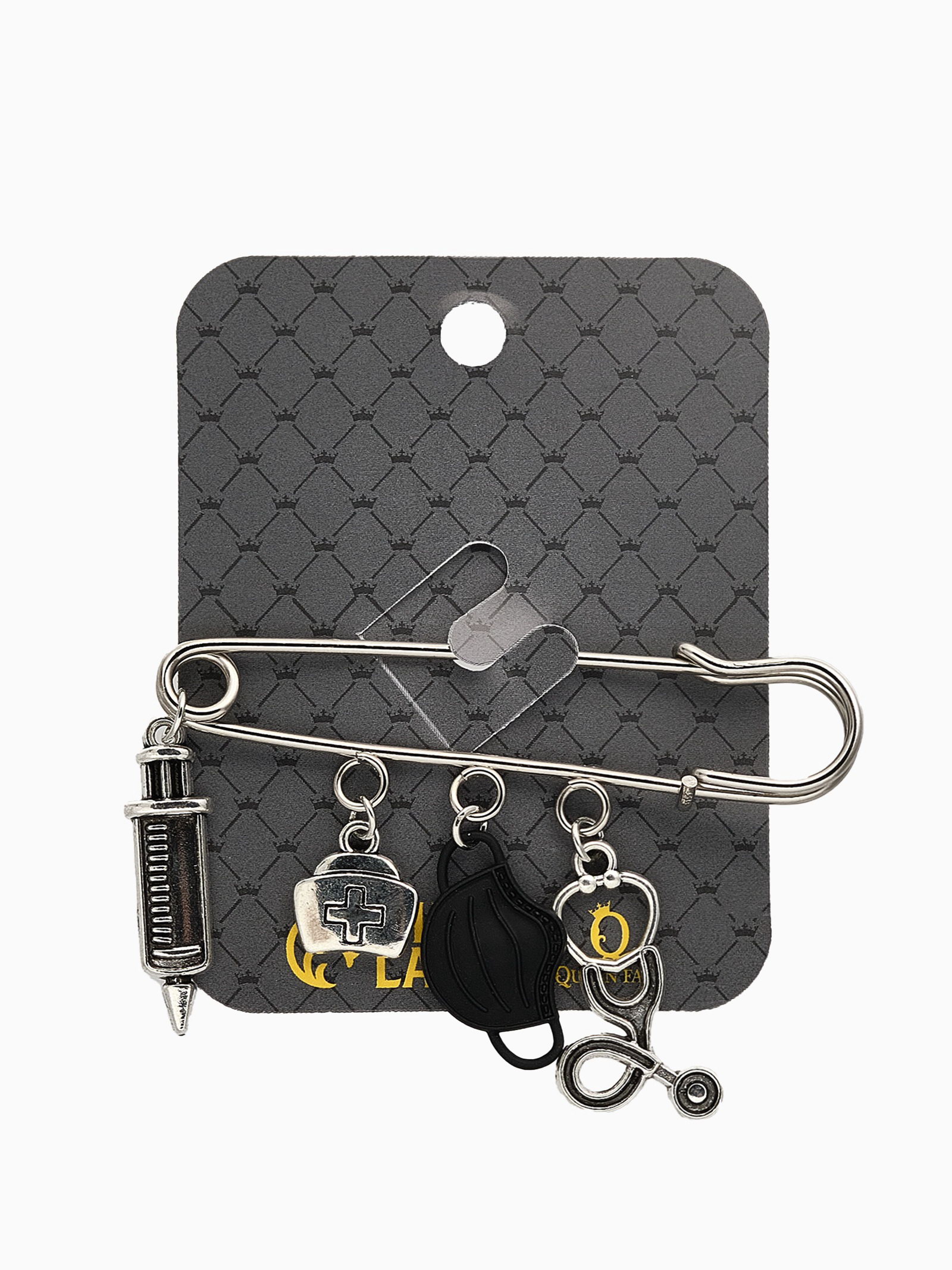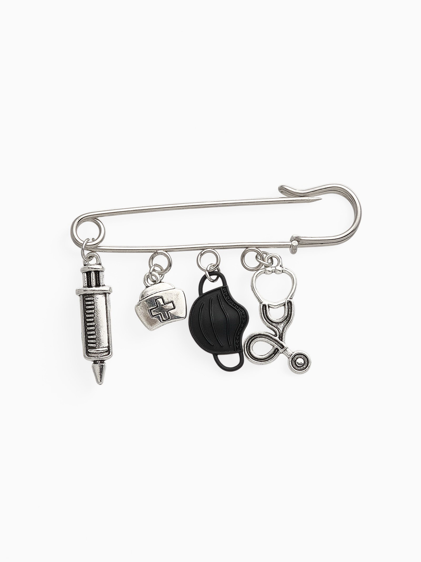 Булавка "Медицина" 4 подвески, 6.5 см, чёрная в чернёном серебре, 2.5x6.5x0.8 см., QF, Китай