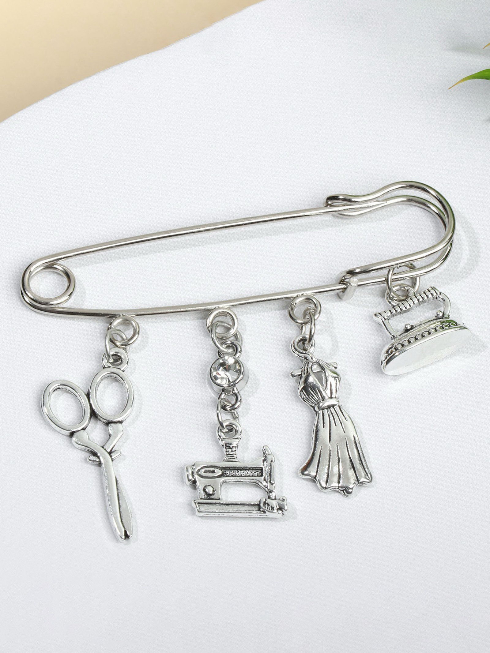 Булавка "Швея", 6.5 см, цвет белый в чернёном серебре, 3.5x6.5x2.2 см., QF, Китай
