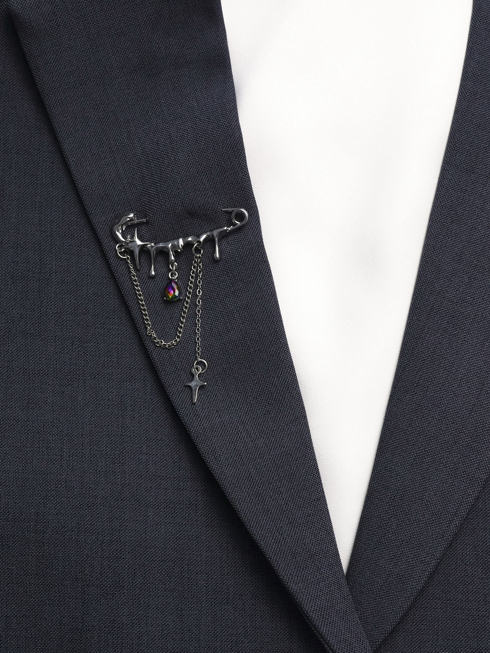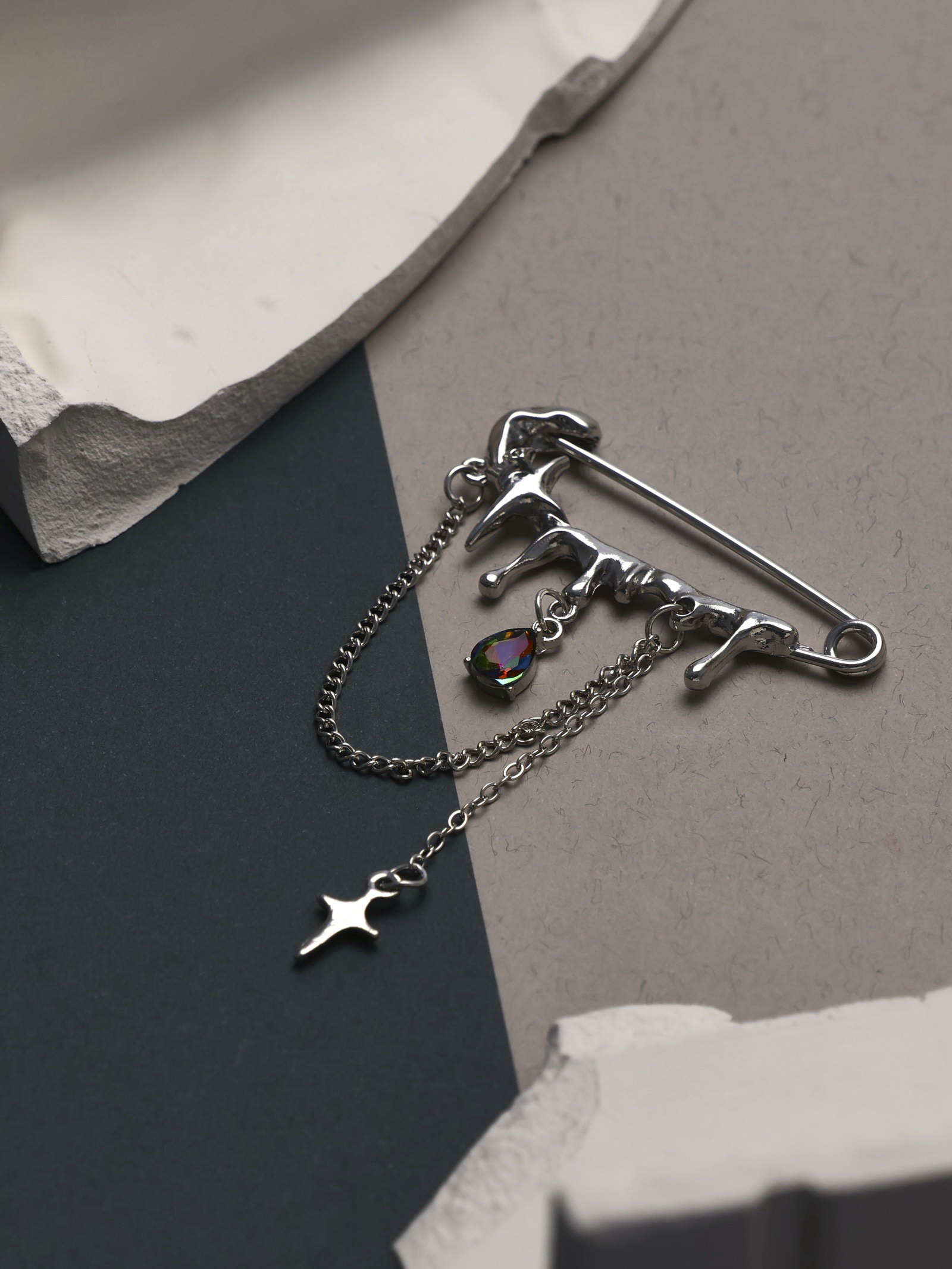 Булавка "Звёзды" с цепочками, белая в серебре, 5x7.7x0.4 см., QF, Китай