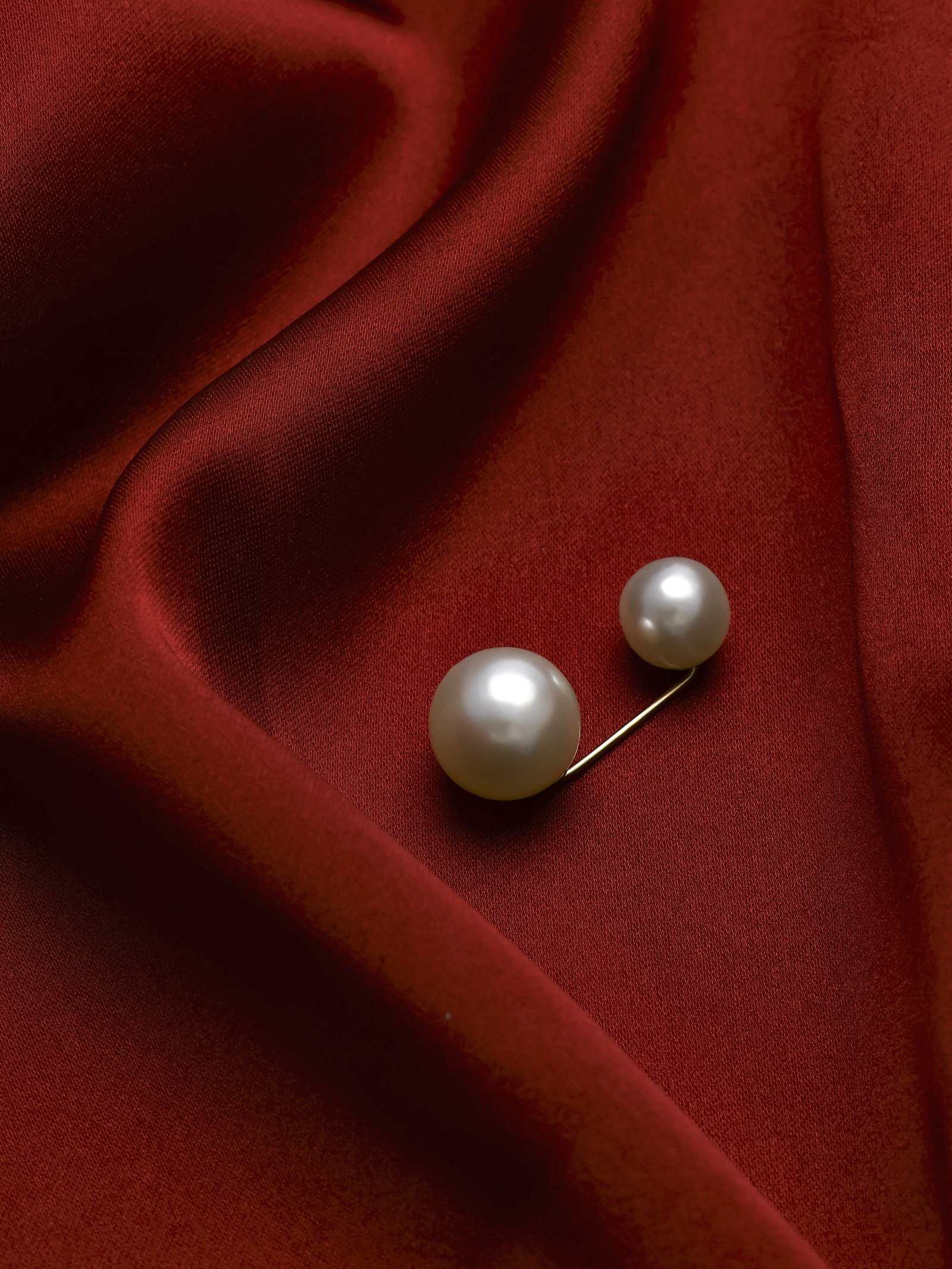 Булавка "Две жемчужины", 3.5 см, бежевая в золоте, 1.6x3.5x1.8 см., QF, Китай