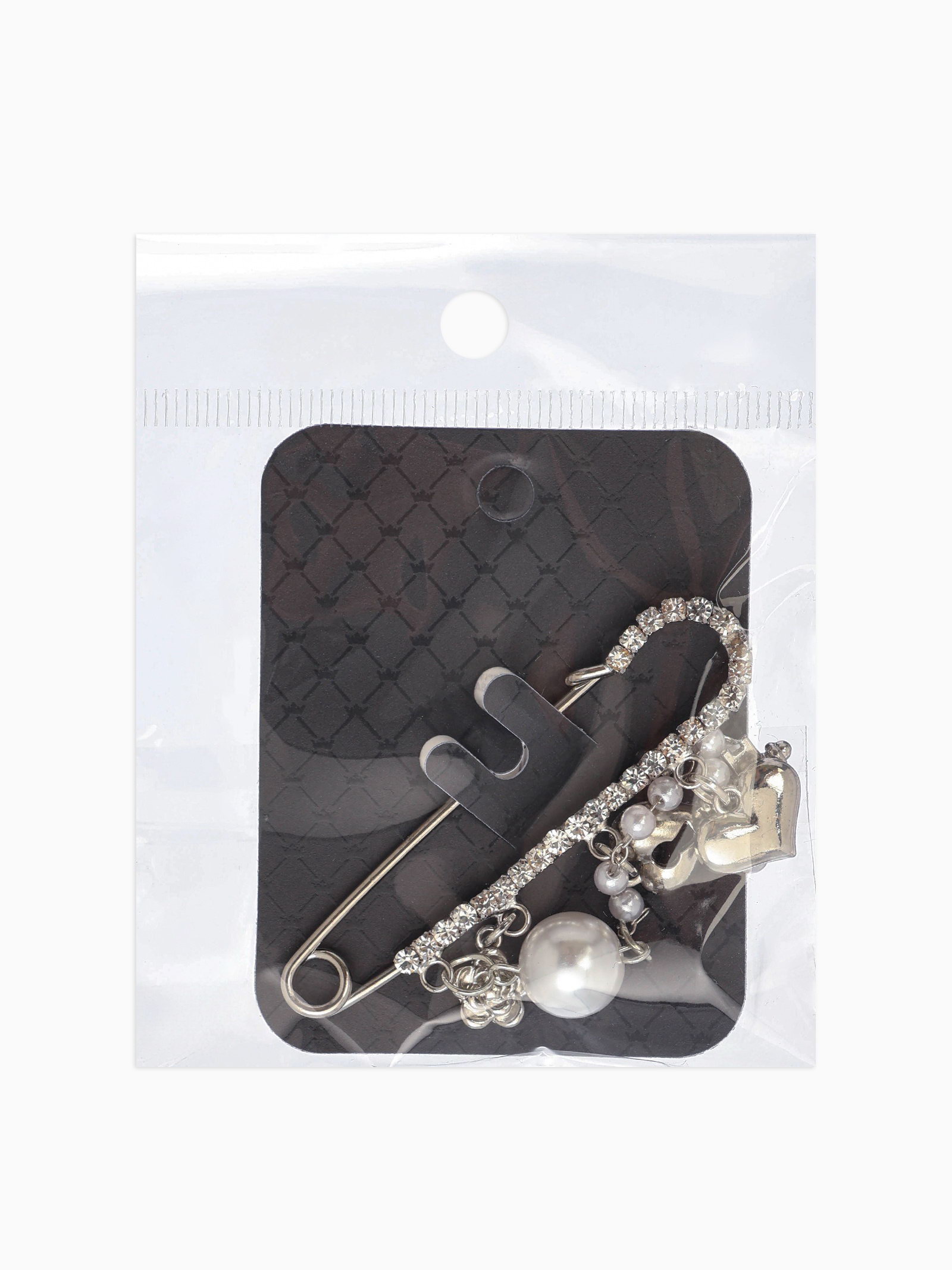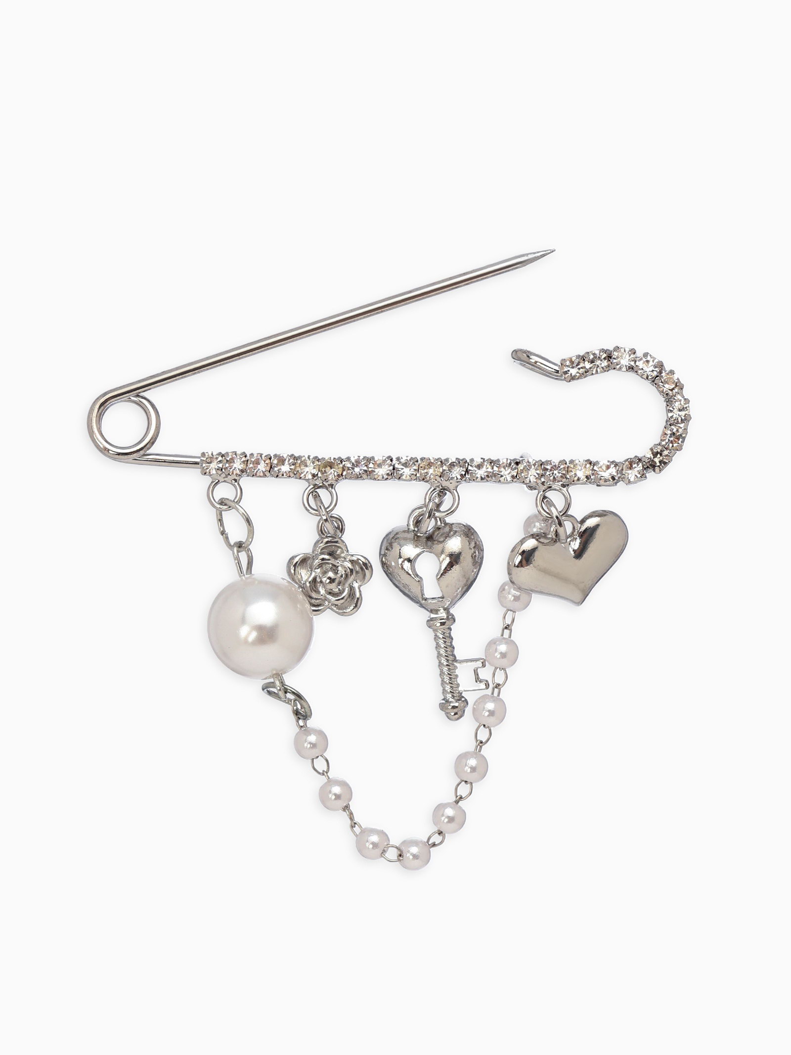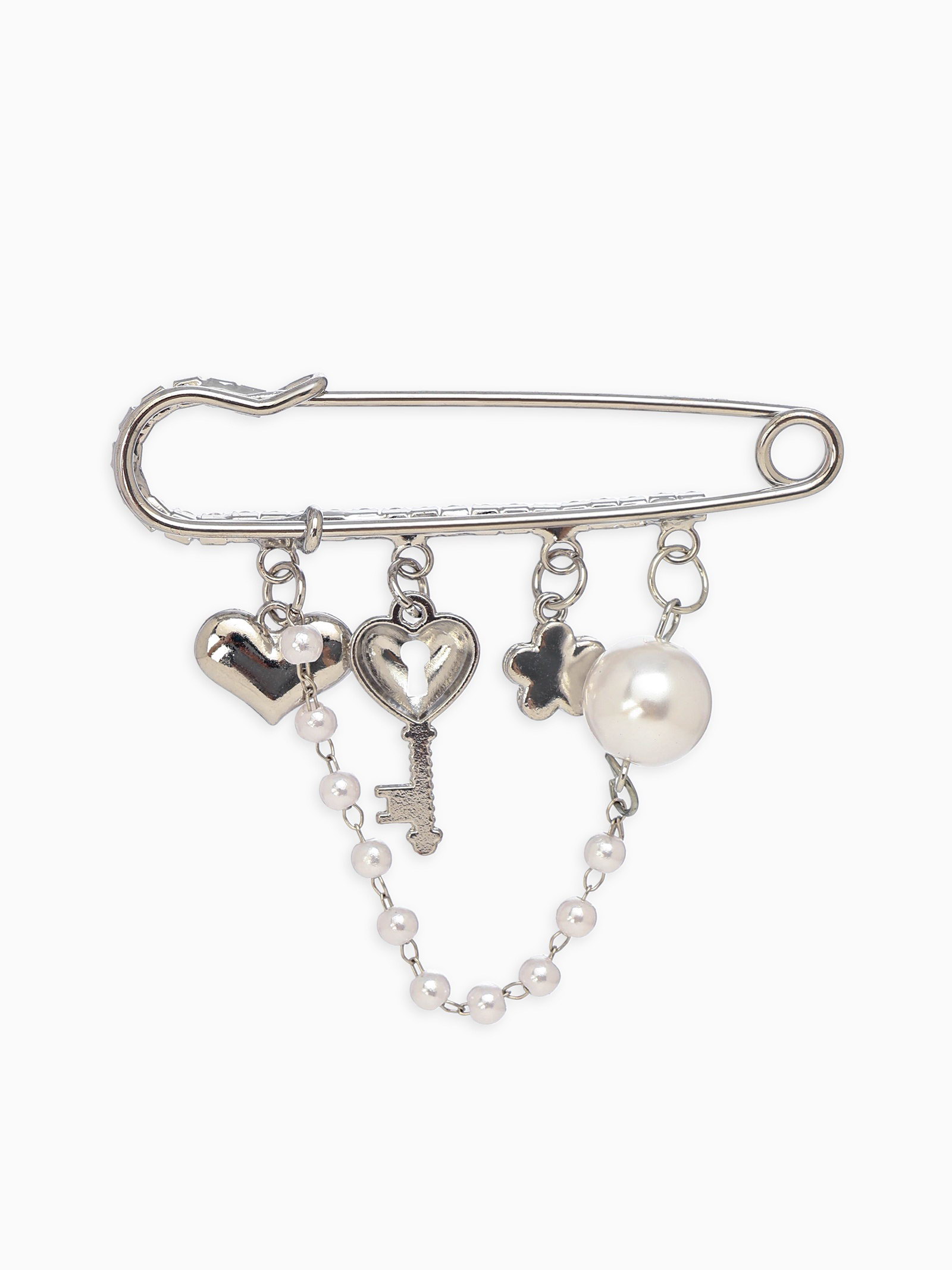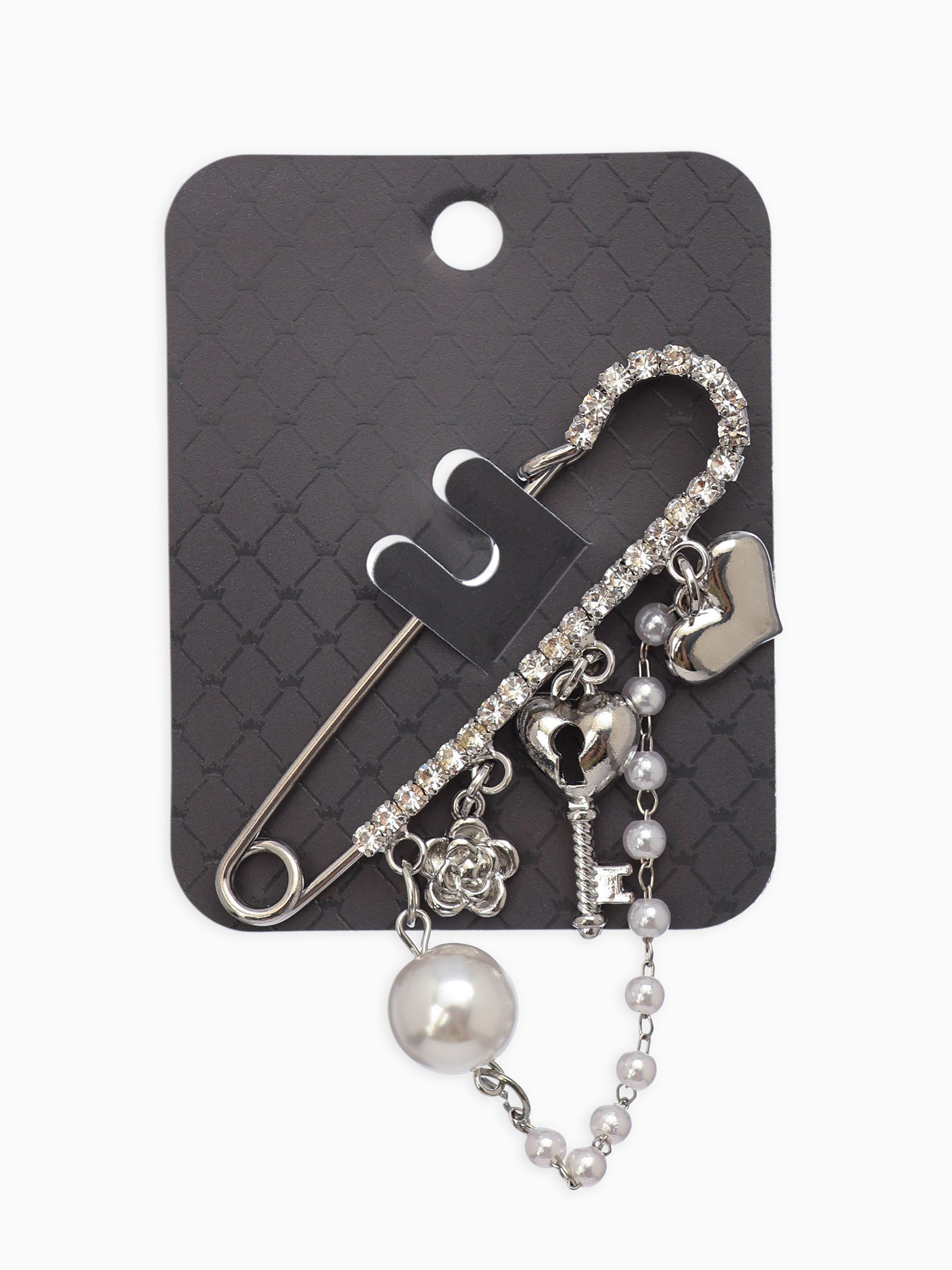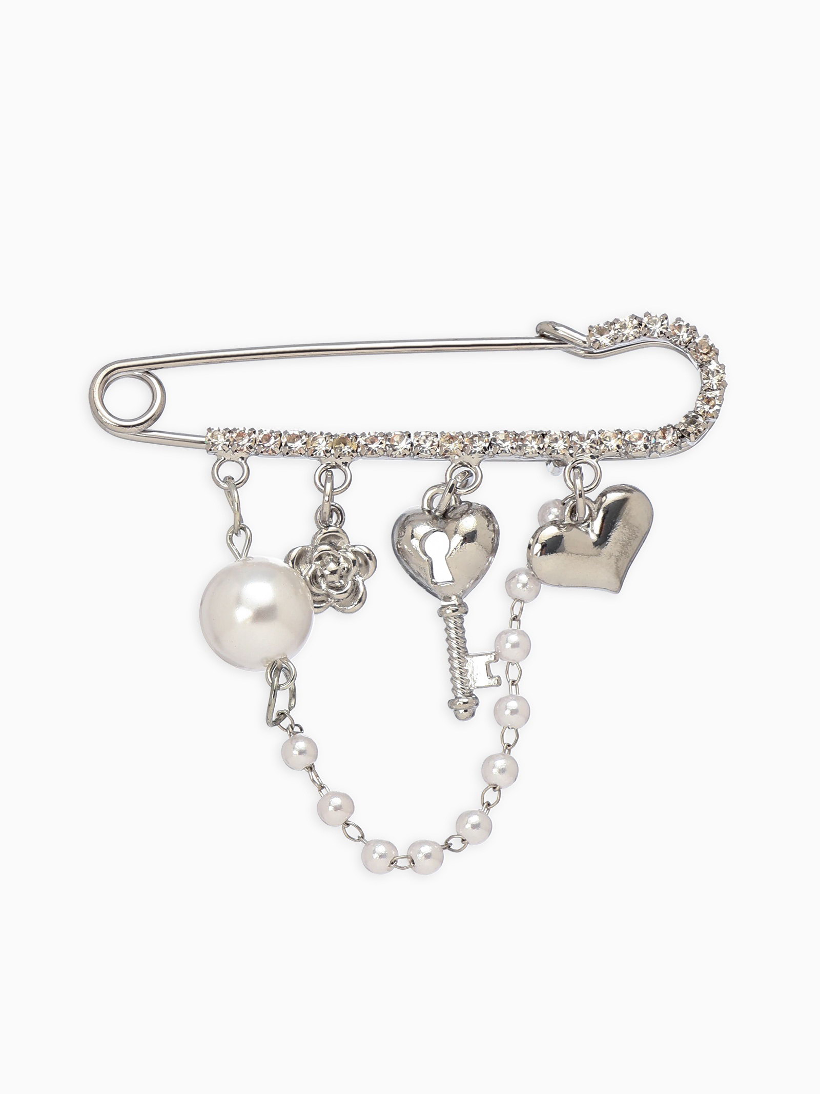 Булавка "Ключик от сердца", 6.5 см, белая в серебре, 6x6.5x1 см., QF, Китай