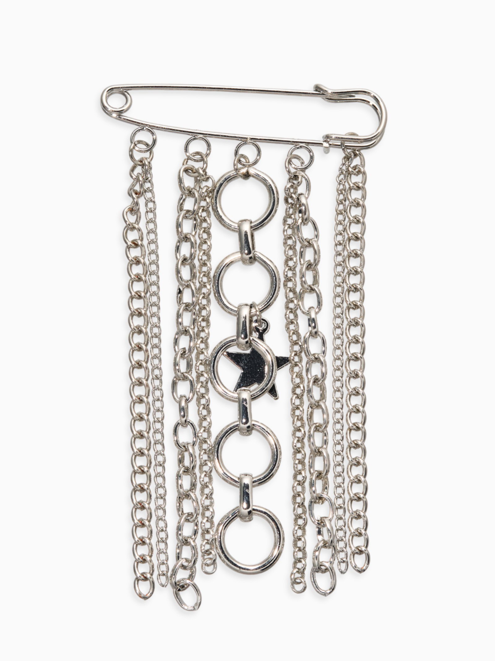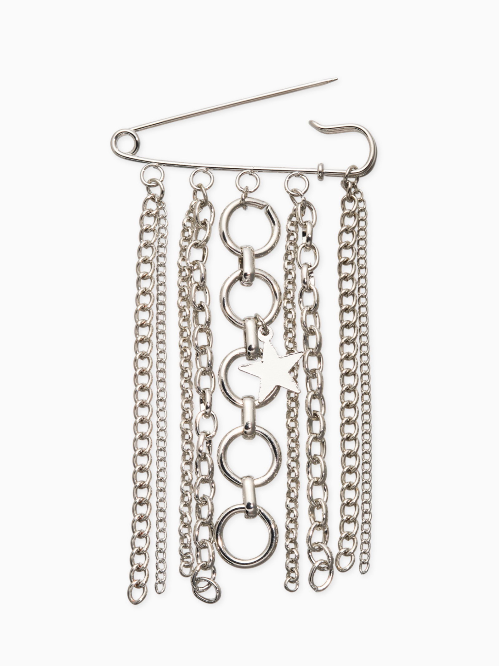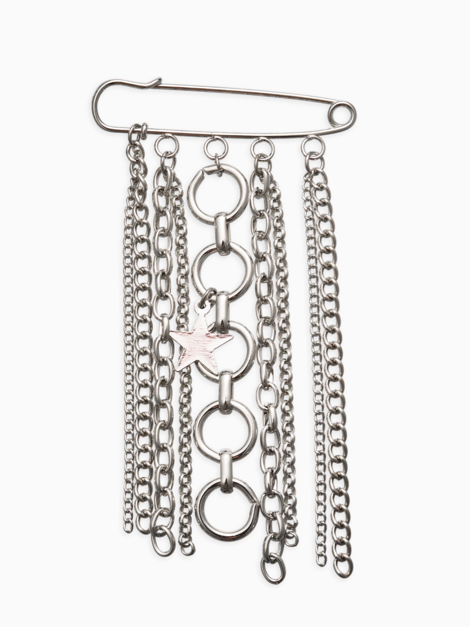 Размер упаковки: 6 x 0.7 x 11.5 см. tnved: 7117190000 Длина, см: 12 Тематика: Цепь Цвет: Серебристый Для кого: Для женщины Набор: Нет Вставка/Подвеска: Металл Цвет фурнитуры: Серебряный Эта уникальная серебряная булавка с подвеской-звездой превратит любой образ в настоящий праздник стиля и харизмы. Изящная композиция длиной 6 см создана для женщин, стремящихся подчеркнуть свою элегантность и уникальность. Главный элемент аксессуара серебряная звезда, покрытая тонким слоем белого металла, что обеспечивает длительное сохранение первозданного вида. Тонкие металлические цепи завершают композицию, придавая ей легкость и динамику. Всё это соединено с качественной булавкой, гарантирующей уверенное крепление к одежде.