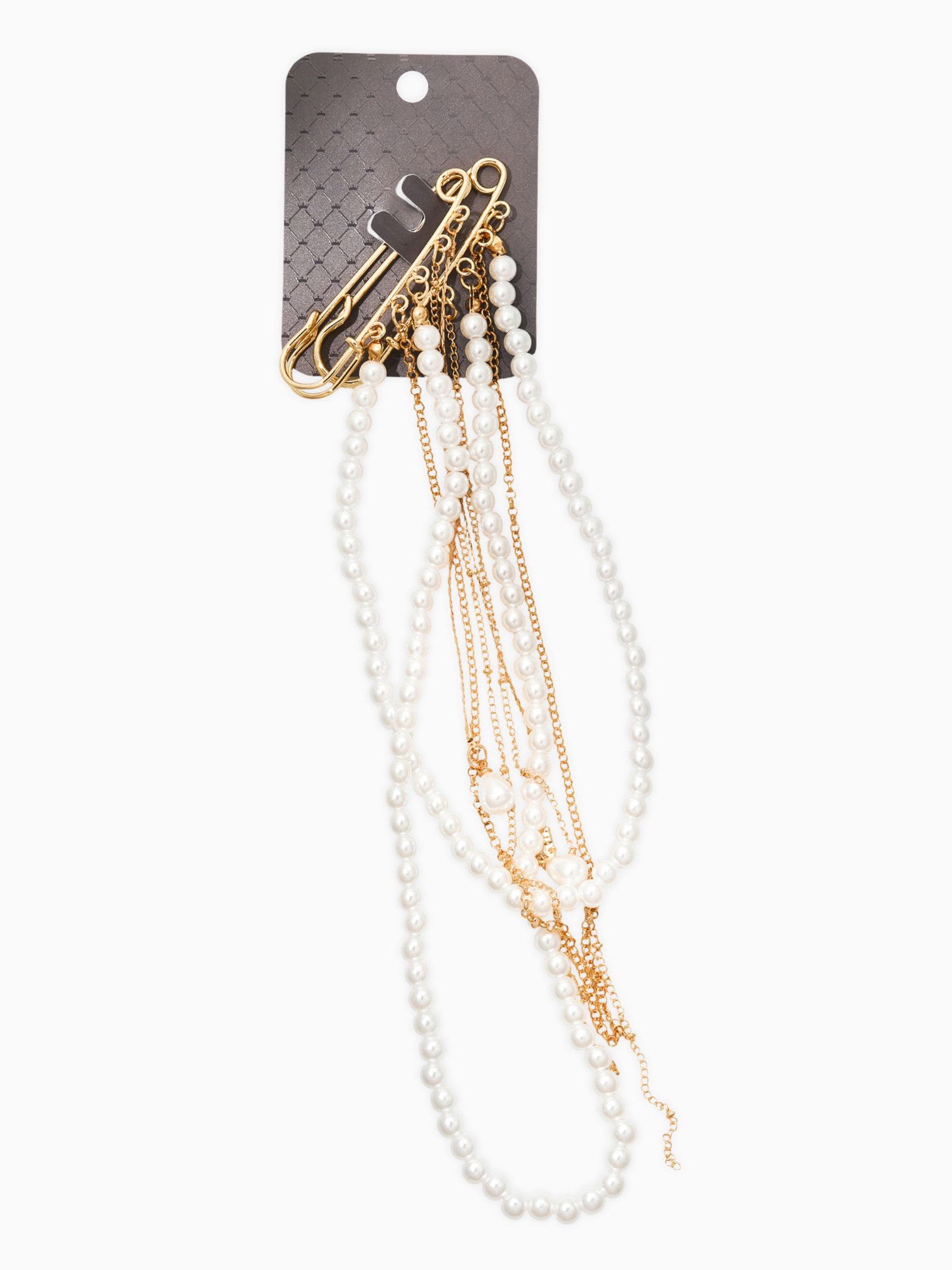 Булавки "Жемчужный аксельбант", пластик, белые в золоте, 6x40x0.8 см., QF, Китай