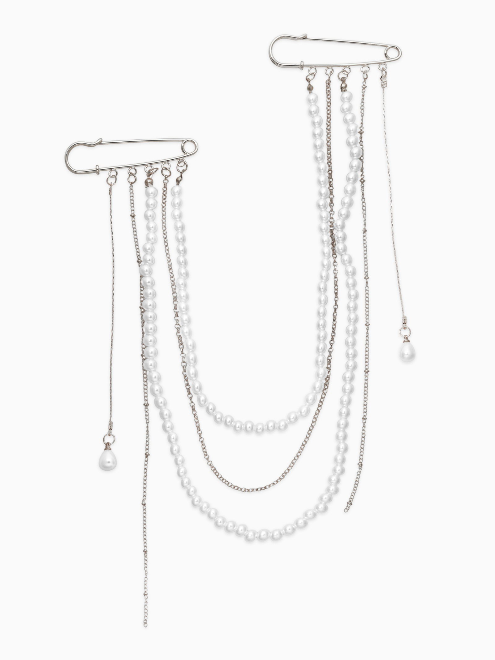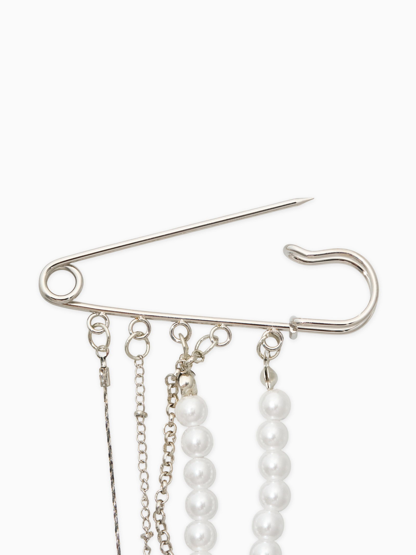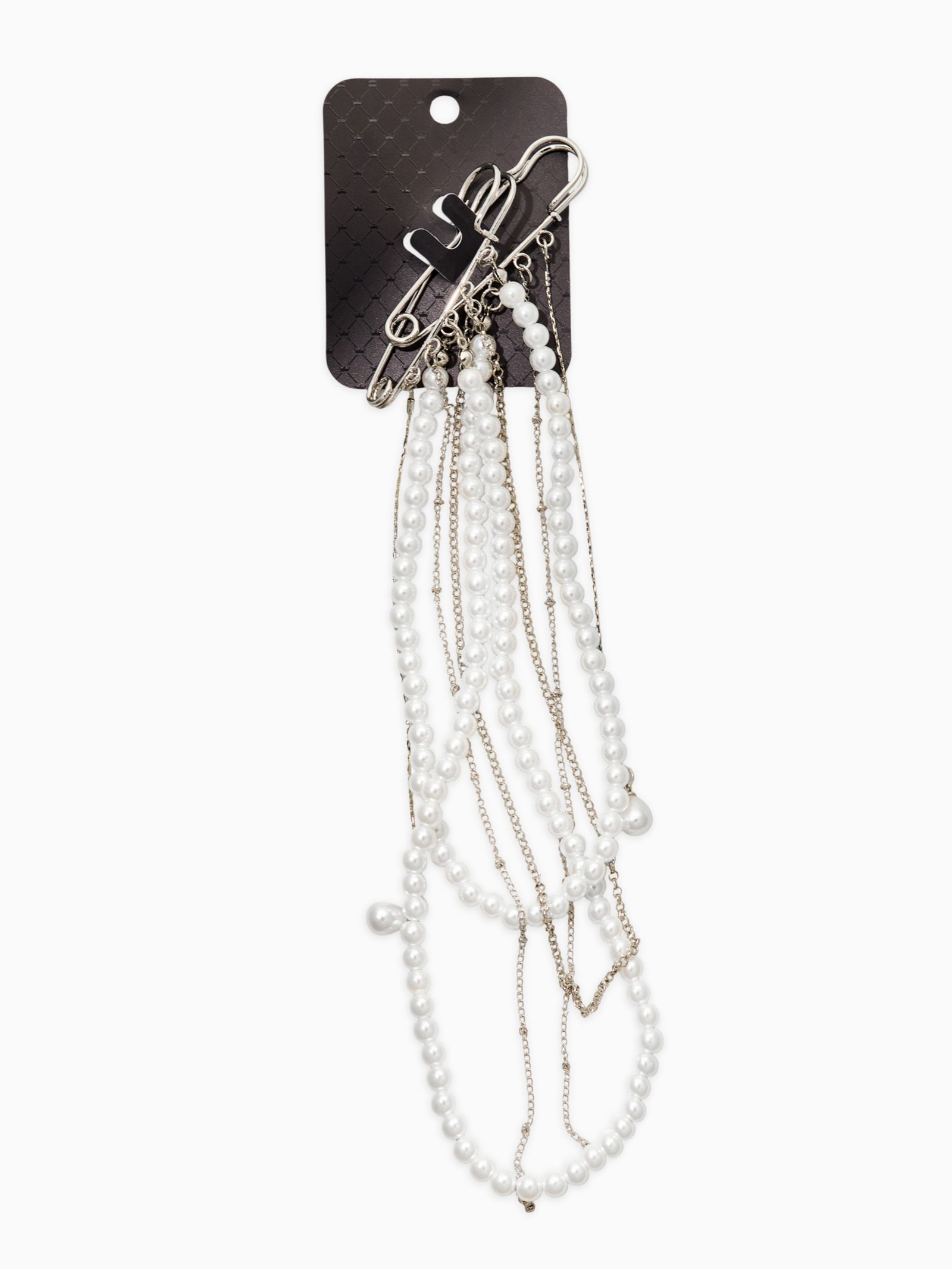 Булавки "Жемчужный аксельбант", пластик, белые в серебре, 6x40x0.8 см., QF, Китай