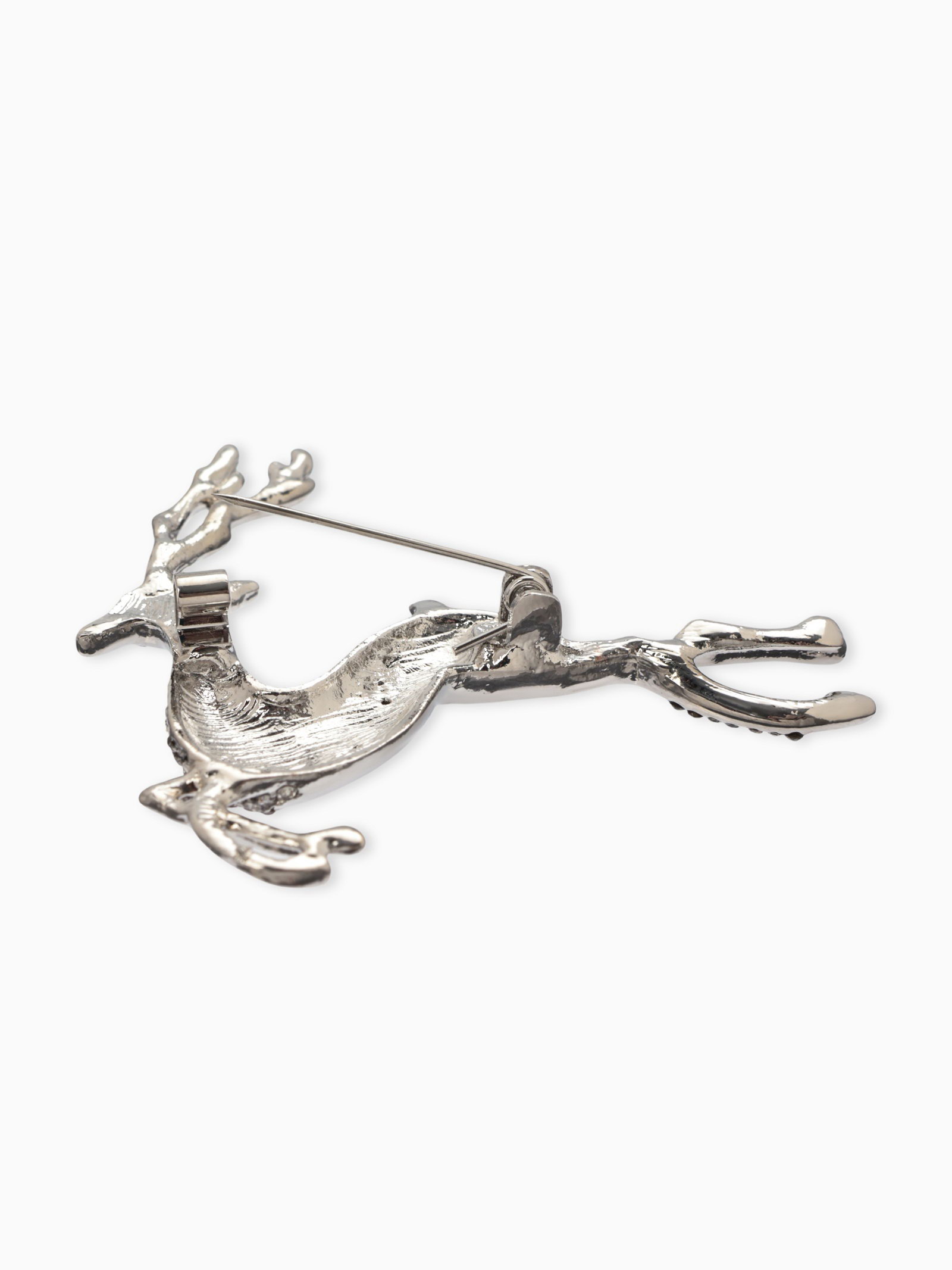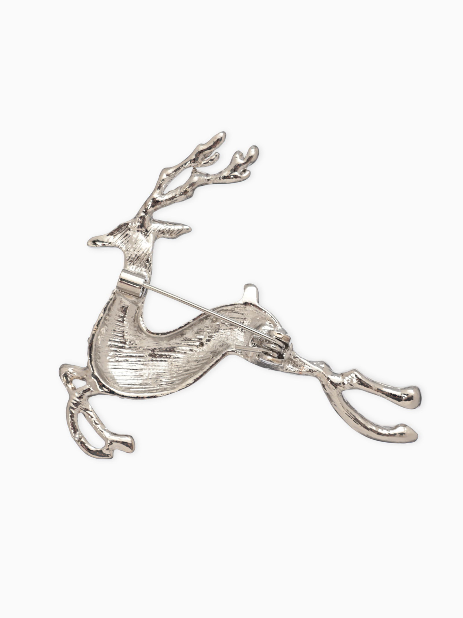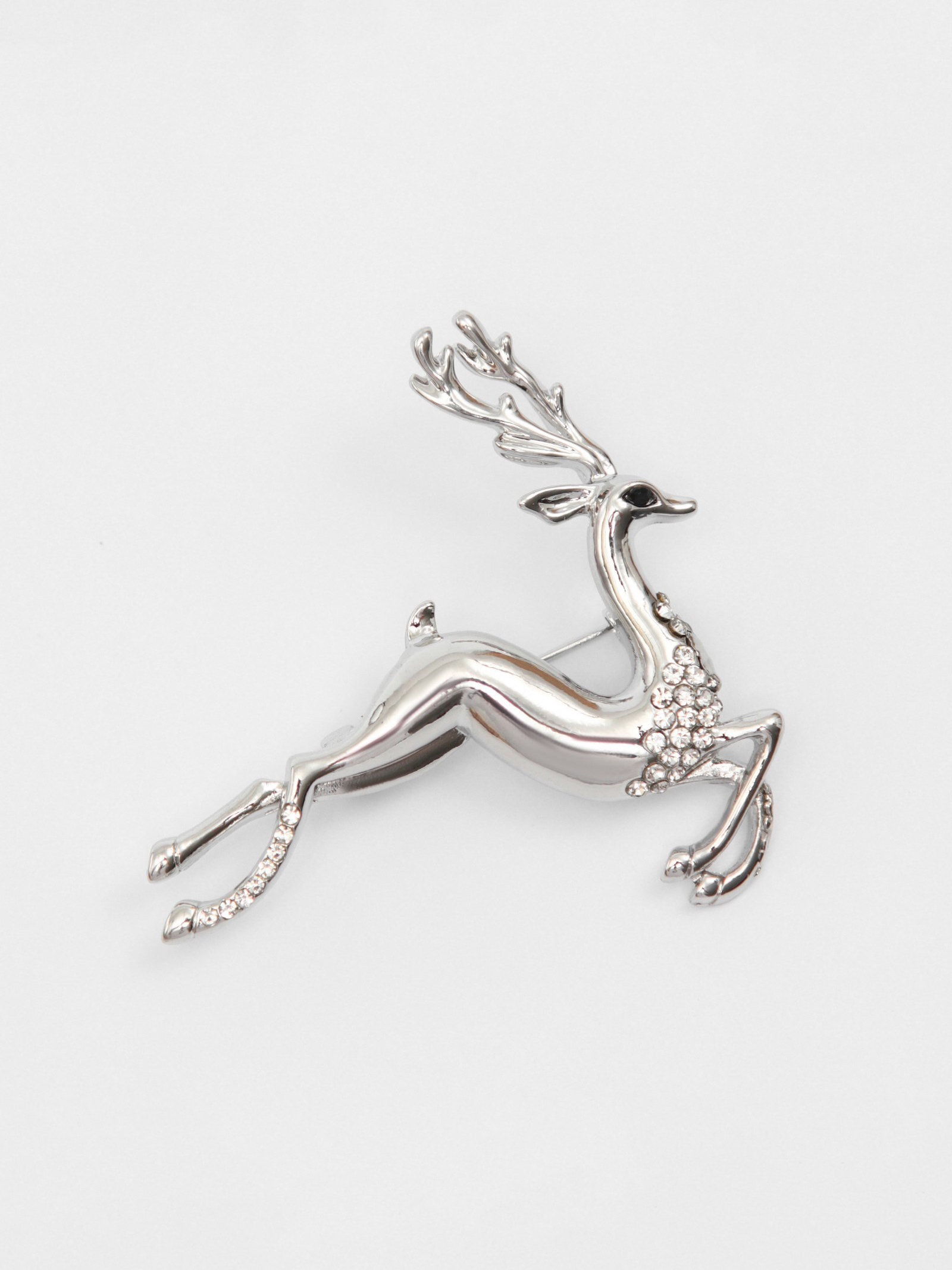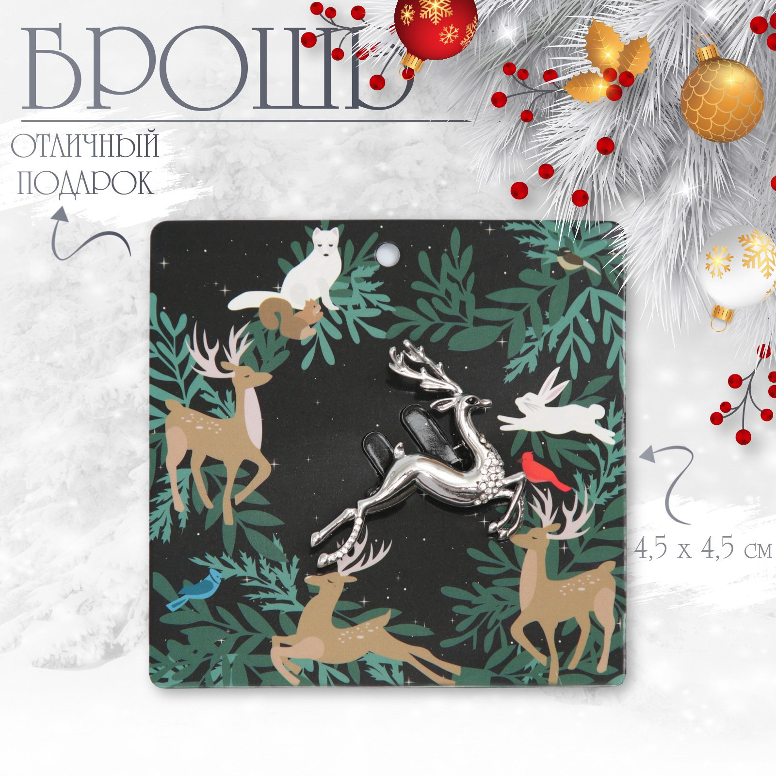 Брошь новогодняя "Олень", цвет белый в серебре, 4.5x4.5x0.8 см., QF, Китай