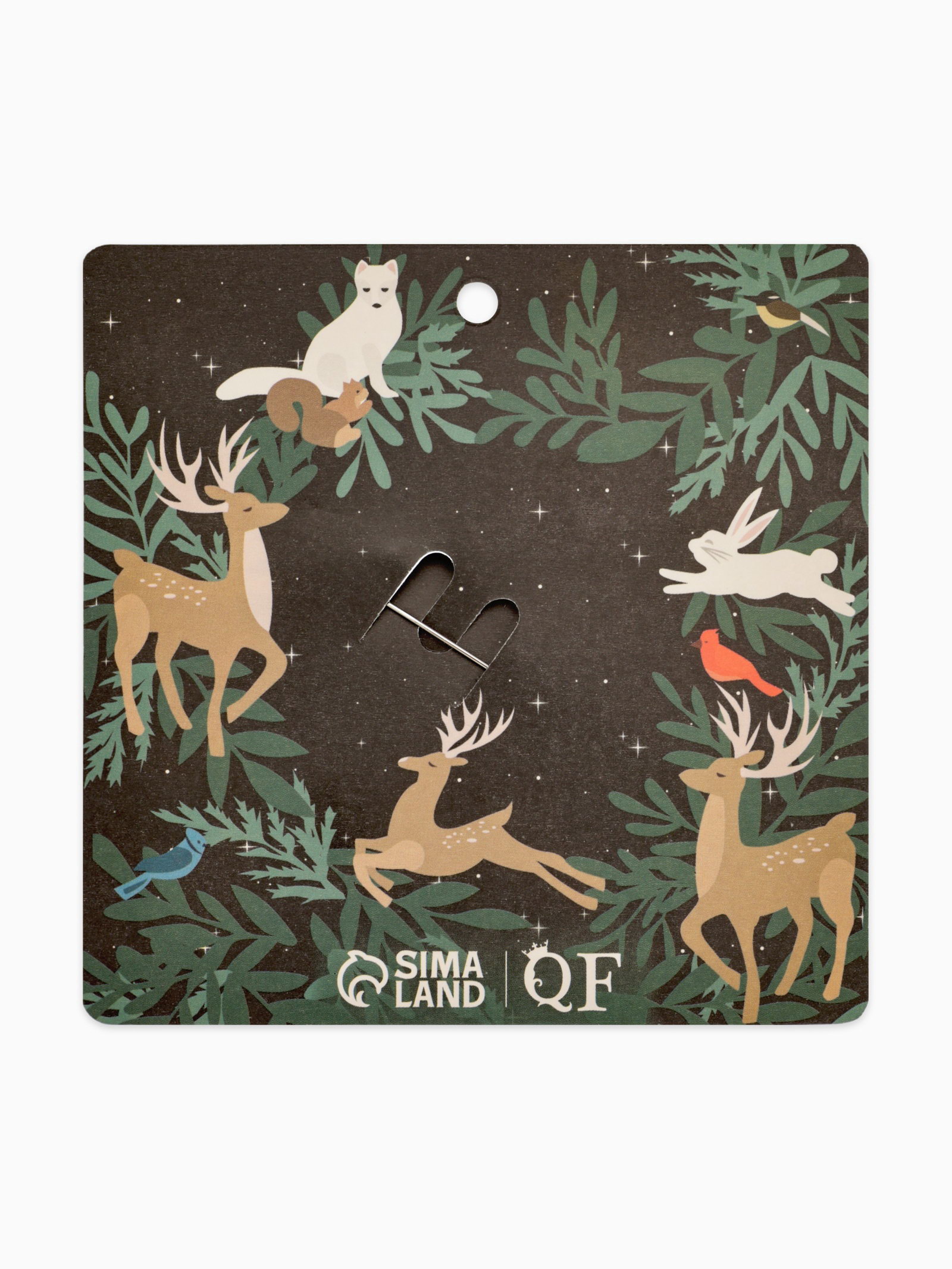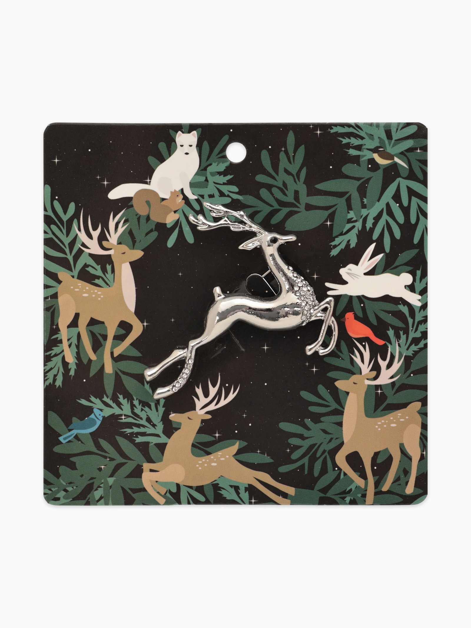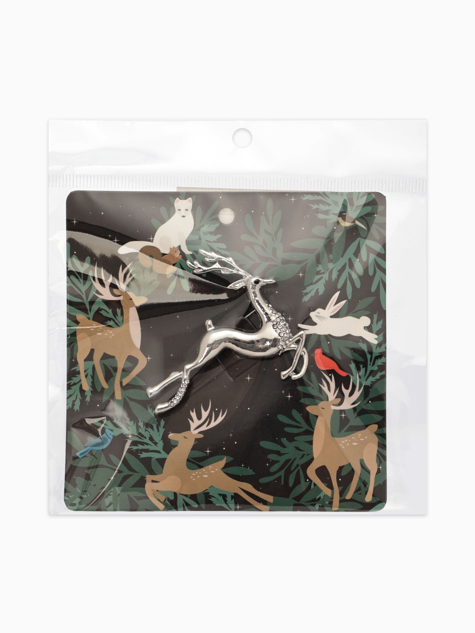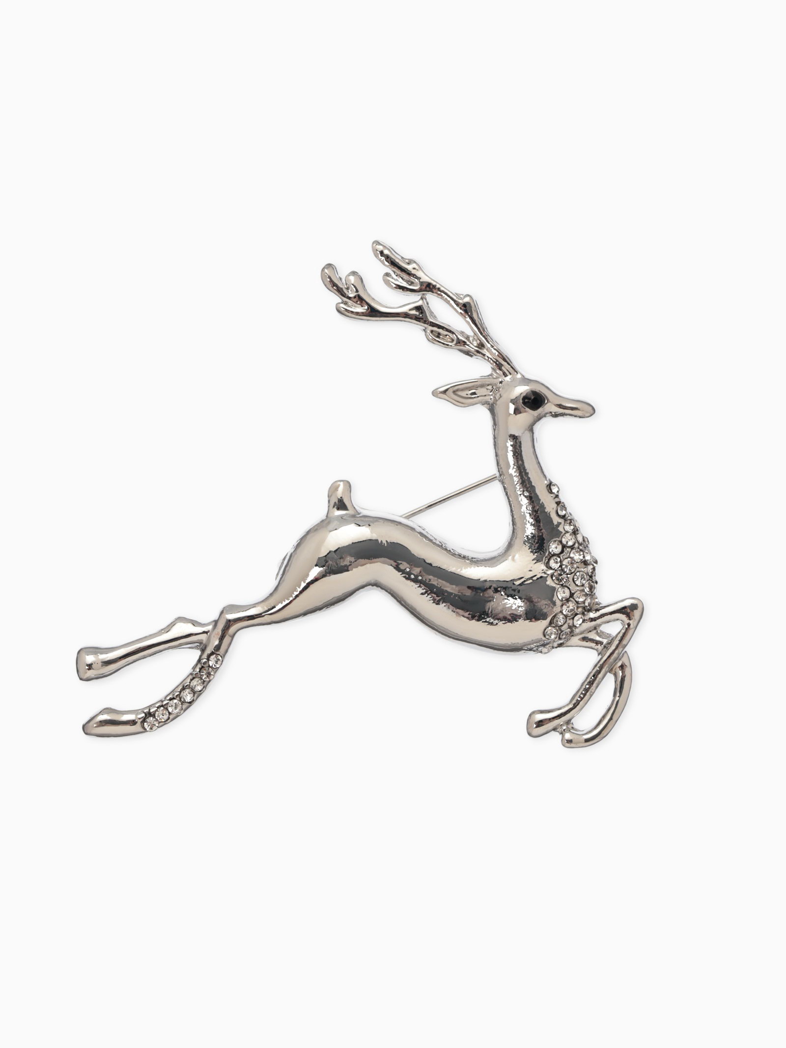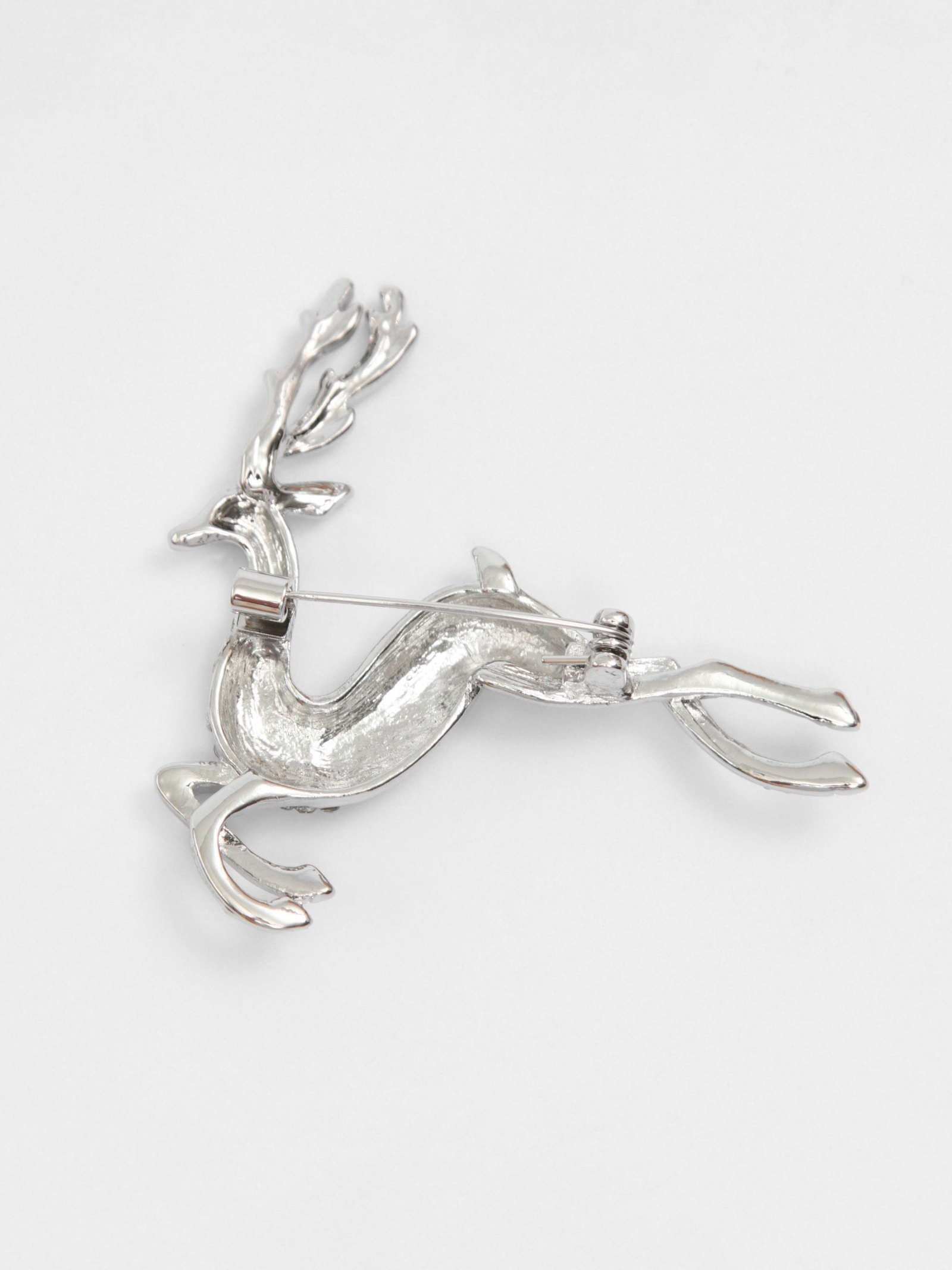 Брошь новогодняя "Олень", цвет белый в серебре, 4.5x4.5x0.8 см., QF, Китай