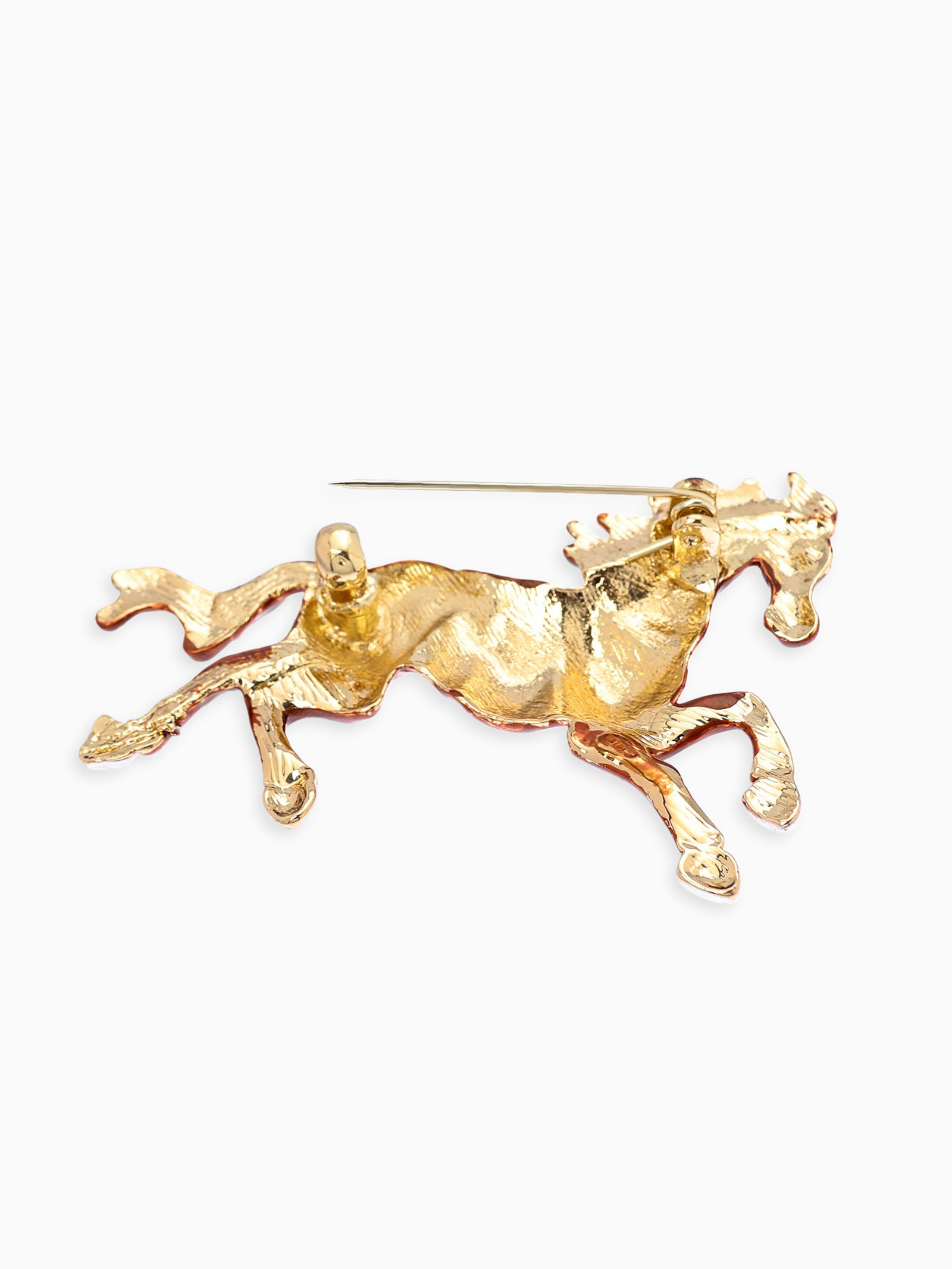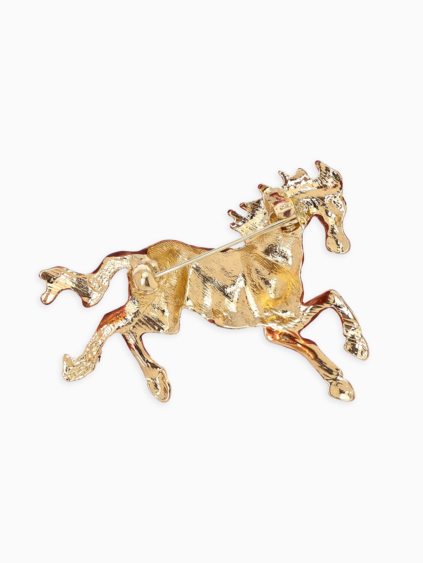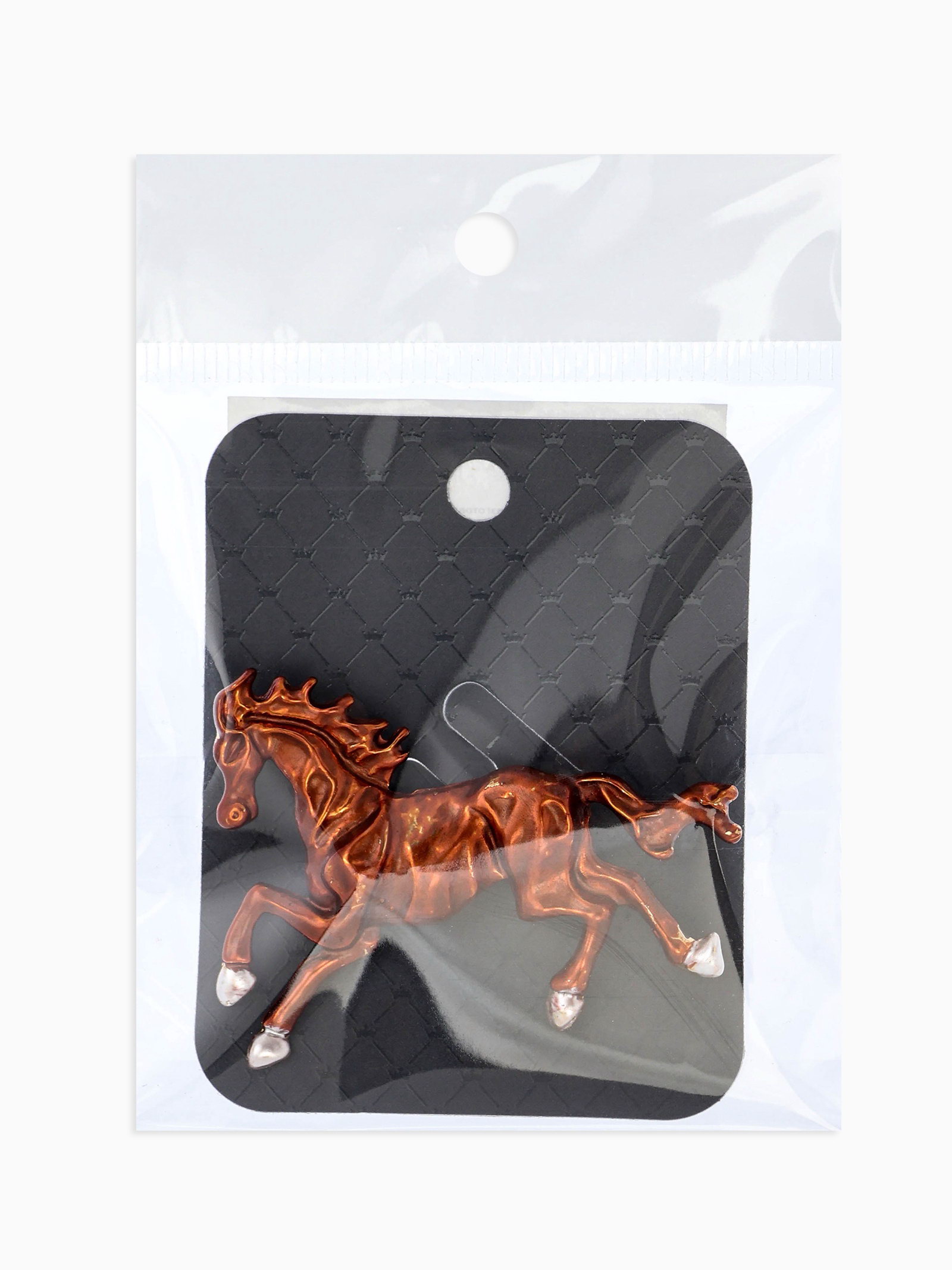 Брошь "Лошадь", конь степной, коричневая в золоте, 4x3.3x1.5 см., QF, Китай