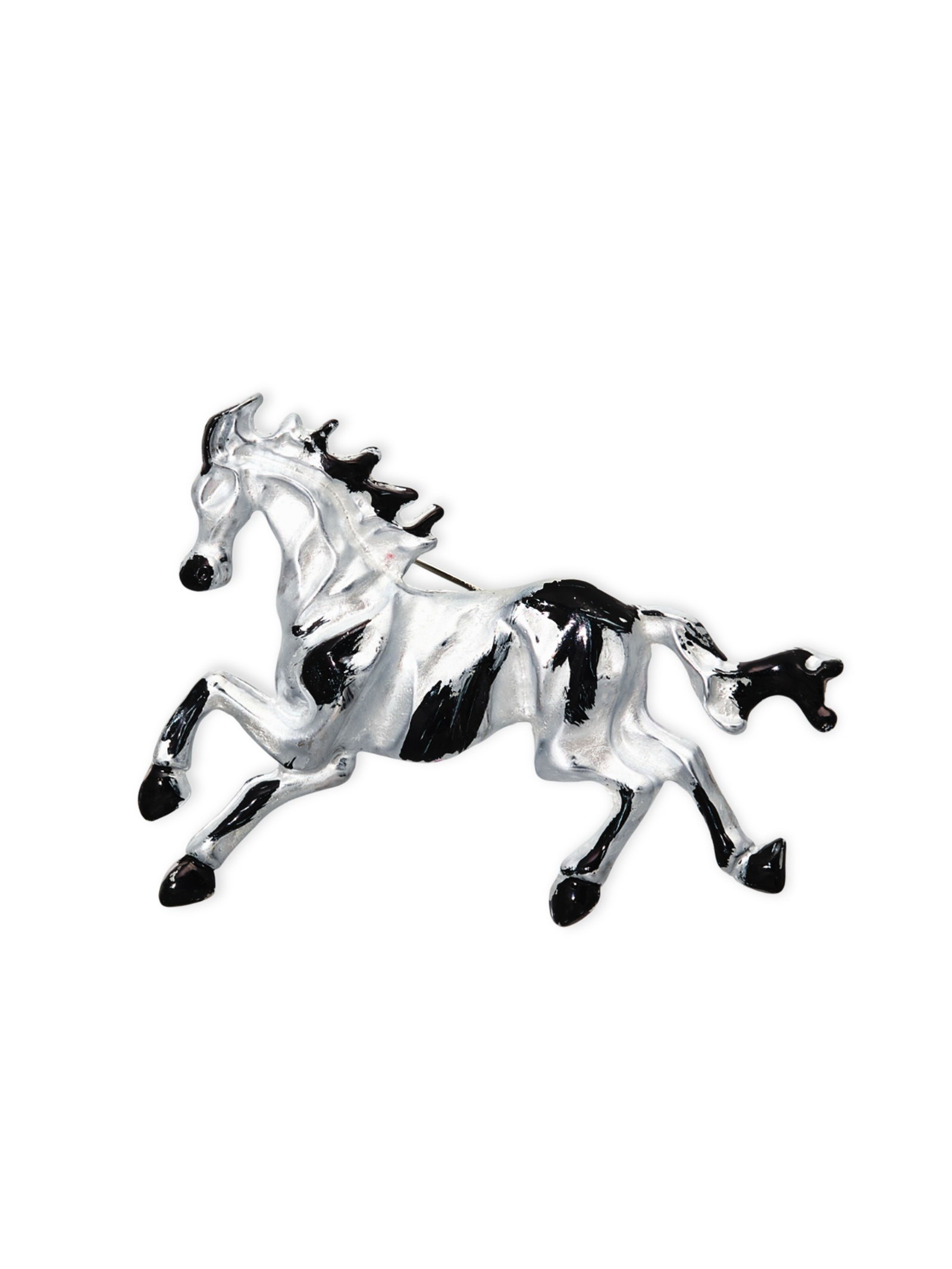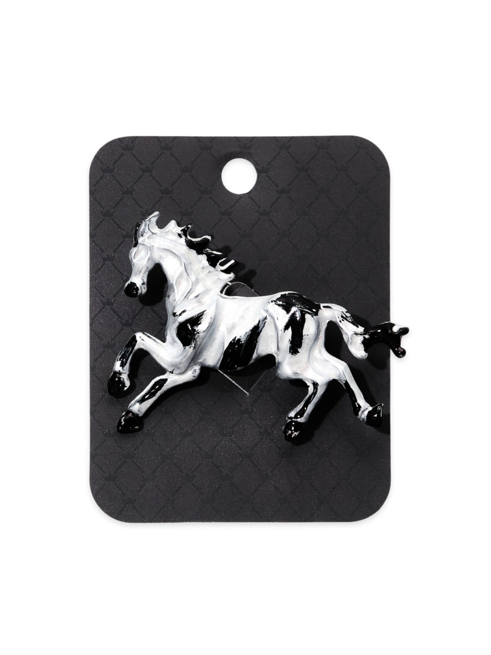 Брошь "Лошадь. Конь в яблочко", чёрно-серебристая в серебре, 4x3.3x1.5 см., QF, Китай