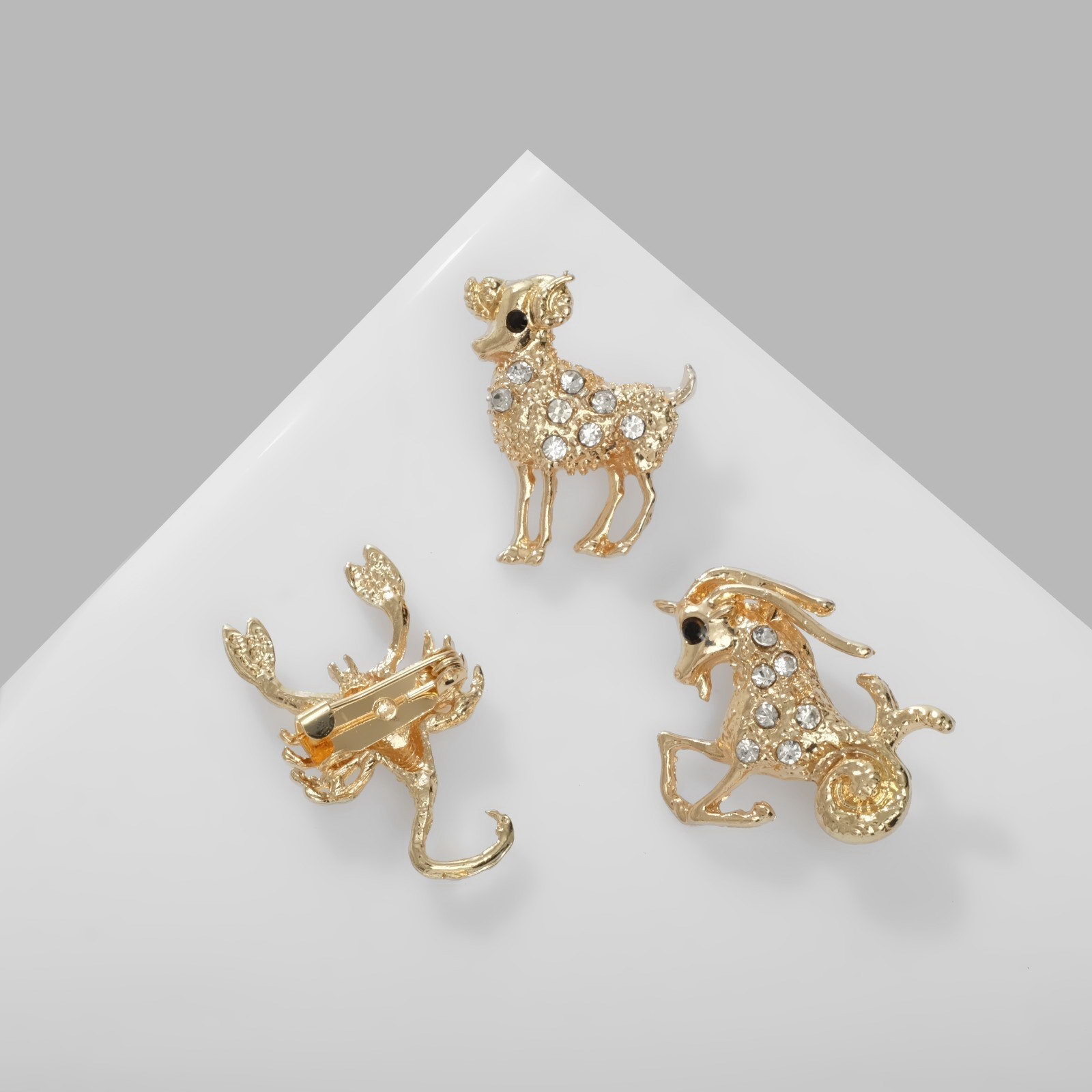 Брошь "Знаки зодиака" ассорти, гороскоп, белая в золоте, 1x2x1 см., QF, Китай