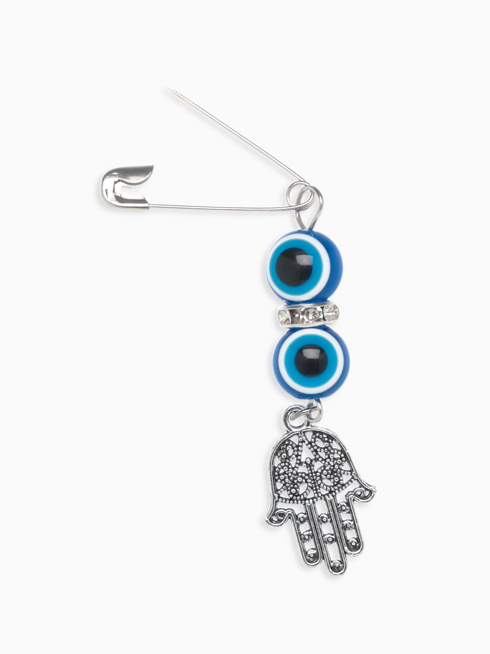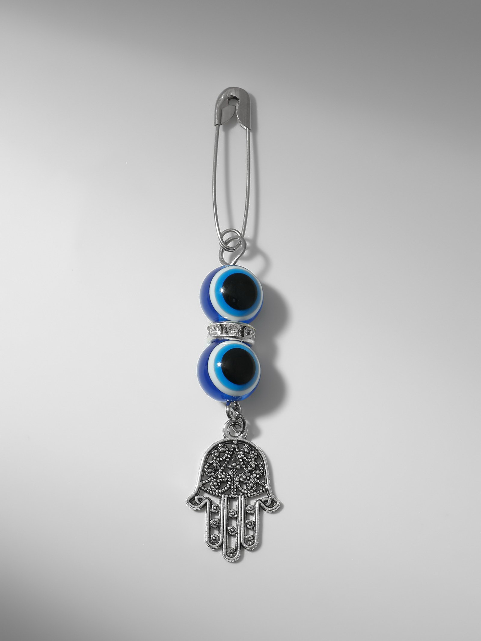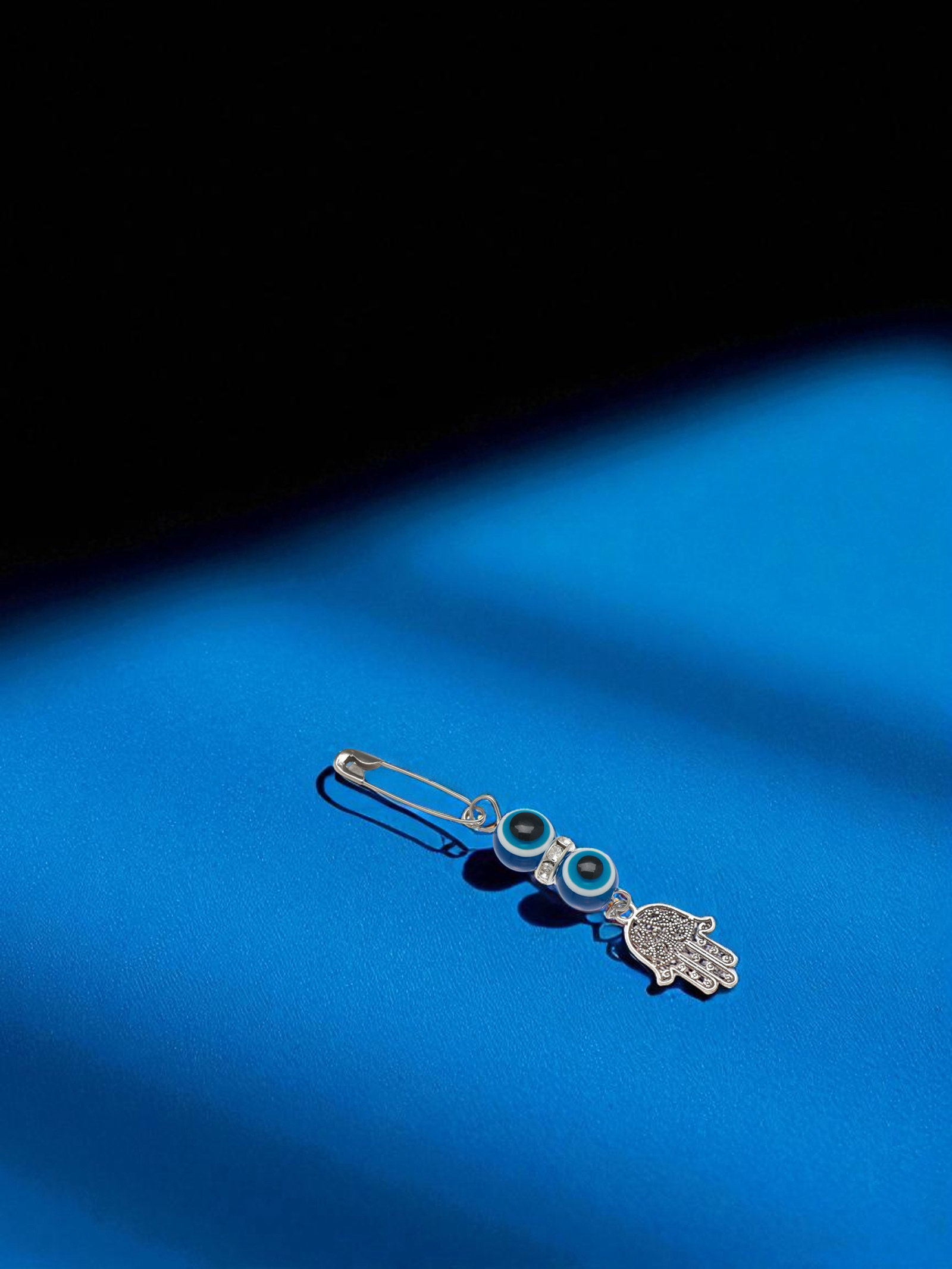 Булавка-оберег "Защита от сглаза", 2.2 см, синяя в серебре, 2x2.2x1 см., QF, Китай
