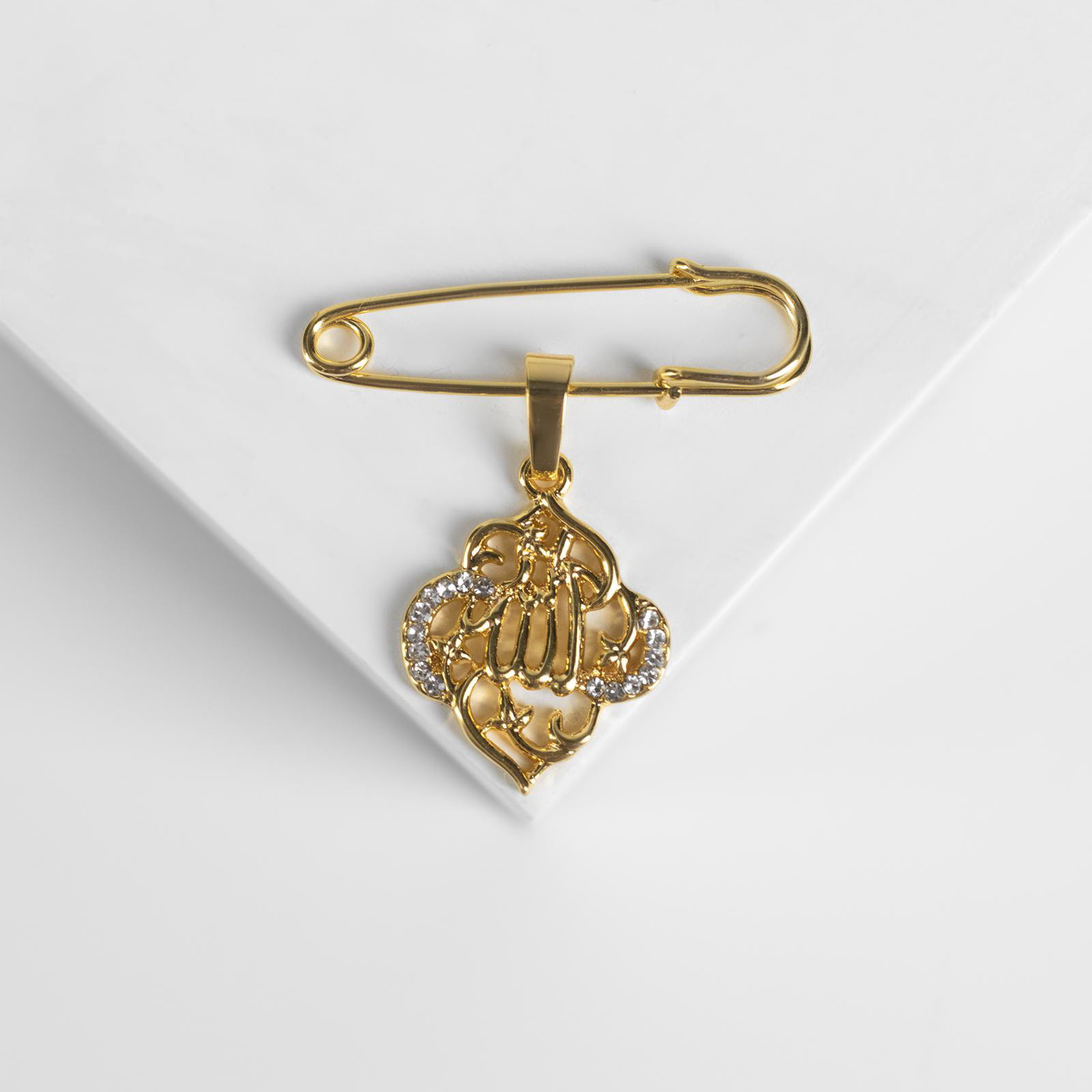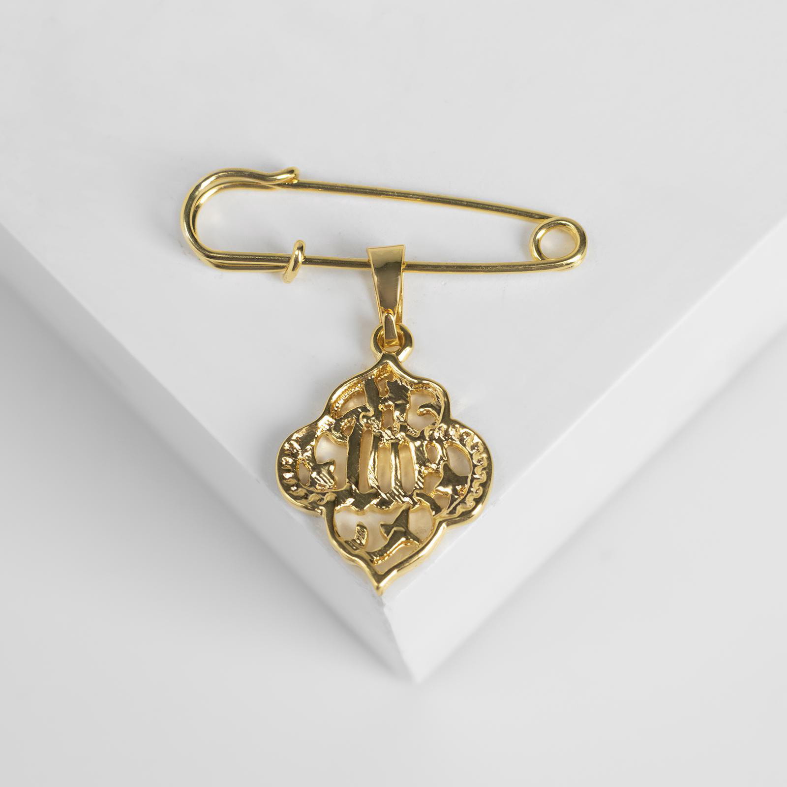 Булавка с подвеской "Мусульманская" басмала, 3 см, цвет белый в золоте, 3.5x3x1 см., QF, Китай