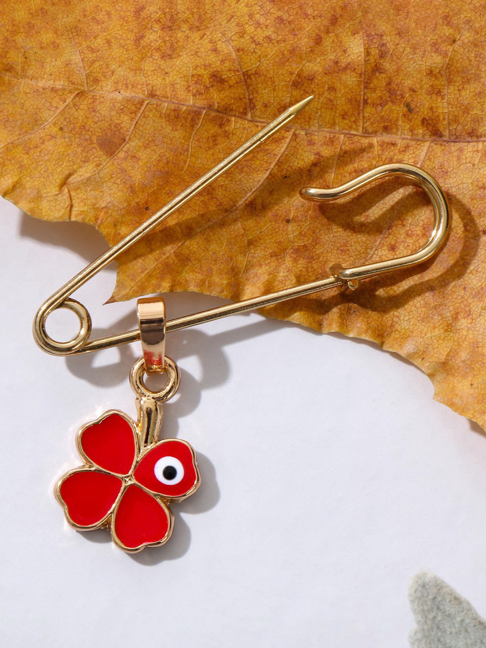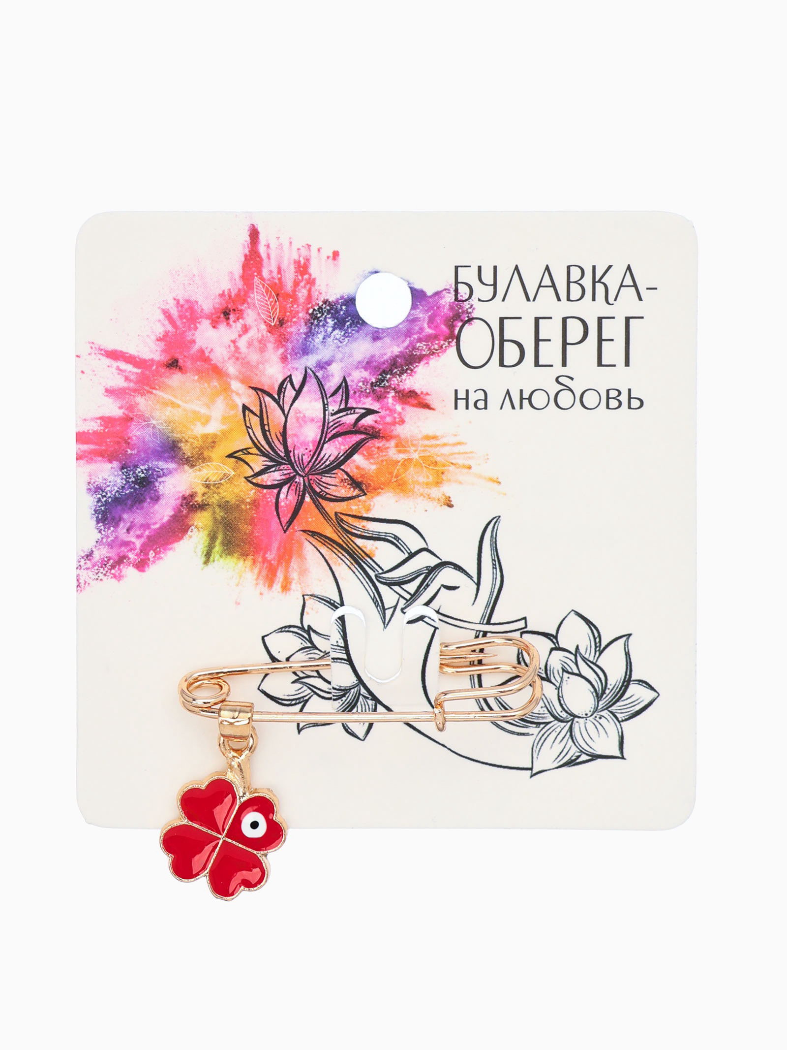 Булавка-оберег "Клевер" с глазком, 3.5 см, красная в золоте, 2.5x3.5x1 см., QF, Китай