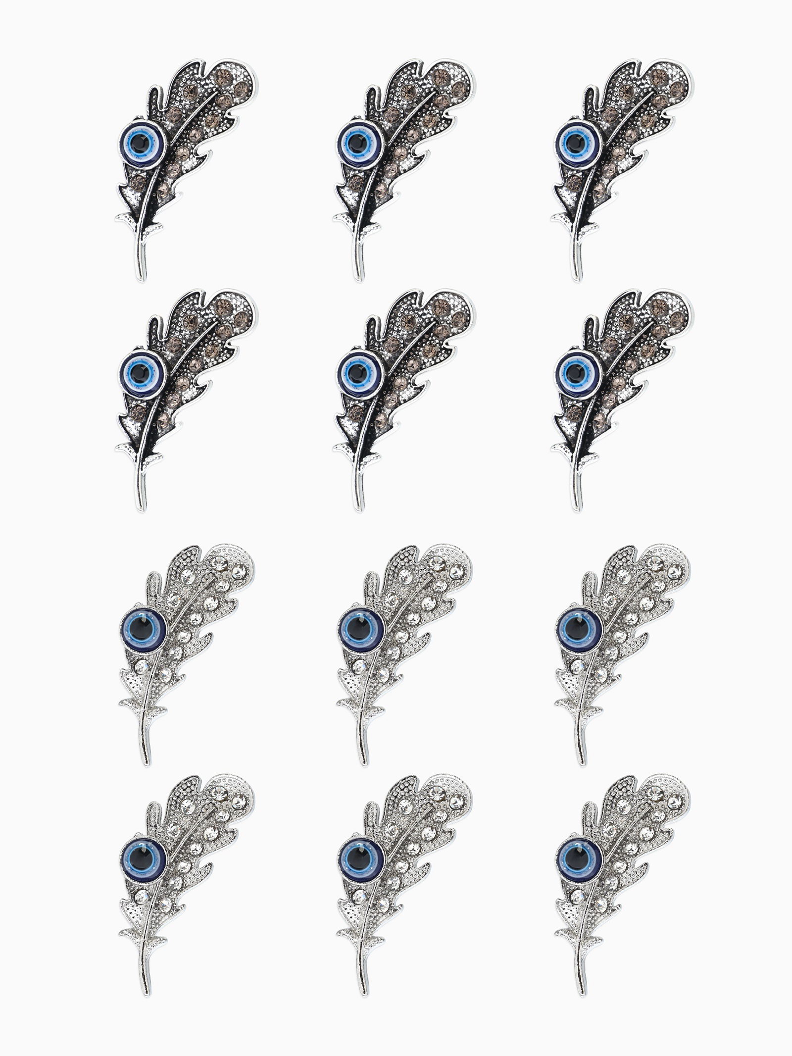 Брошь-оберег "Пёрышко с глазиком", синий, МИКС, 1x3.5x1 см., QF, Китай