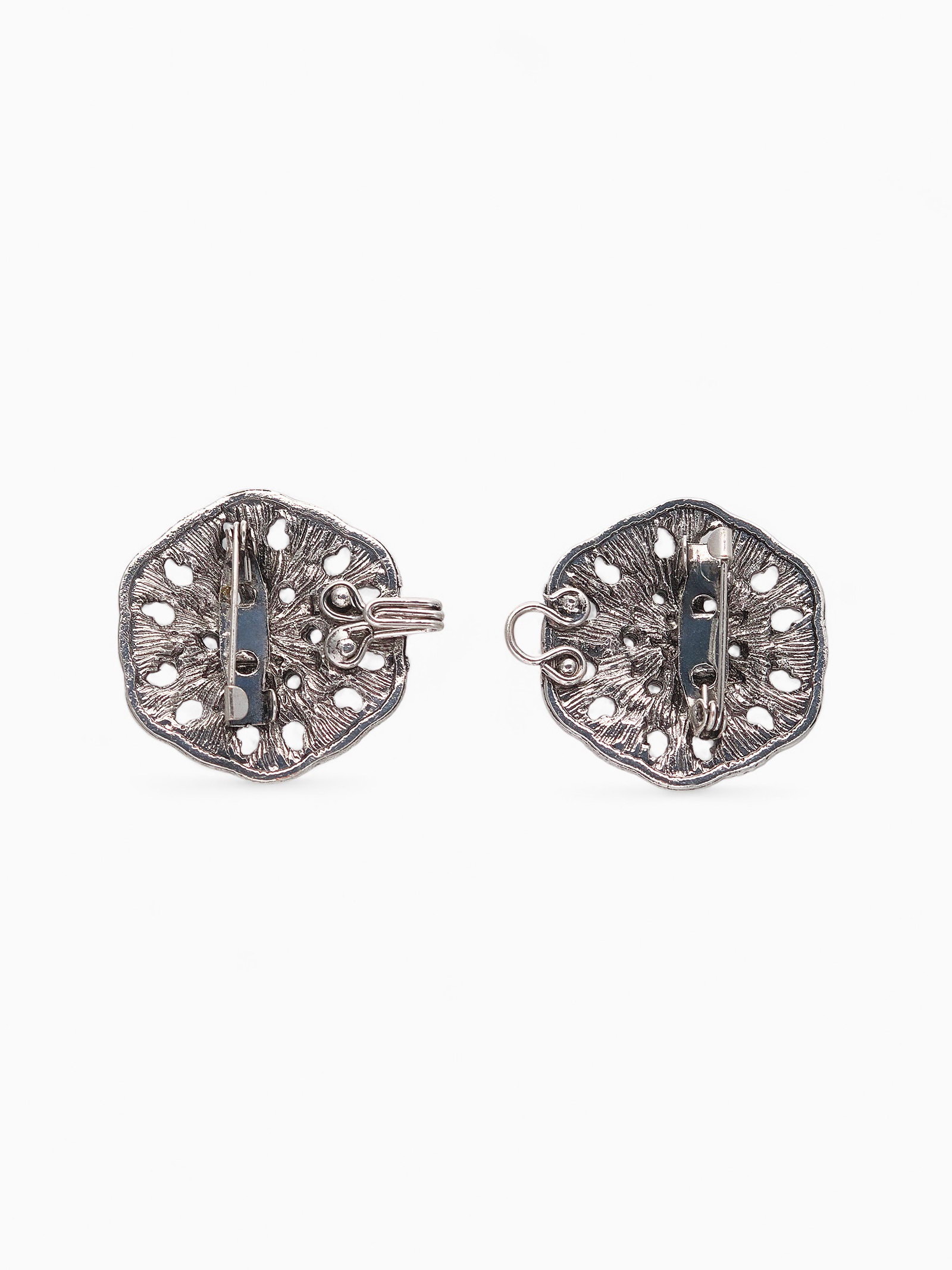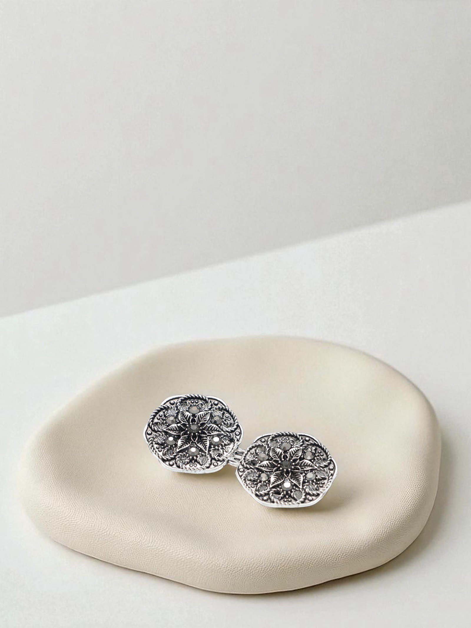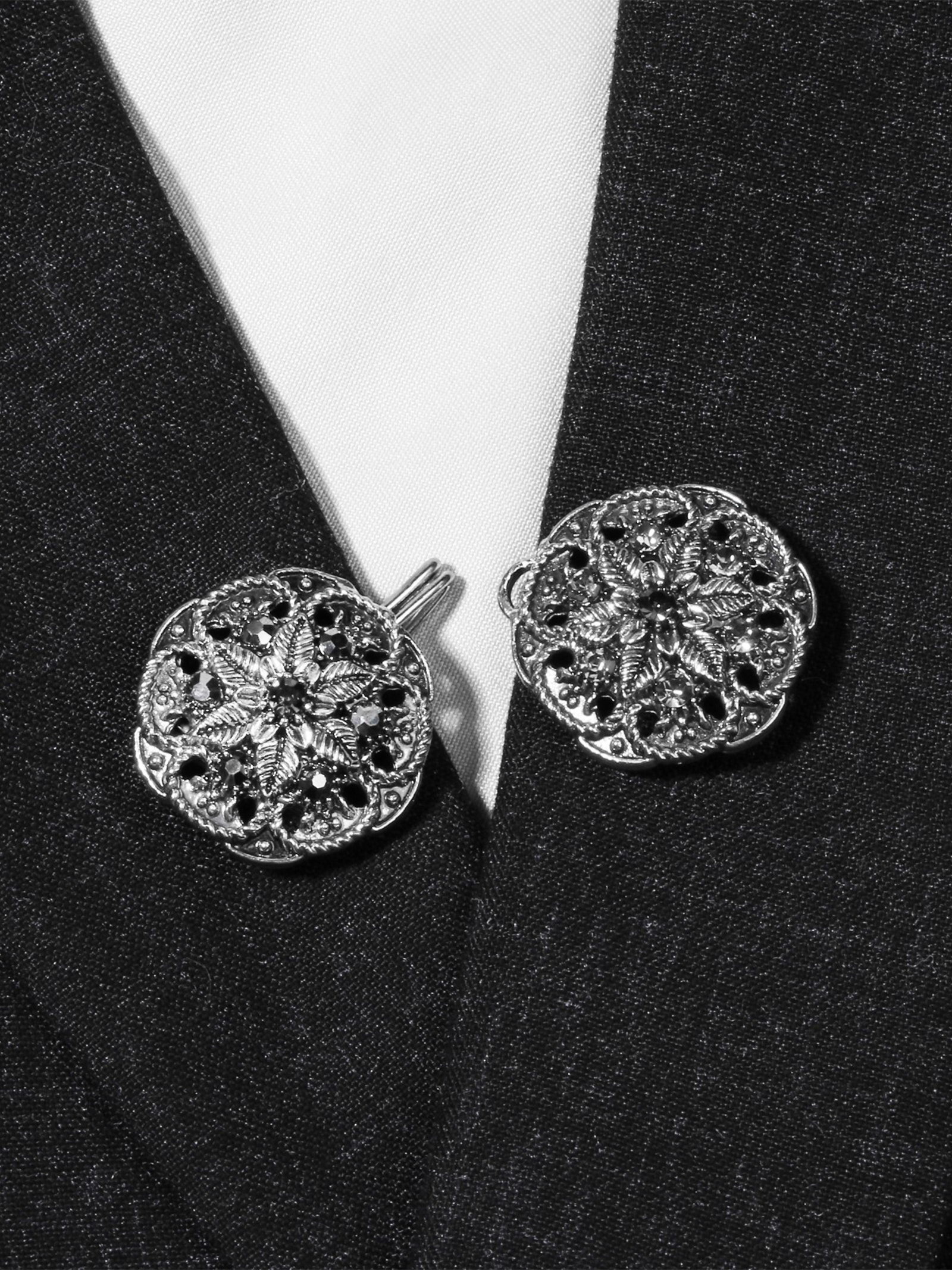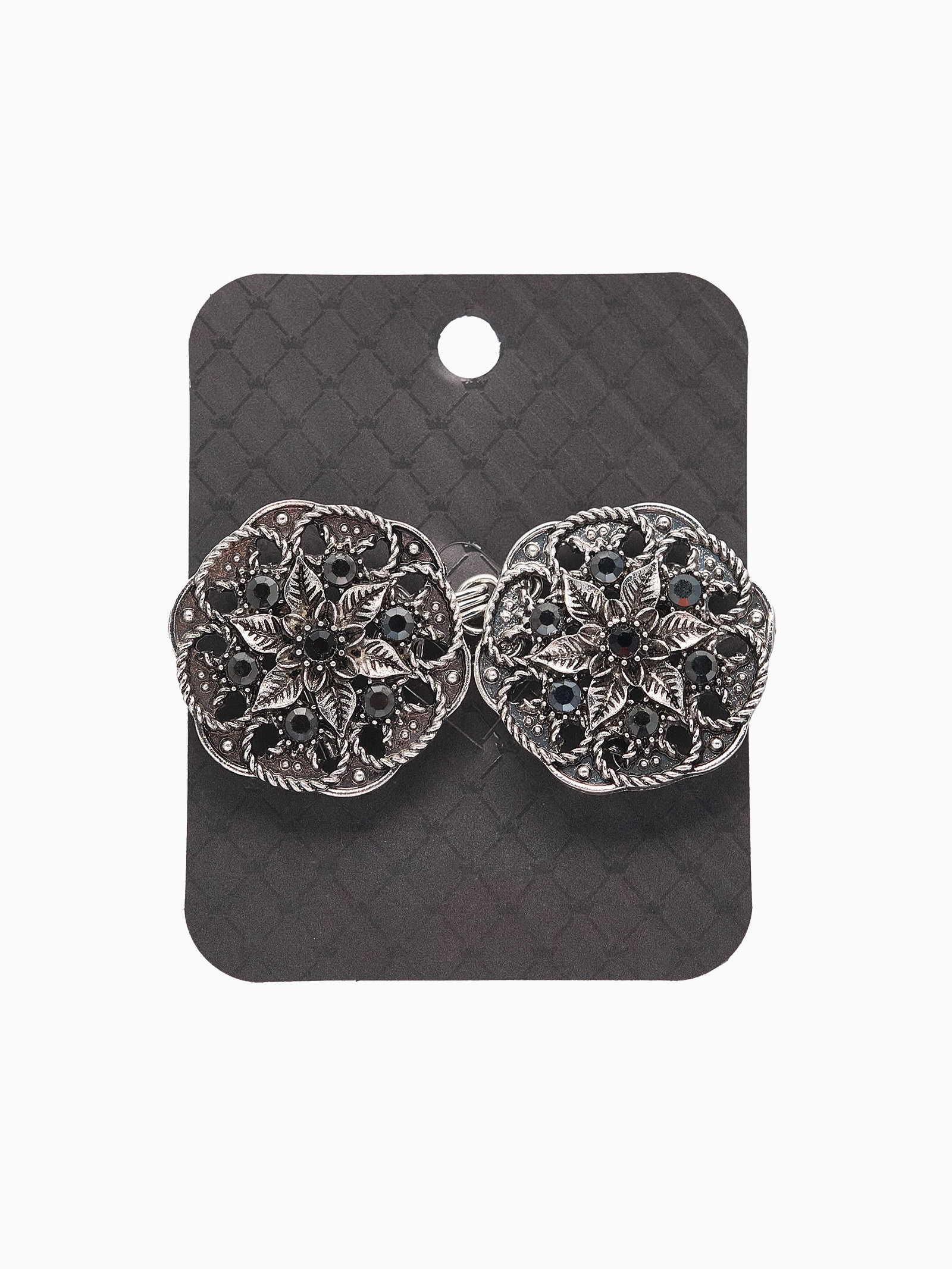 Зажим для кардигана "Цветы", чёрно-серый в чернёном серебре, 2.7x6x1 см., QF, Китай