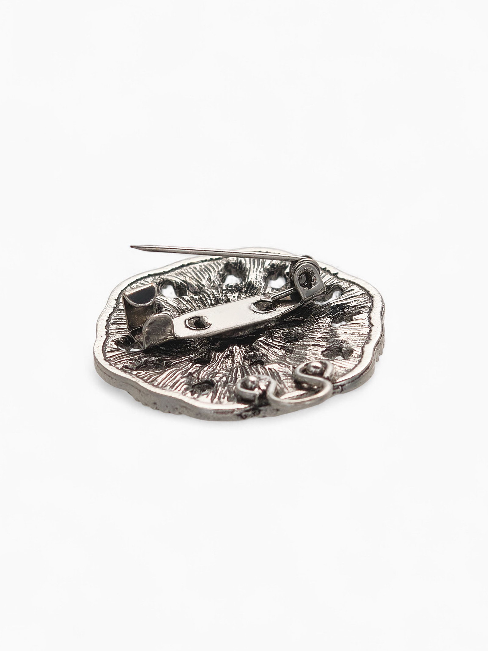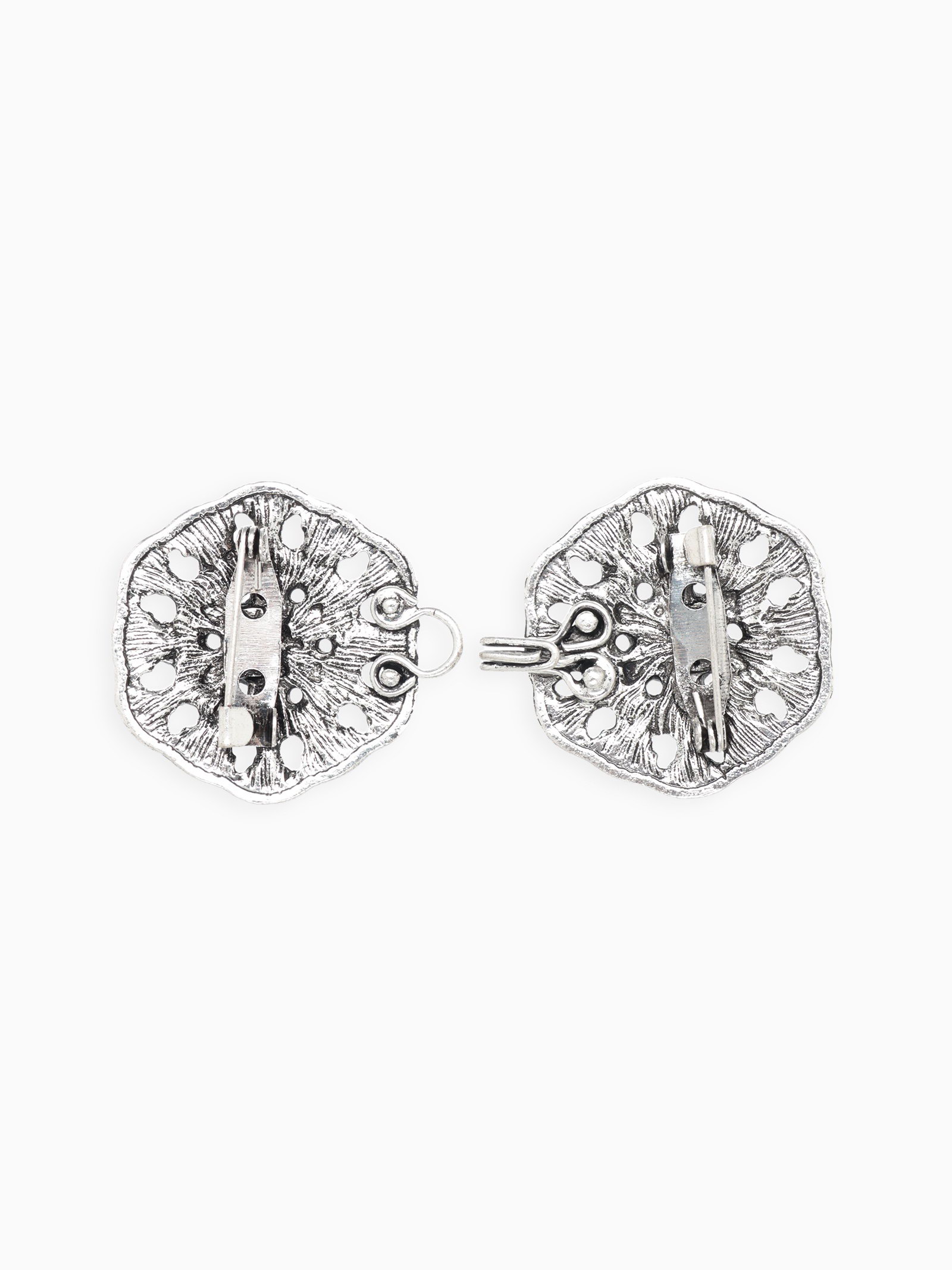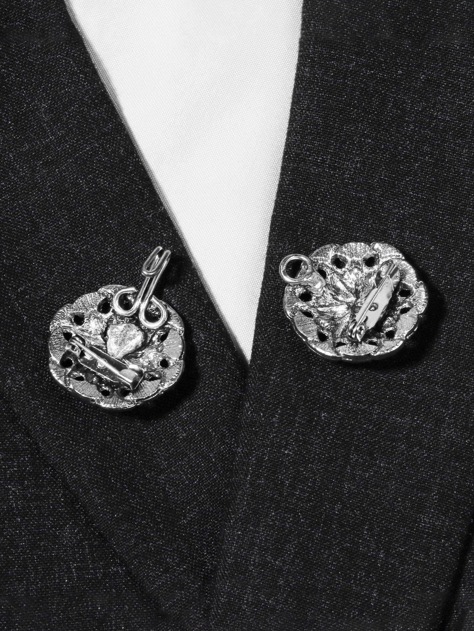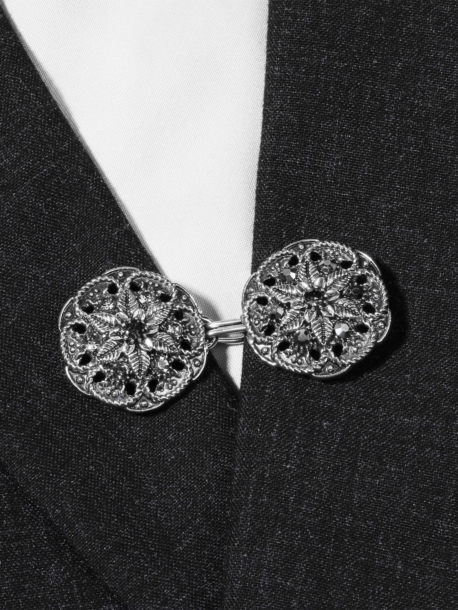 Зажим для кардигана "Цветы", чёрно-серый в чернёном серебре, 2.7x6x1 см., QF, Китай