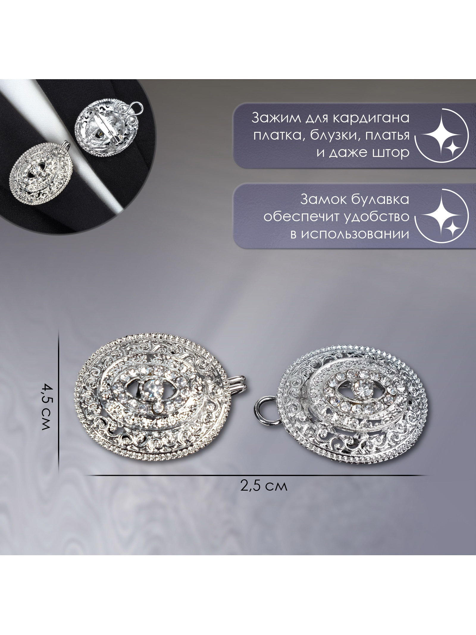 Практичный элемент гардероба Этот зажим помогает не только удерживать одежду в аккуратном виде, но и служит украшением. Его универсальный дизайн делает его отличным подарком на 8 Марта или День рождения для мамы, подруги или сестры. Элегантный эллипсовидный силуэт и сверкающие стразы придают изделию особую привлекательность. Надежный и стильный, он станет незаменимым аксессуаром в женском гардеробе для любого случая. | ||