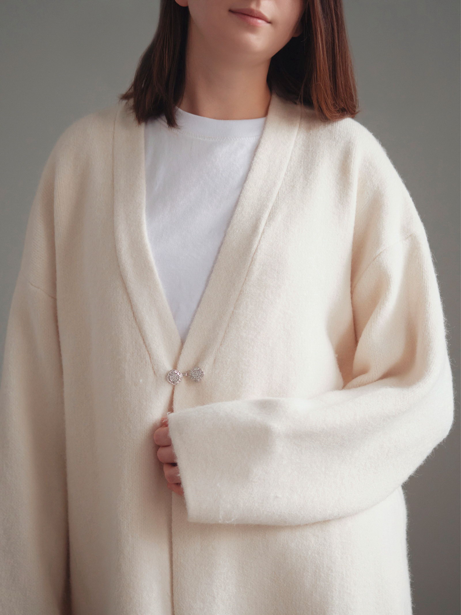 Зажим для кардигана "Ажур", цвет белый в серебре, 1.8x6x1.8 см., QF, Китай
