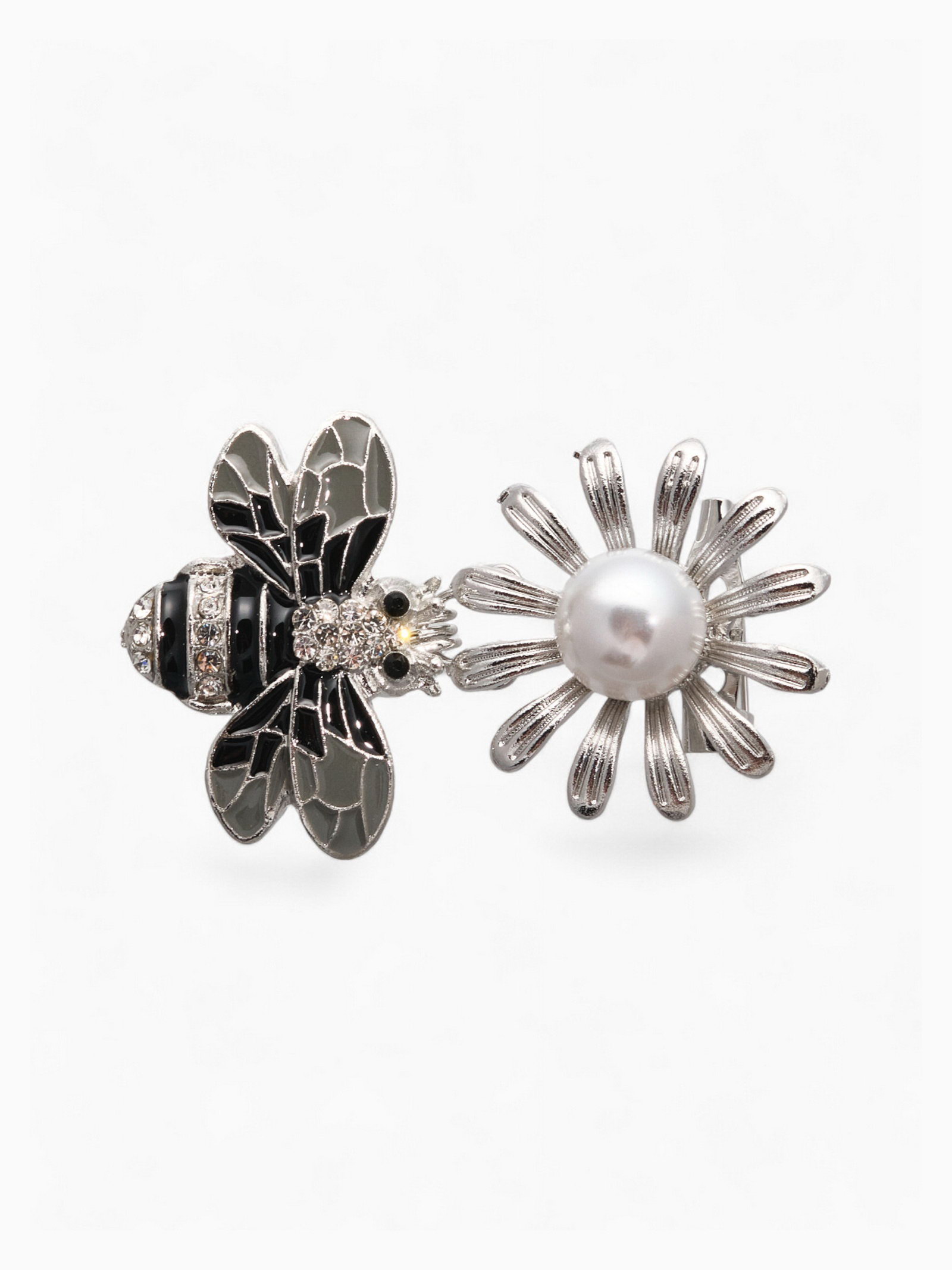 Зажим для кардигана "Пчела", пришивной, цвет чёрно-белый в серебре, 2.4x6x1.5 см., QF, Китай