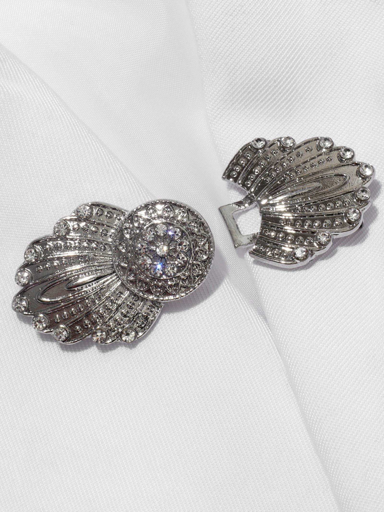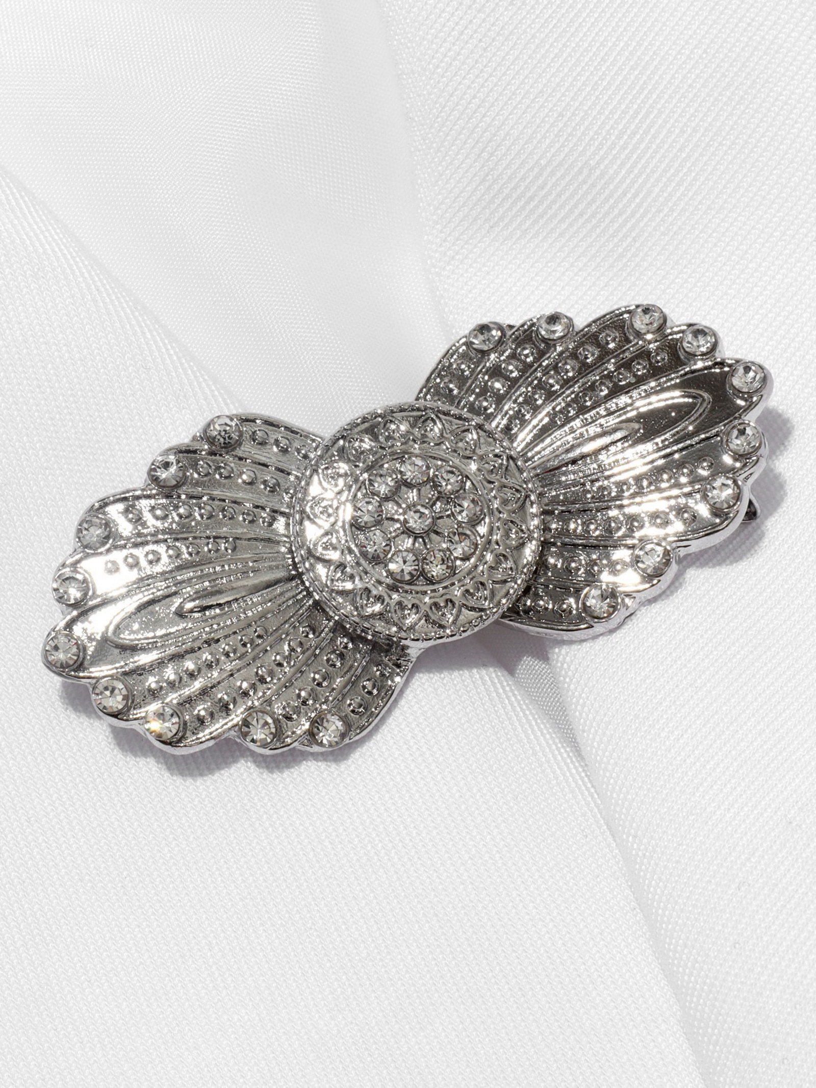 Зажим для кардигана "Перья", цвет белый в серебре, 2.5x5.5x1.5 см., QF, Китай
