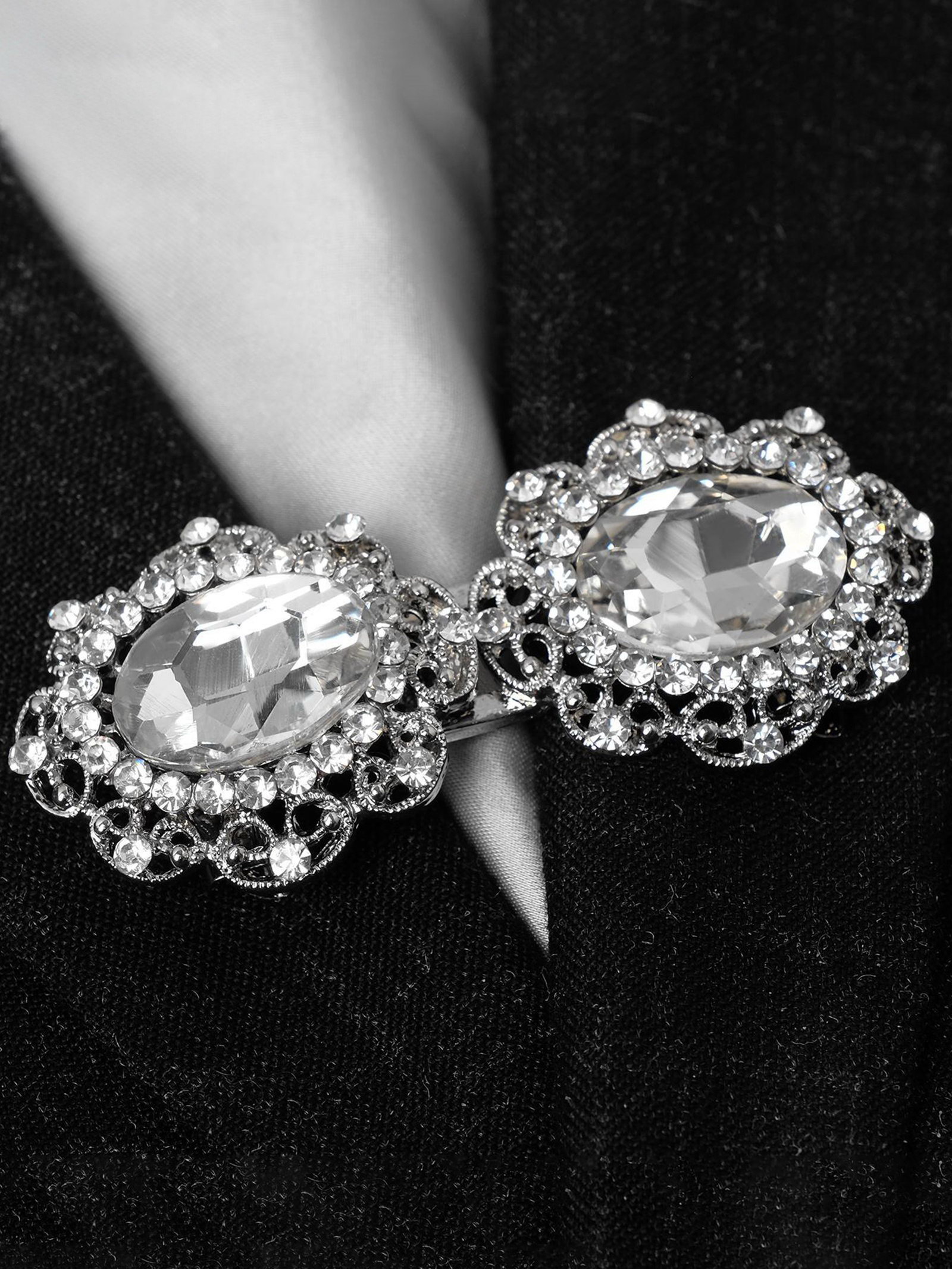 Тематика: Без тематики, Кристаллы Вид: Зажим, Зажим для кардигана, Зажимы для кардиганов Вставка/Подвеска: Стекло, Стразы Размер упаковки: 5 x 1 x 6 см. Длина, см: 6.6 Материал основы: Металл Материал основания: Металл Для кого: Для женщины tnved: 7117190000 Цвет фурнитуры: Серебряный Цвет: Белый Набор: Нет Зажим для кардигана - изысканный аксессуар, в том числе на поверхности платья, шали или свитера, данный элемент можно использовать даже для штор. Зажимы актуальны как в повседневном так и праздничном образе, добавляют очарования вашей одежде при сочетании различных нарядов. | ||